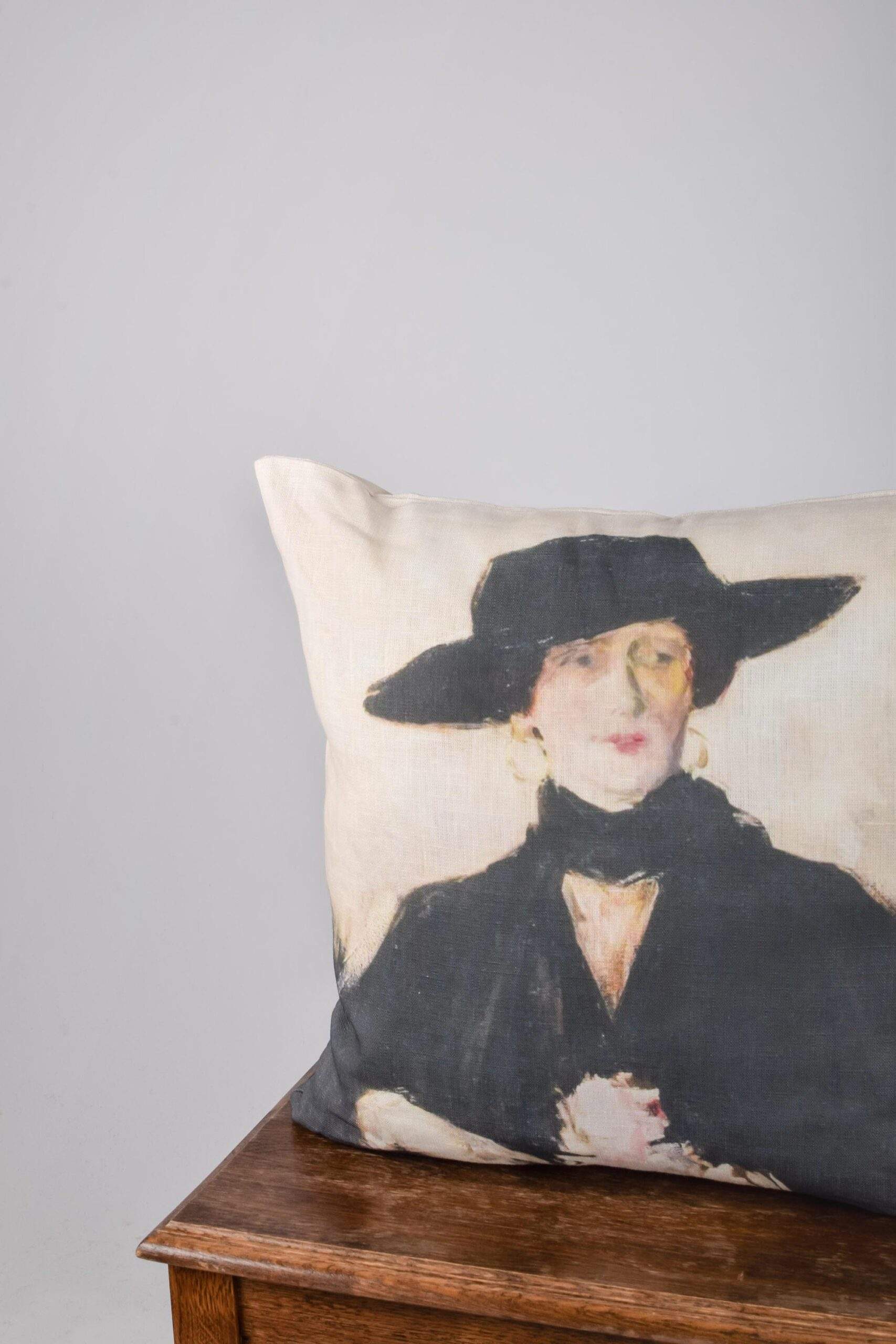 Linen cushion cover “Lady in a Black Hat” by Francis Campbell Boileau Cadell (1883 – 1937).