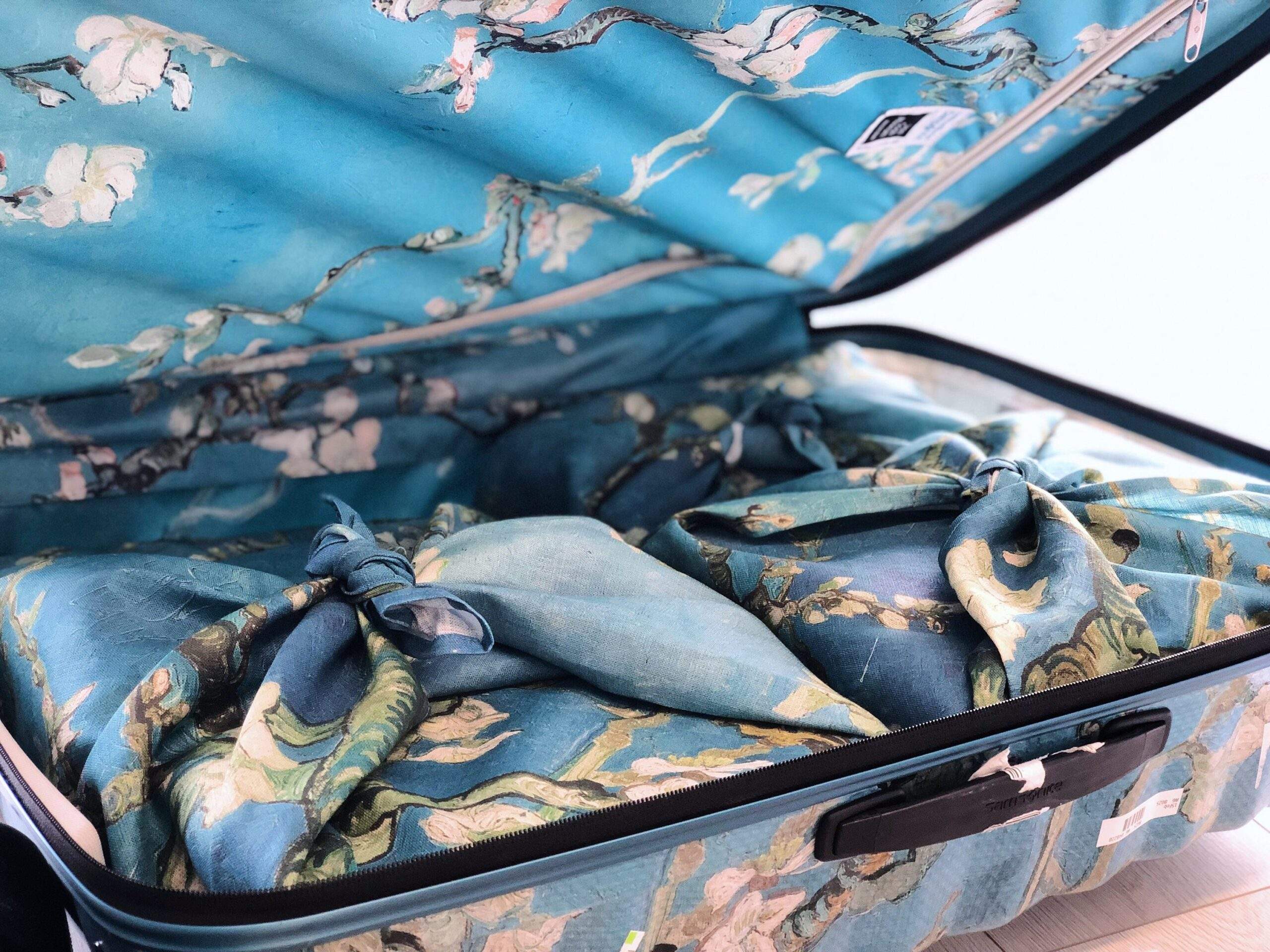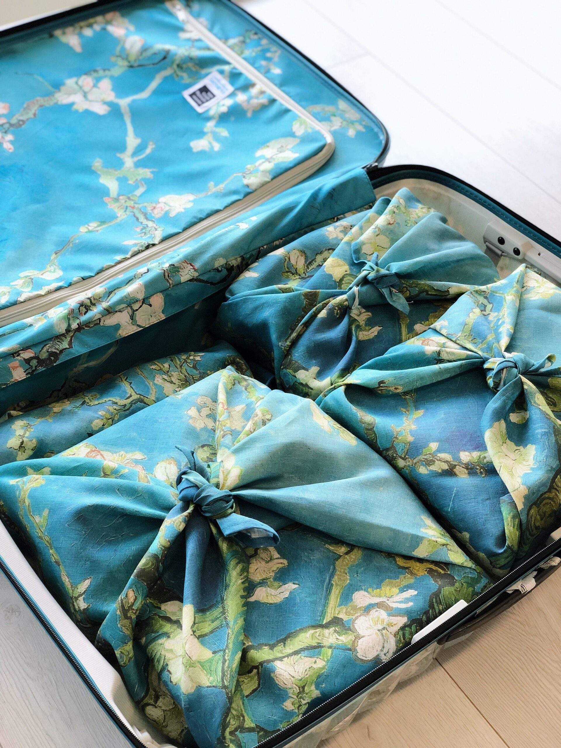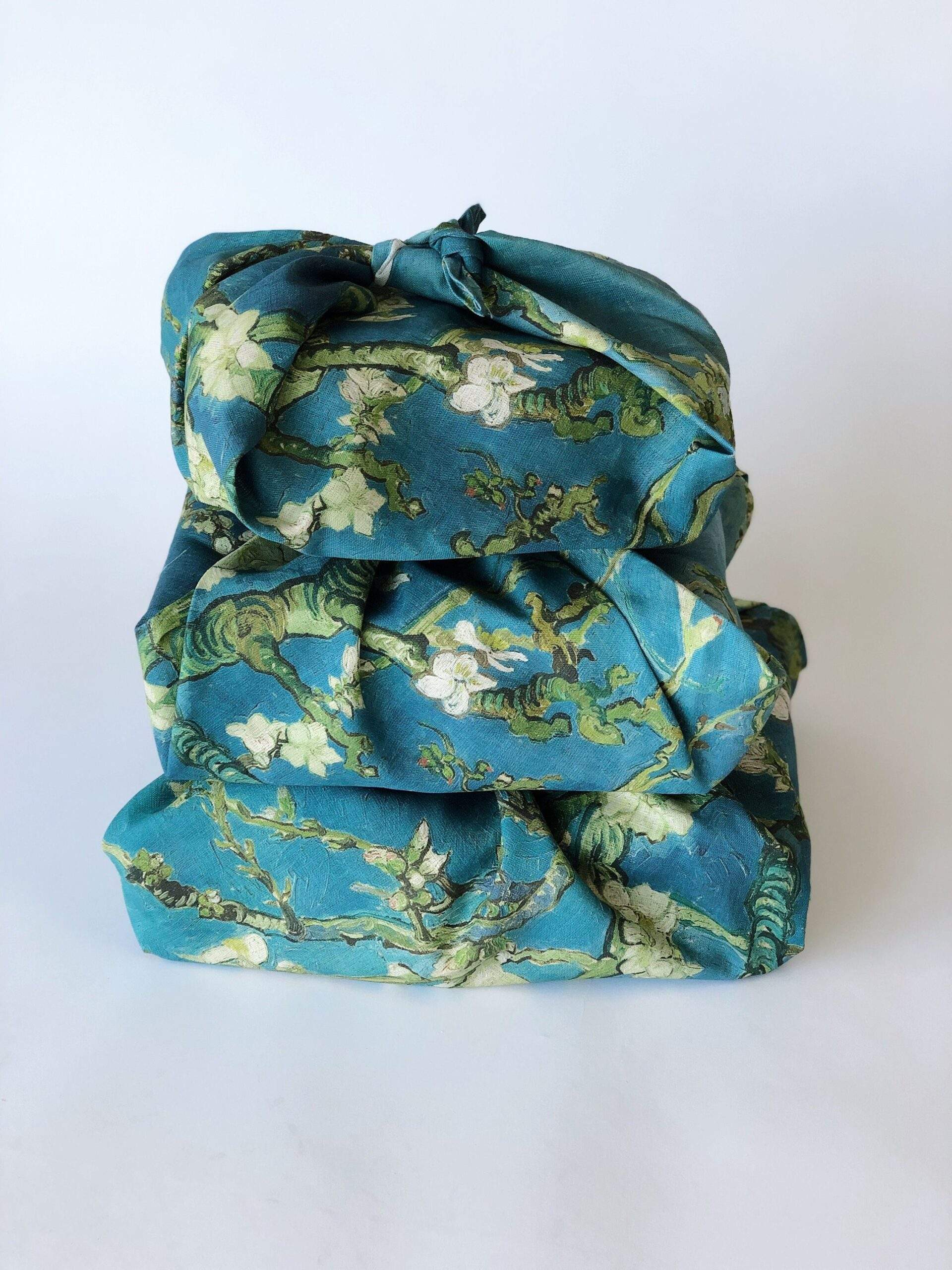 Furoshiki wrap Vincent van Gogh “Almond Blossom” is made from 100% linen. We accept custom order request for different sizes.