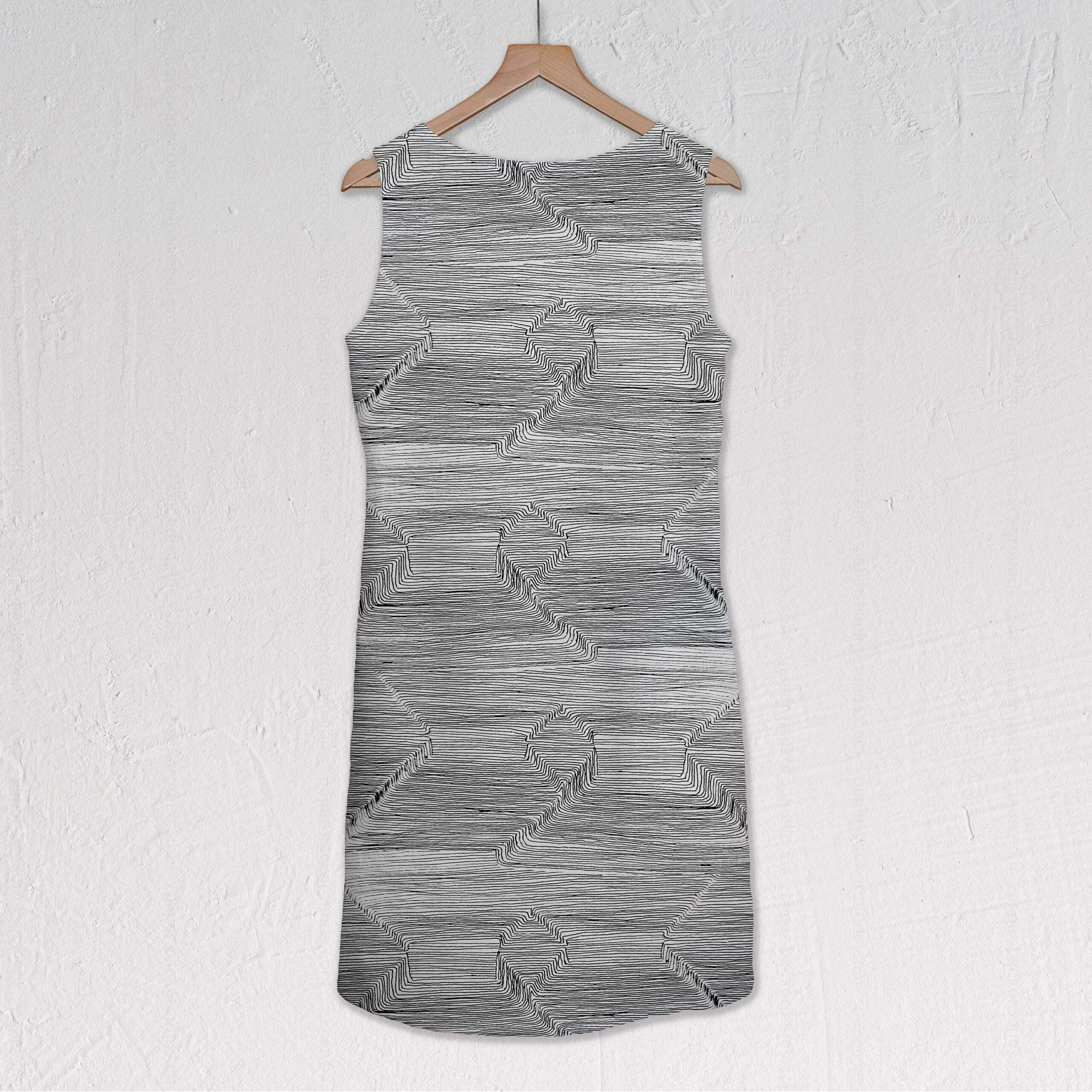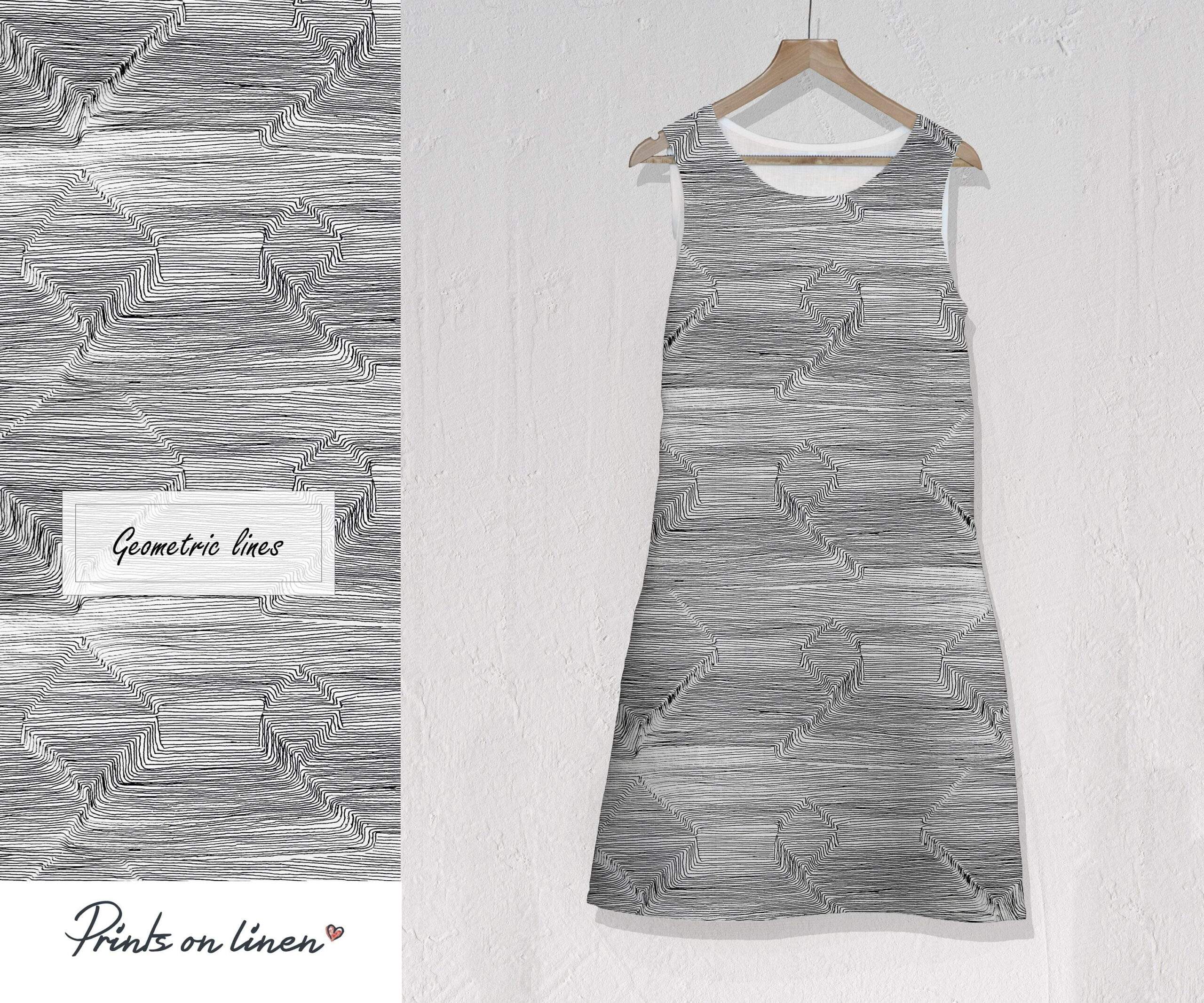 Linen women dress with geometric lines pattern. Created by Irmantas Žutautas.
