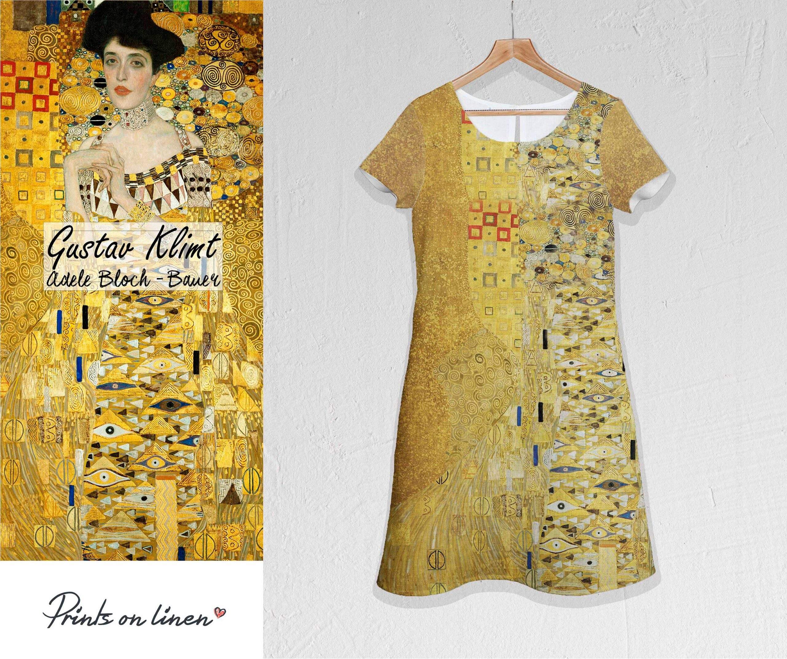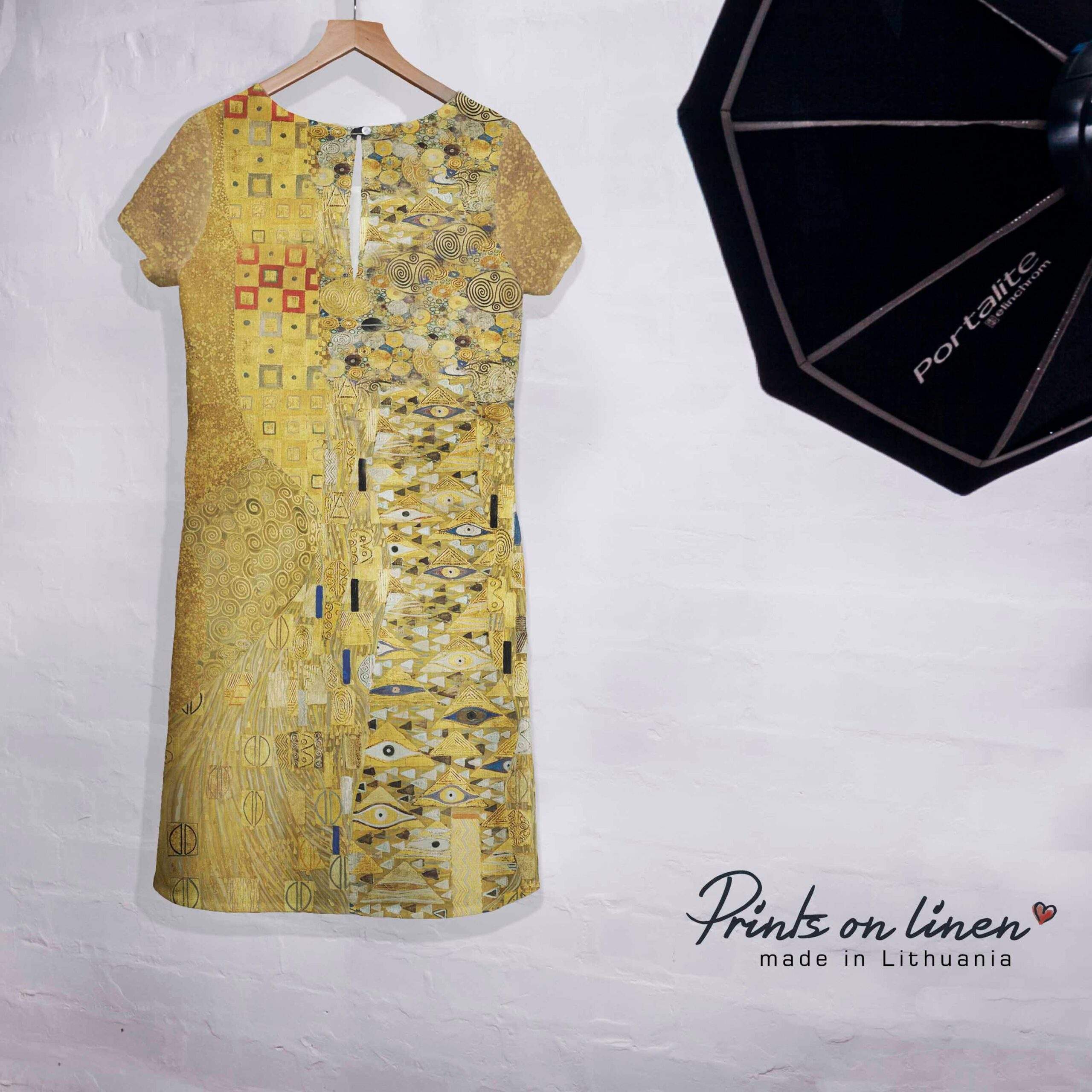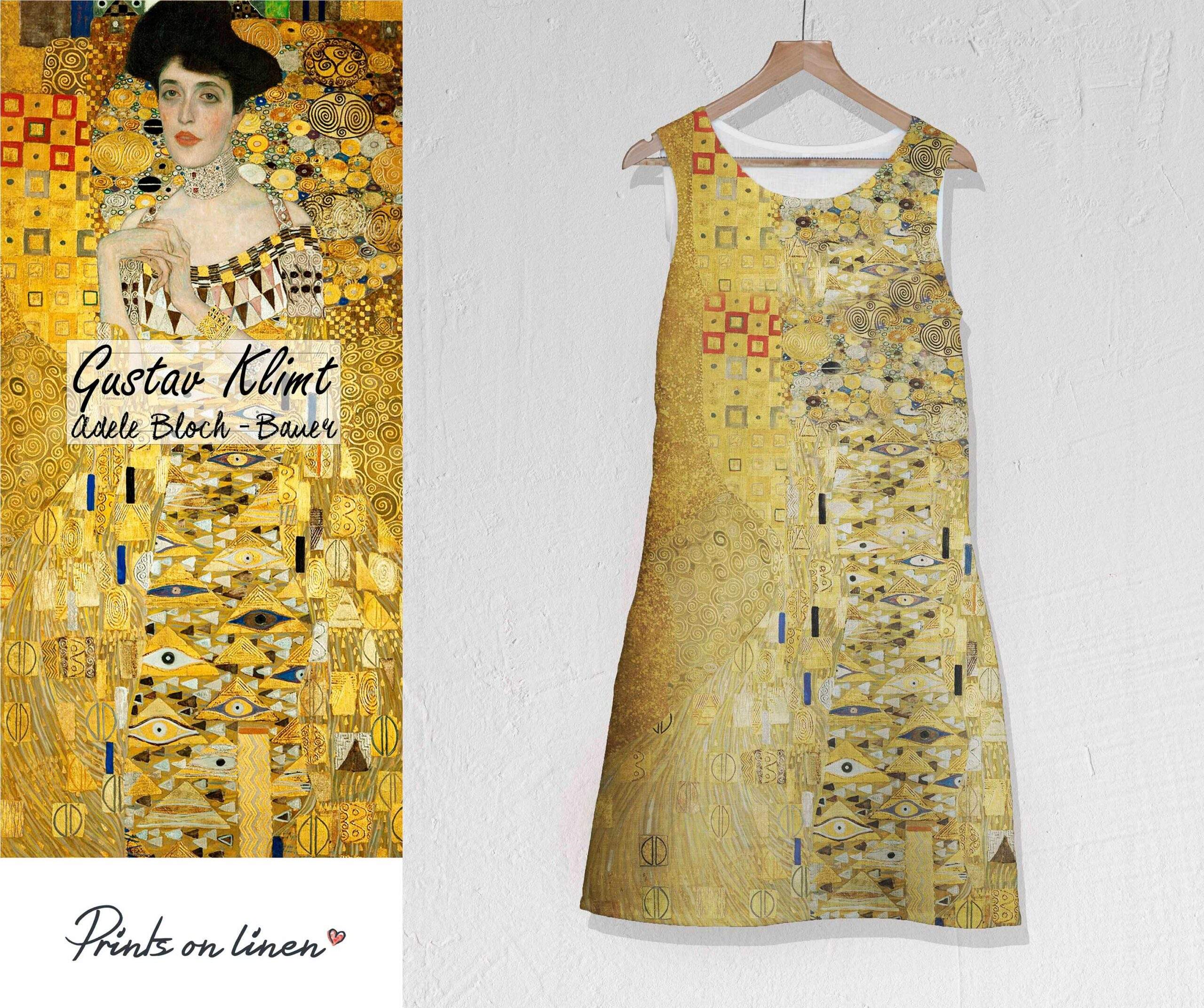 Linen women dress inspired by Gustav Klimt artwork “Adele”. Dress print is on both dress sides, with pockets.