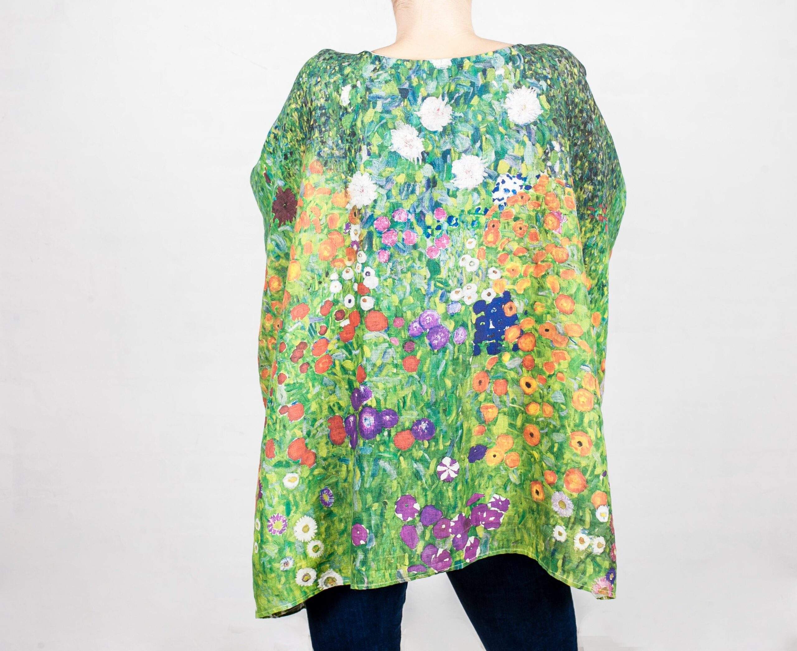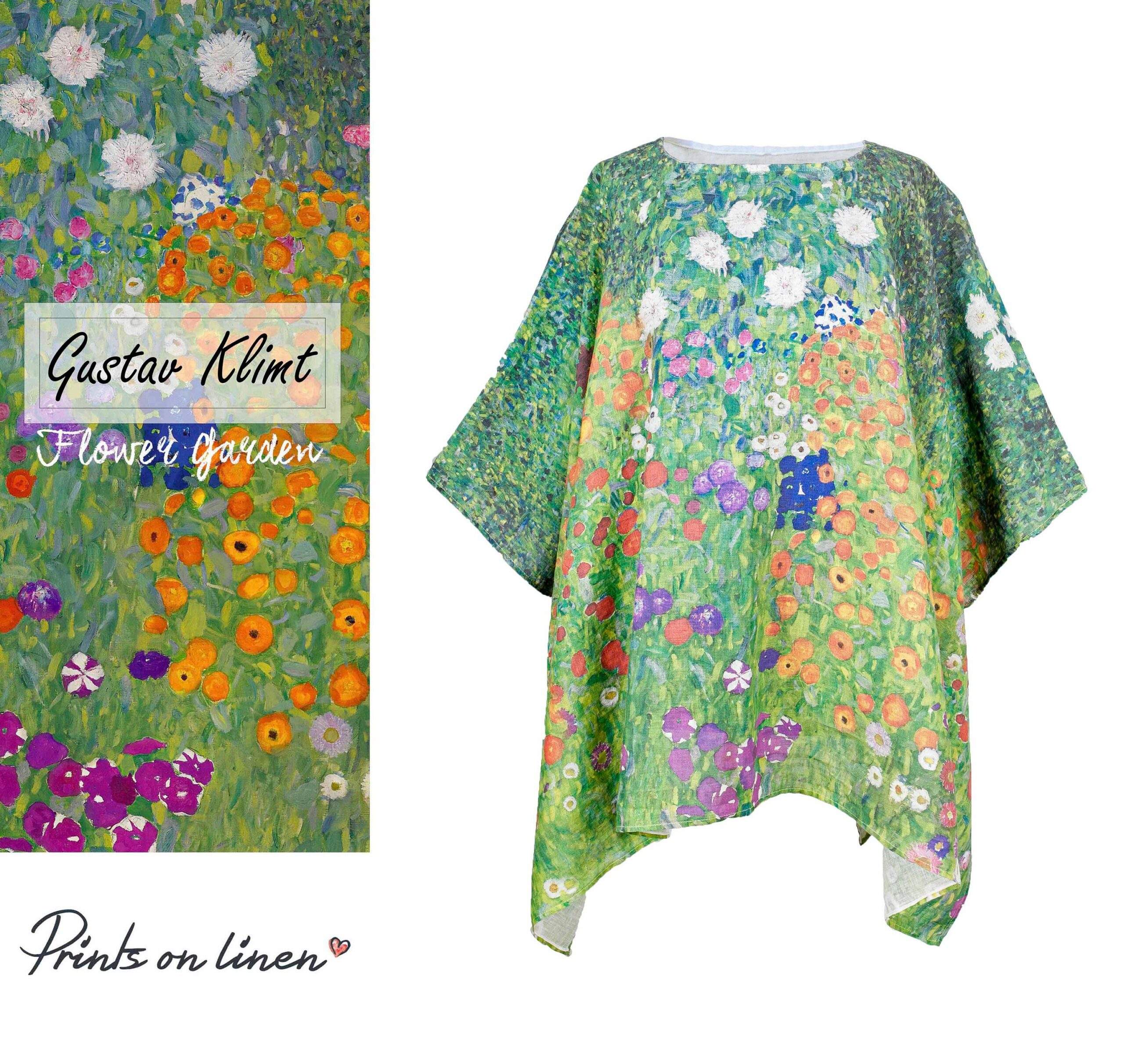 One size linen top, Gustav Klimt “Flower garden”. Same print on both sides. This linen tunic is made of 100% natural, good quality and stonewashed linen fabric. Organic, natural, vegan, eco friendly. Hand made in Lithuania.