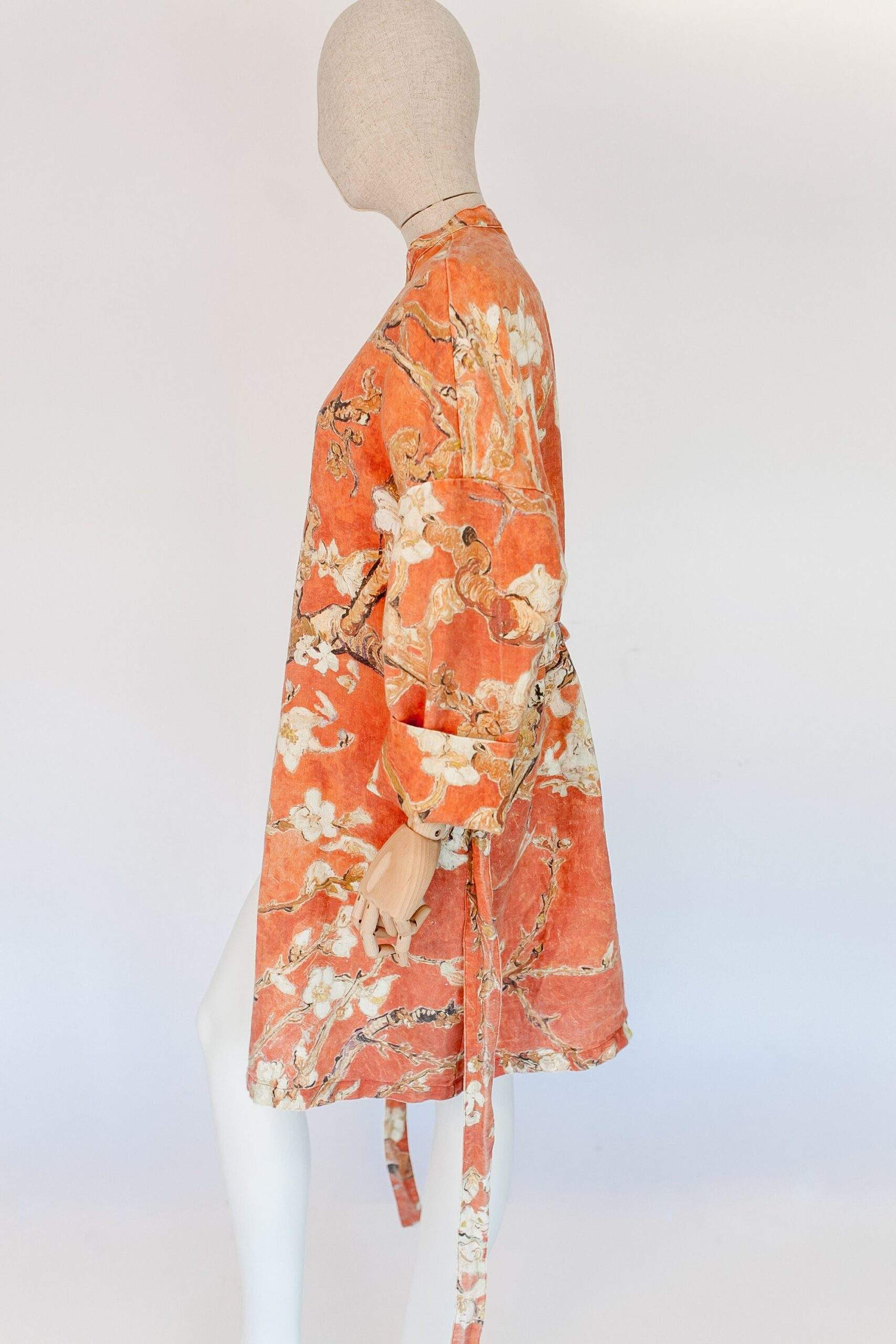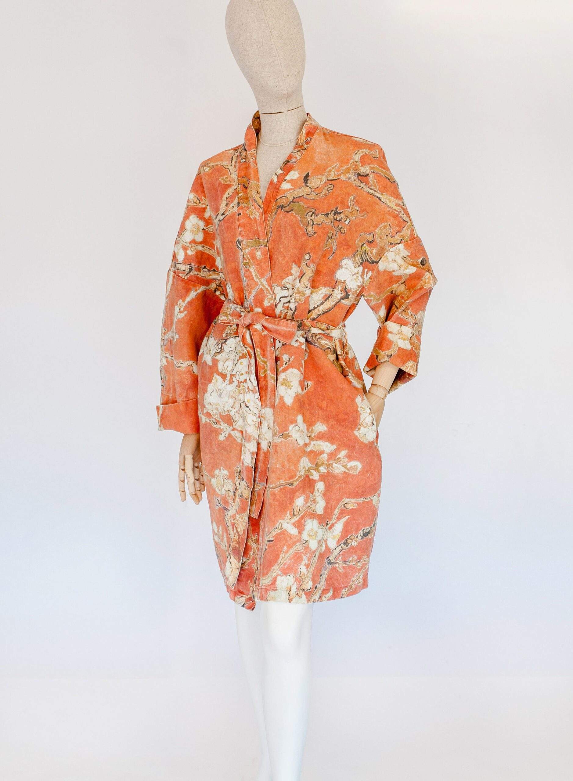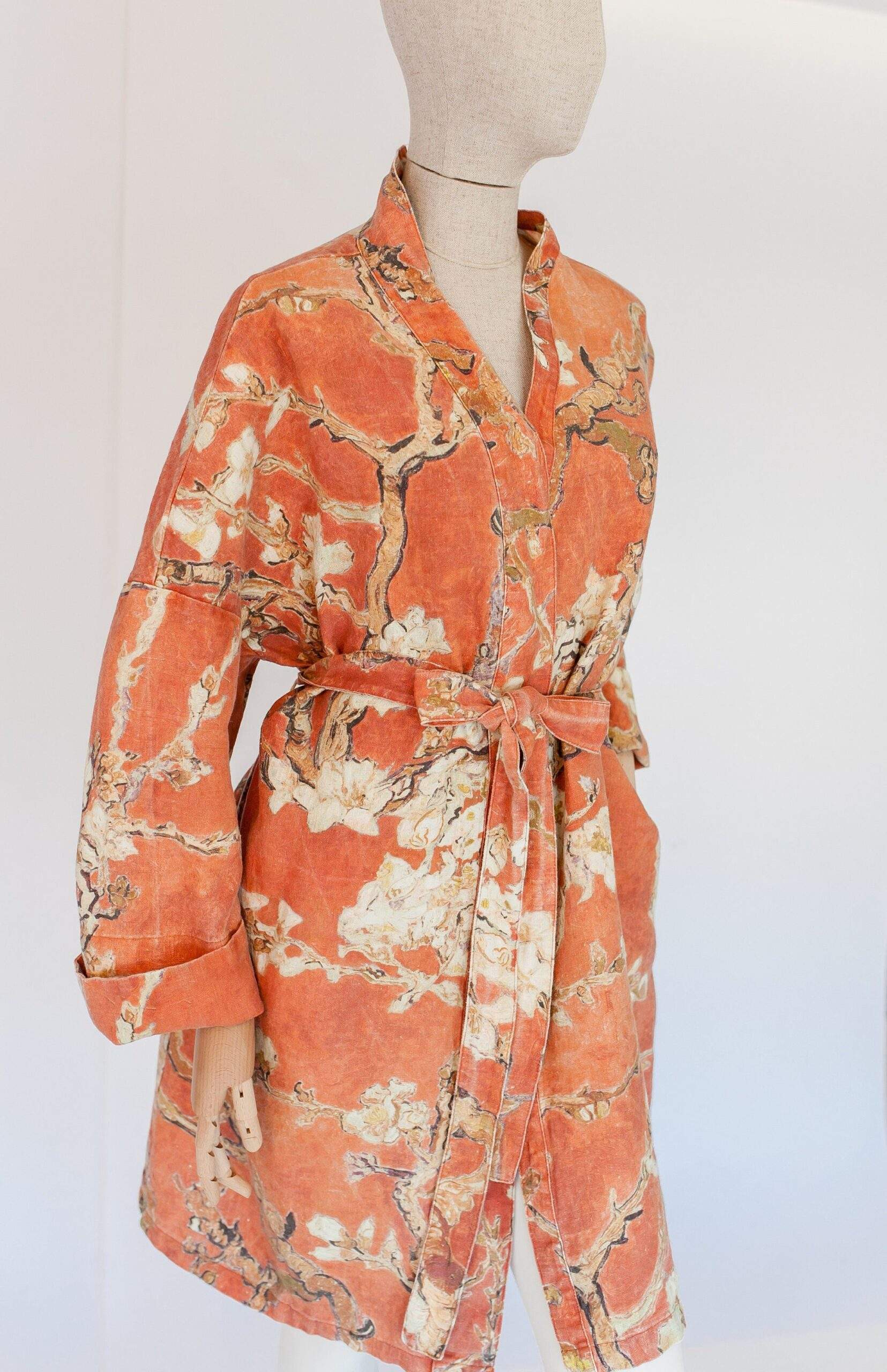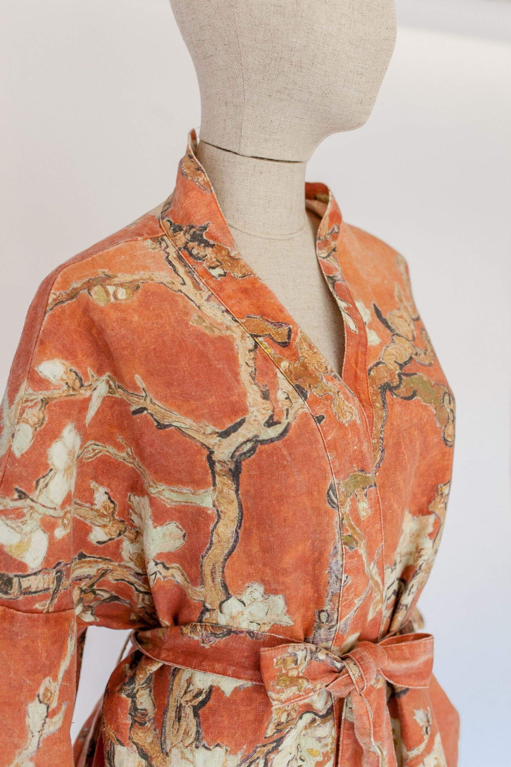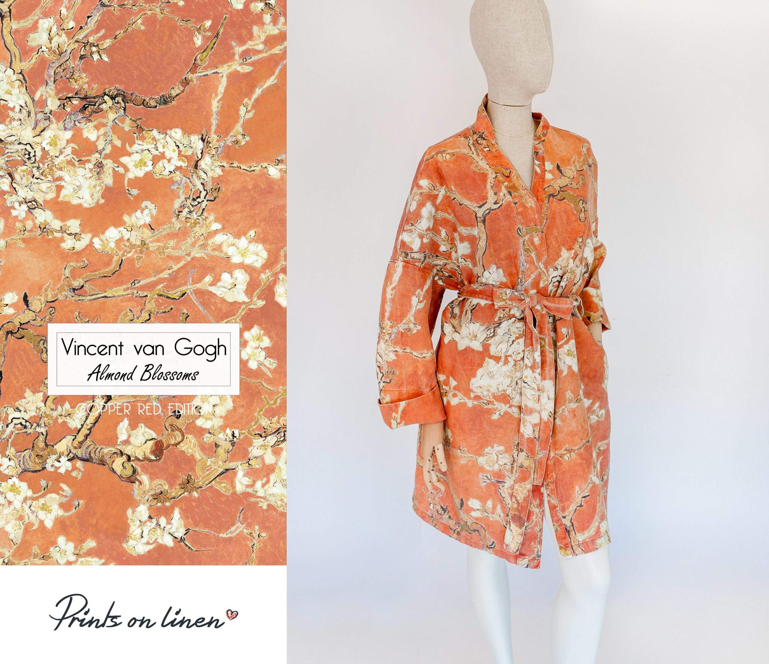Kimono robe, Vincent van Gogh, kimono cardigan, bathrobe, Almond blossom, 100% linen, bridesmaid gift, Linen robe, PR1154