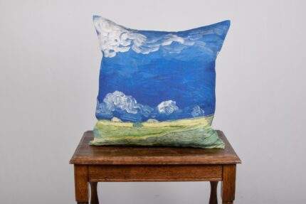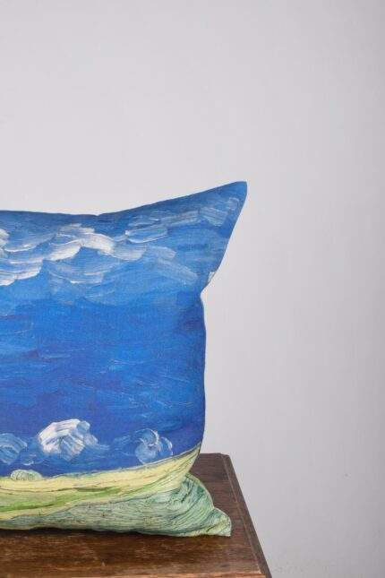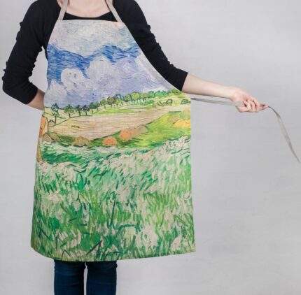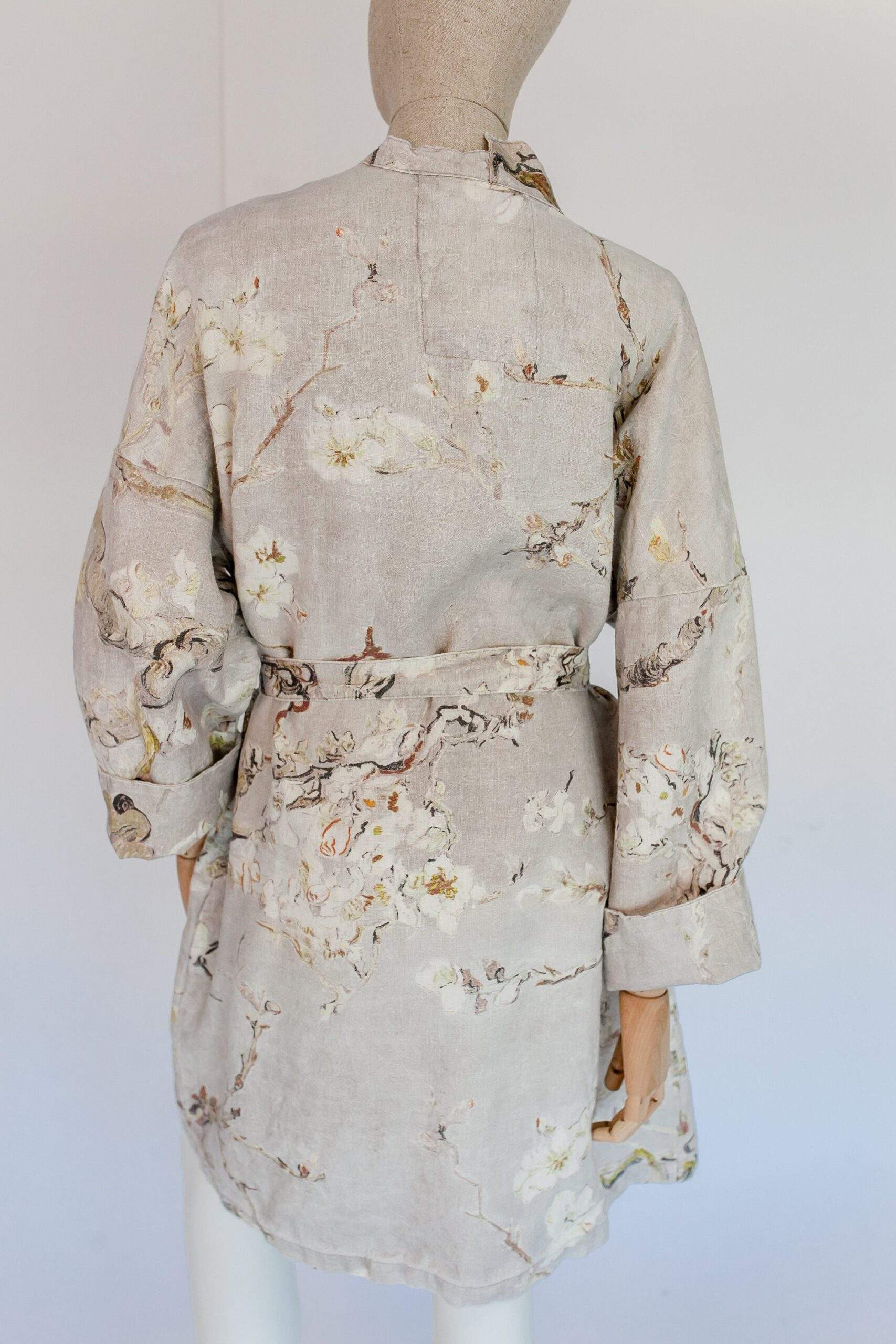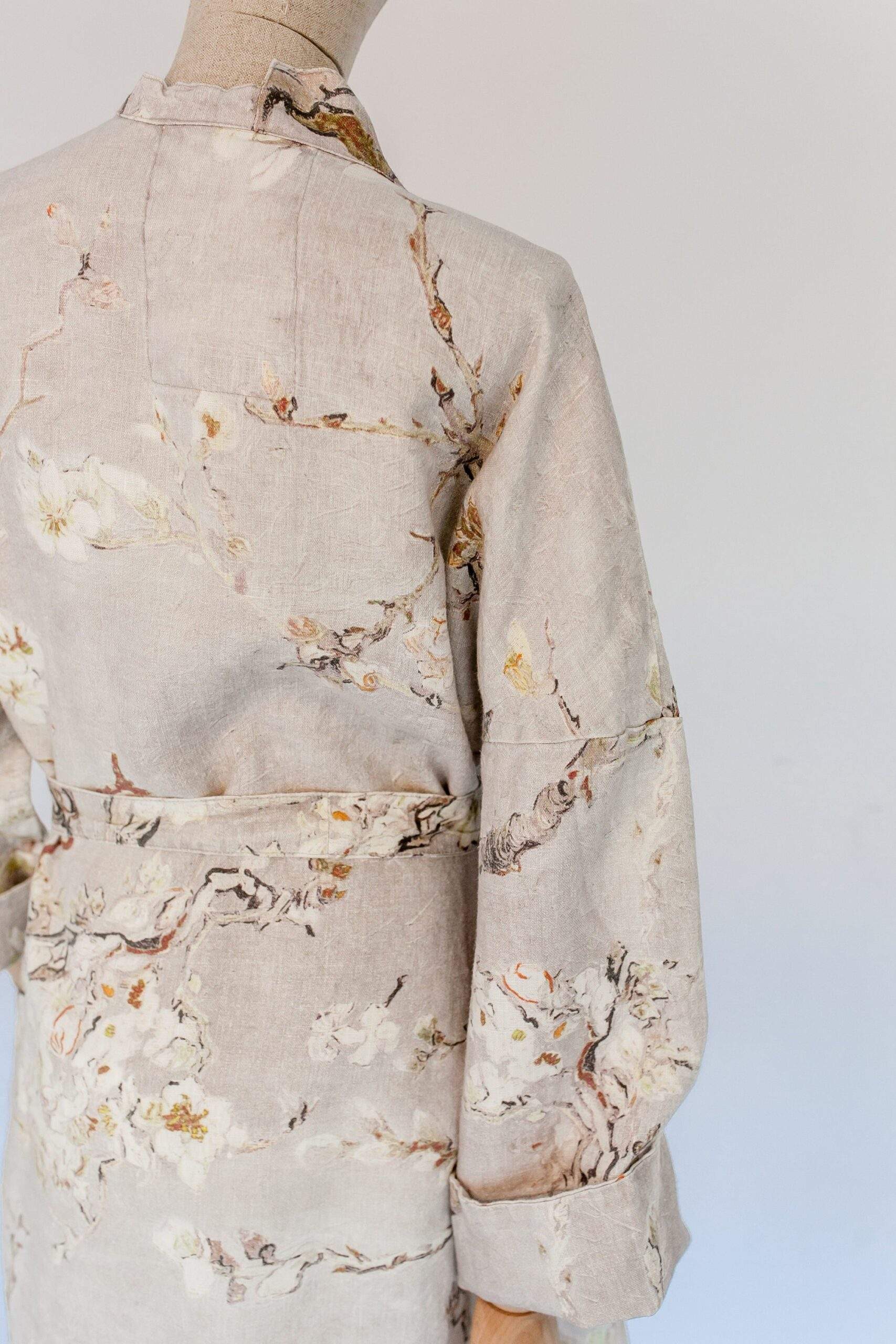 Women linen bathrobe Vincent Van Gogh “Almond blossom” with asymmetric collar. Ash grey color edition.