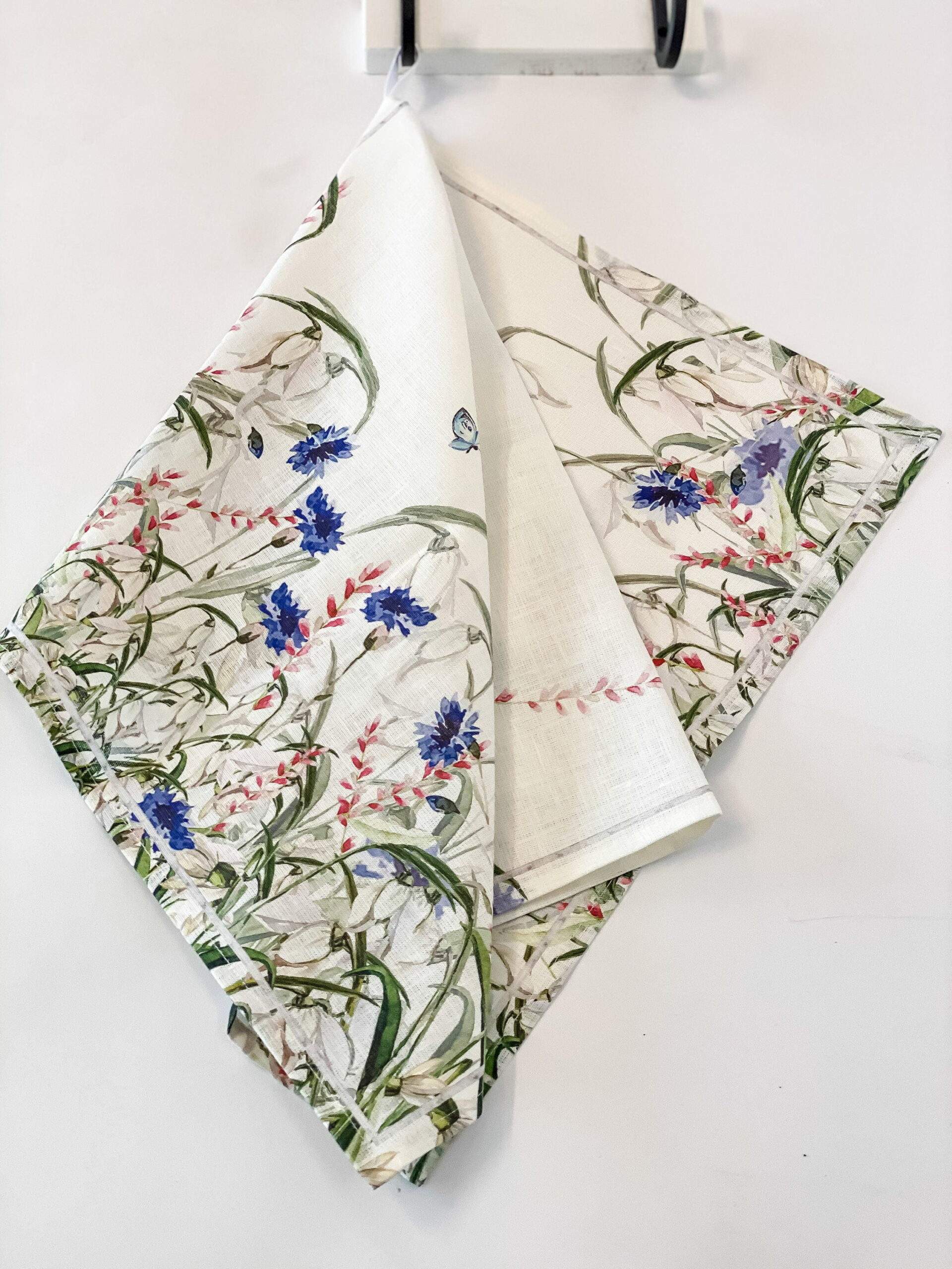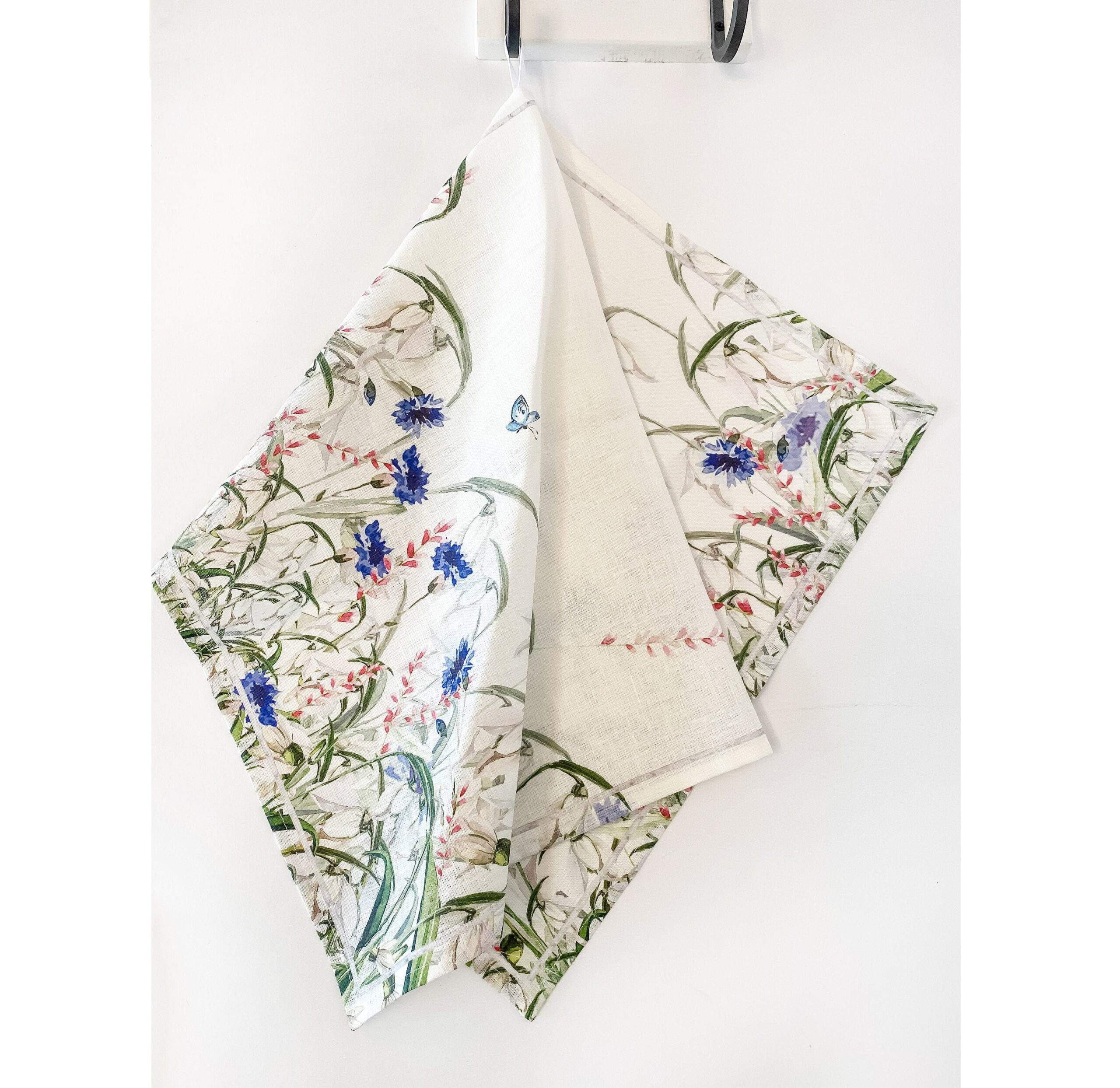 Kitchen towel, Cornflowers, tea towel, linen towel, towel with hook, towel print, 100% linen, gift idea, linen kitchen towel, PR1159