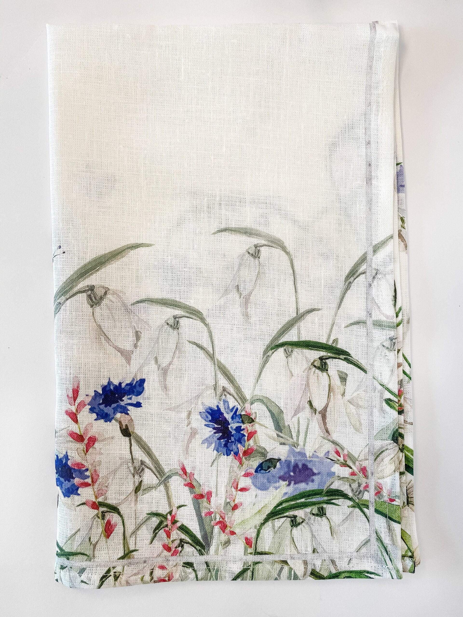 Linen kitchen towel “Cornflowers”. Unique kitchen decor, housewarming gift, farmhouse decor.