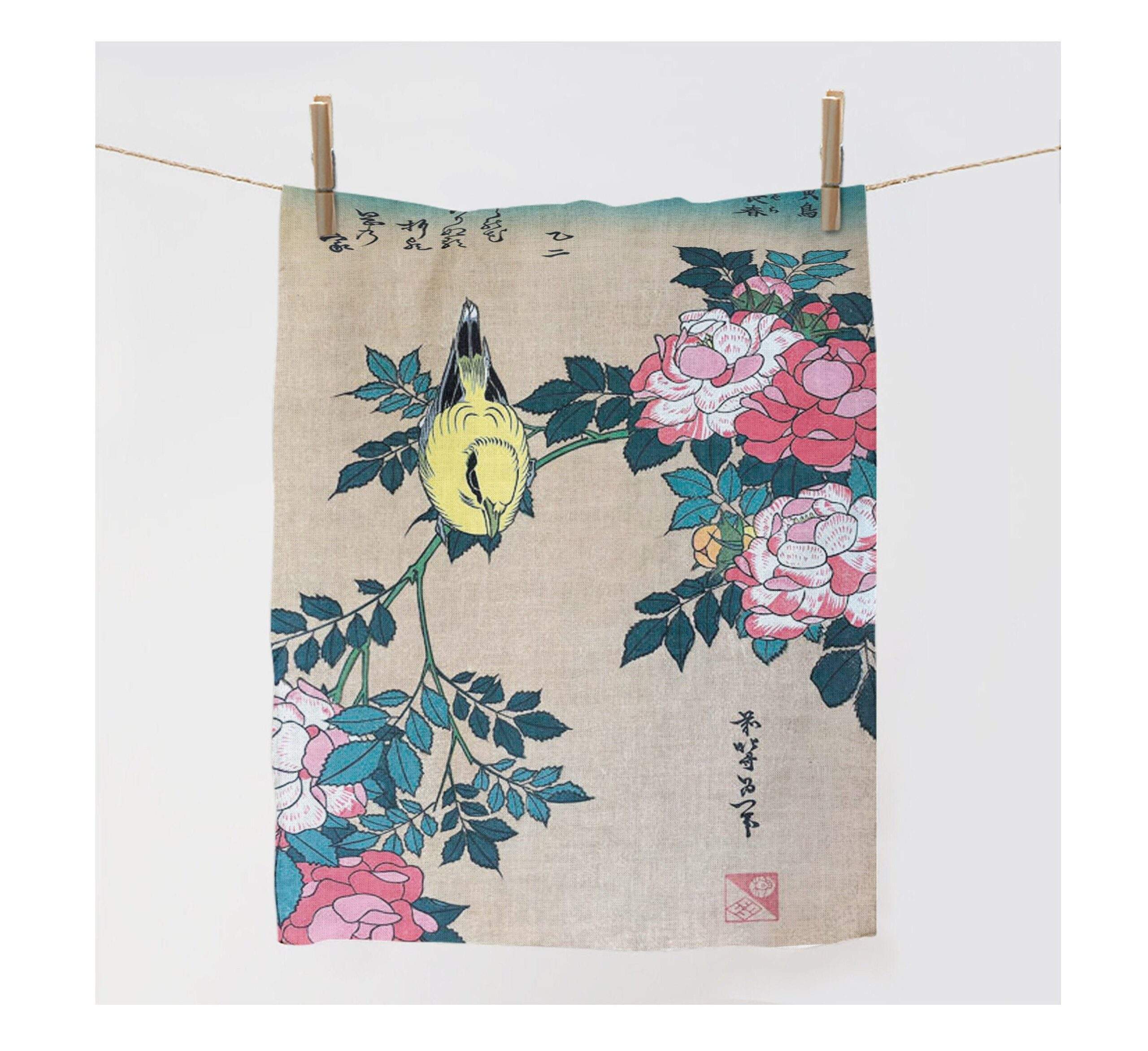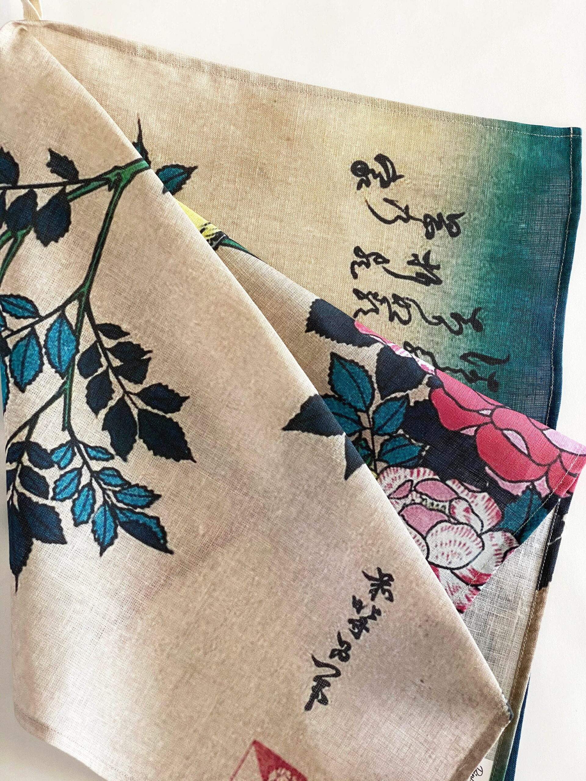 Linen Kitchen towel Oedo Mokuhanga – Woodblock. Unique kitchen decor, housewarming gift, farmhouse decor.