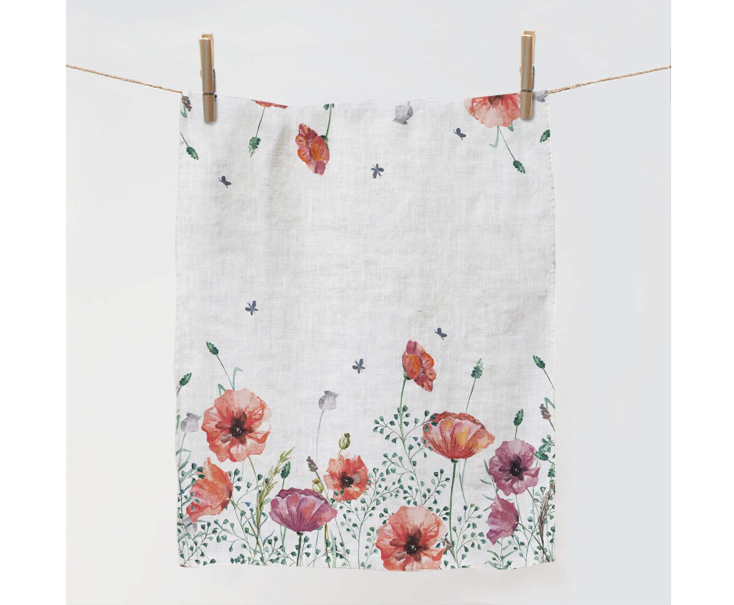 Kitchen towel, Poppies, tea towel, linen towel, towel with hook, towel print, 100% linen, gift idea, linen kitchen towel, LINENISLOVE, PR0333