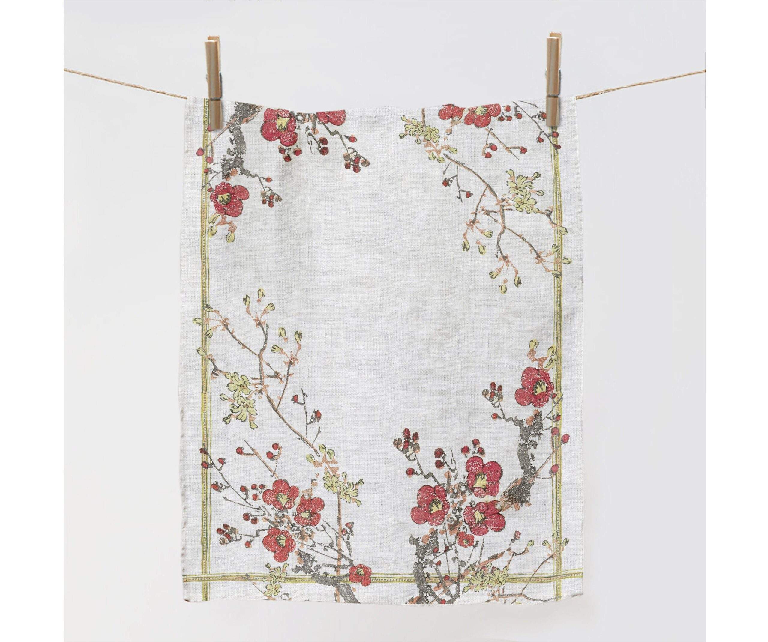 Easter linen kitchen towel “Spring in Japan” with hook.