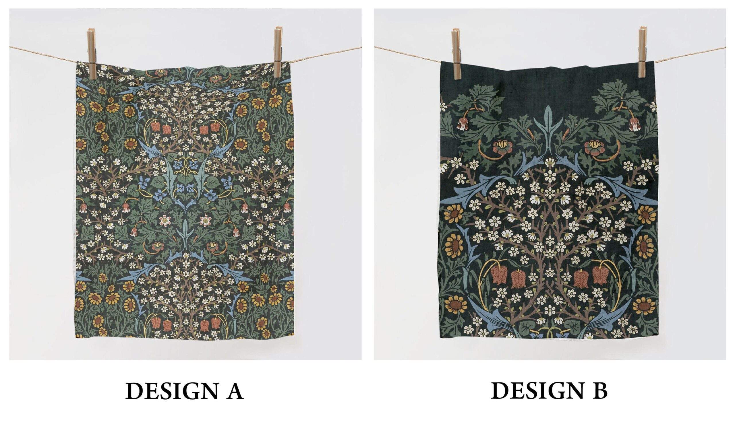 Kitchen towel William Morris “Blackthorn”. Towel with hook. Hand made in Lithuania.