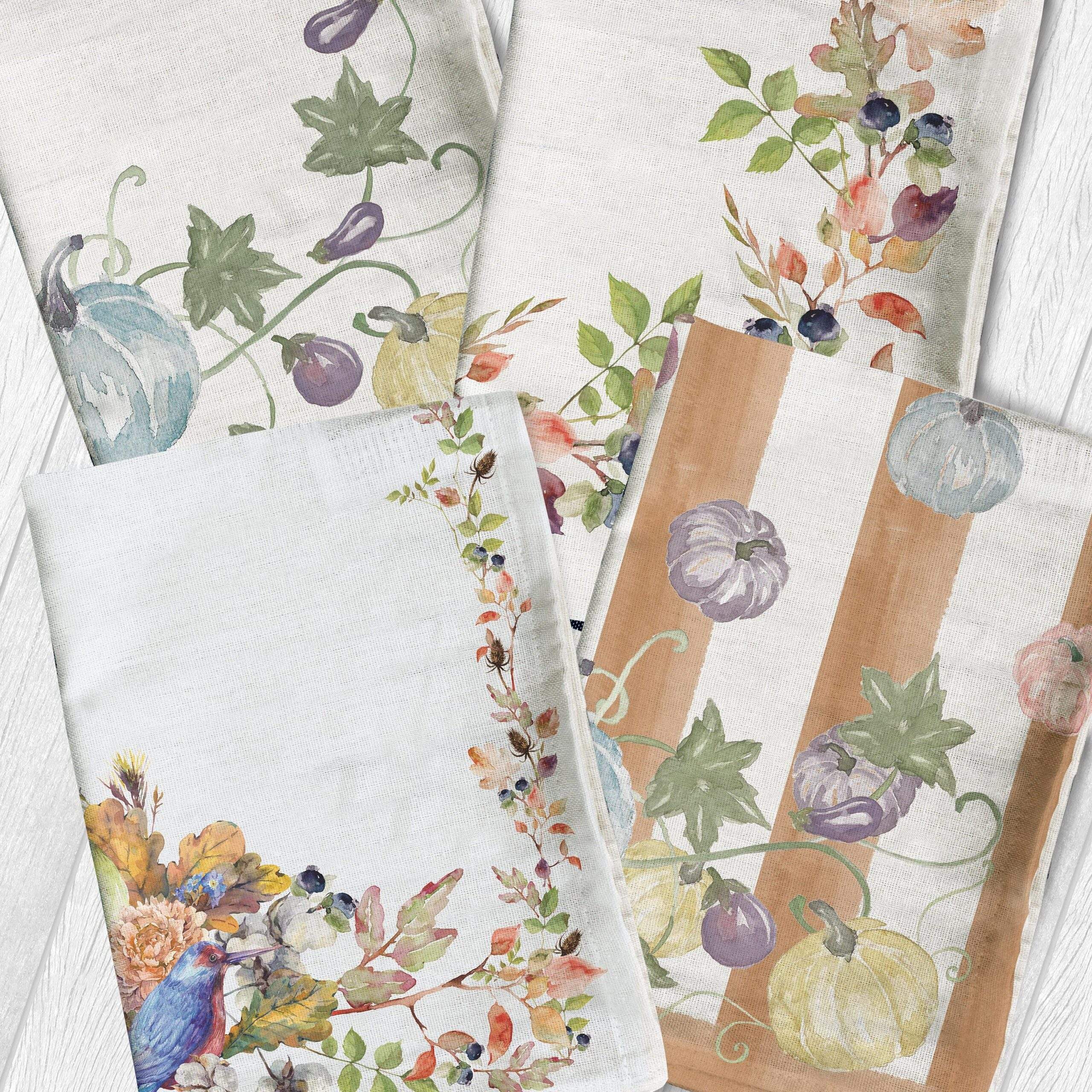 Kitchen towels set with four different prints. Towels with hook, 4 units, 100% organic linen.