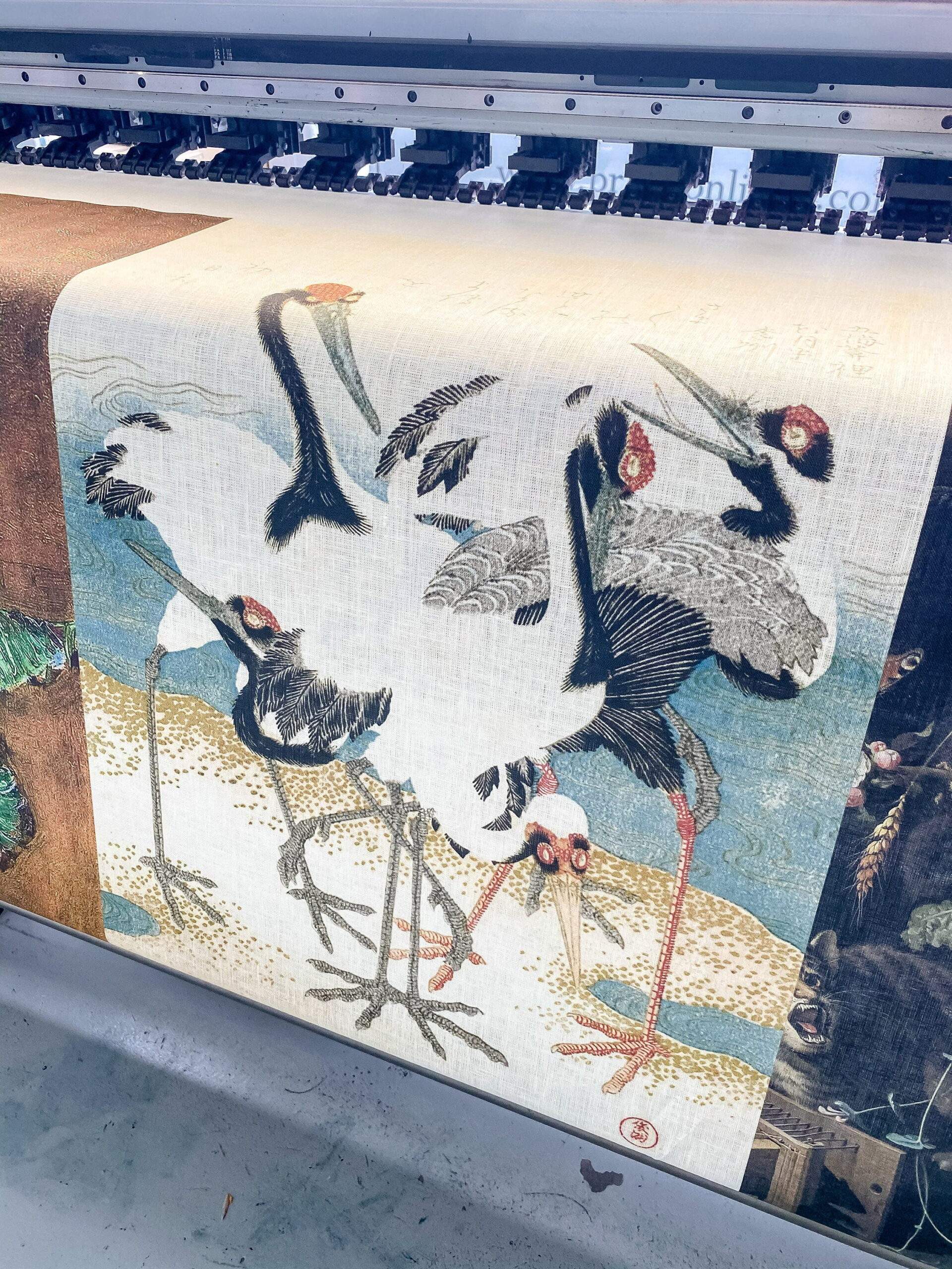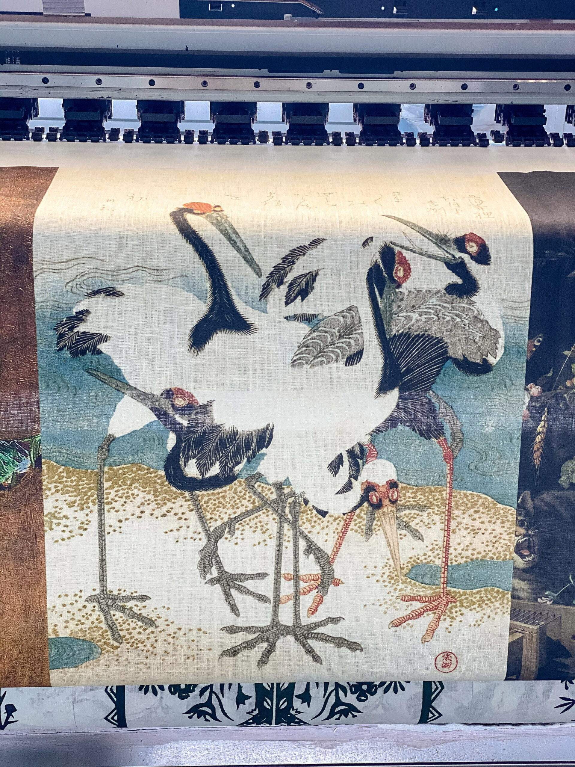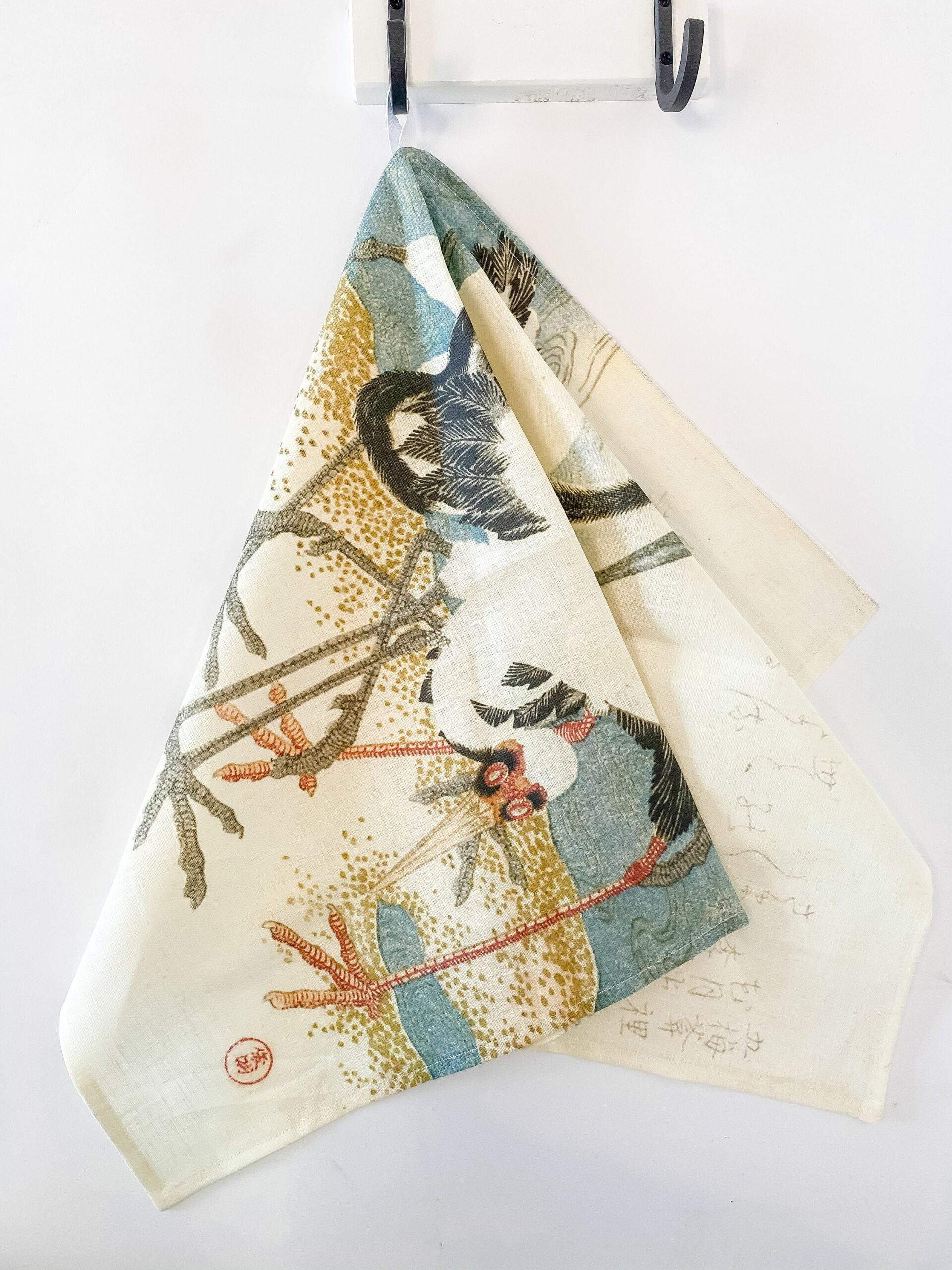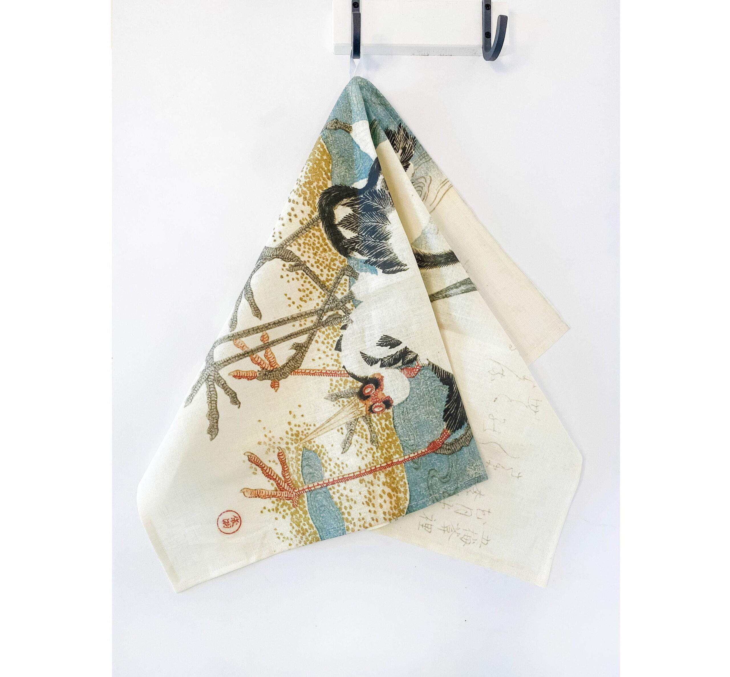 Linen kitchen towel “Kraanvogels aan het water” by Kubota Shunman, 1816.