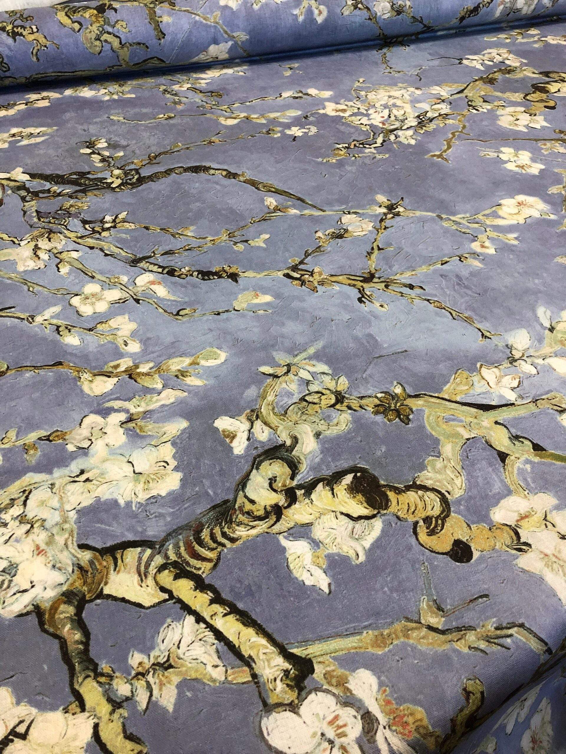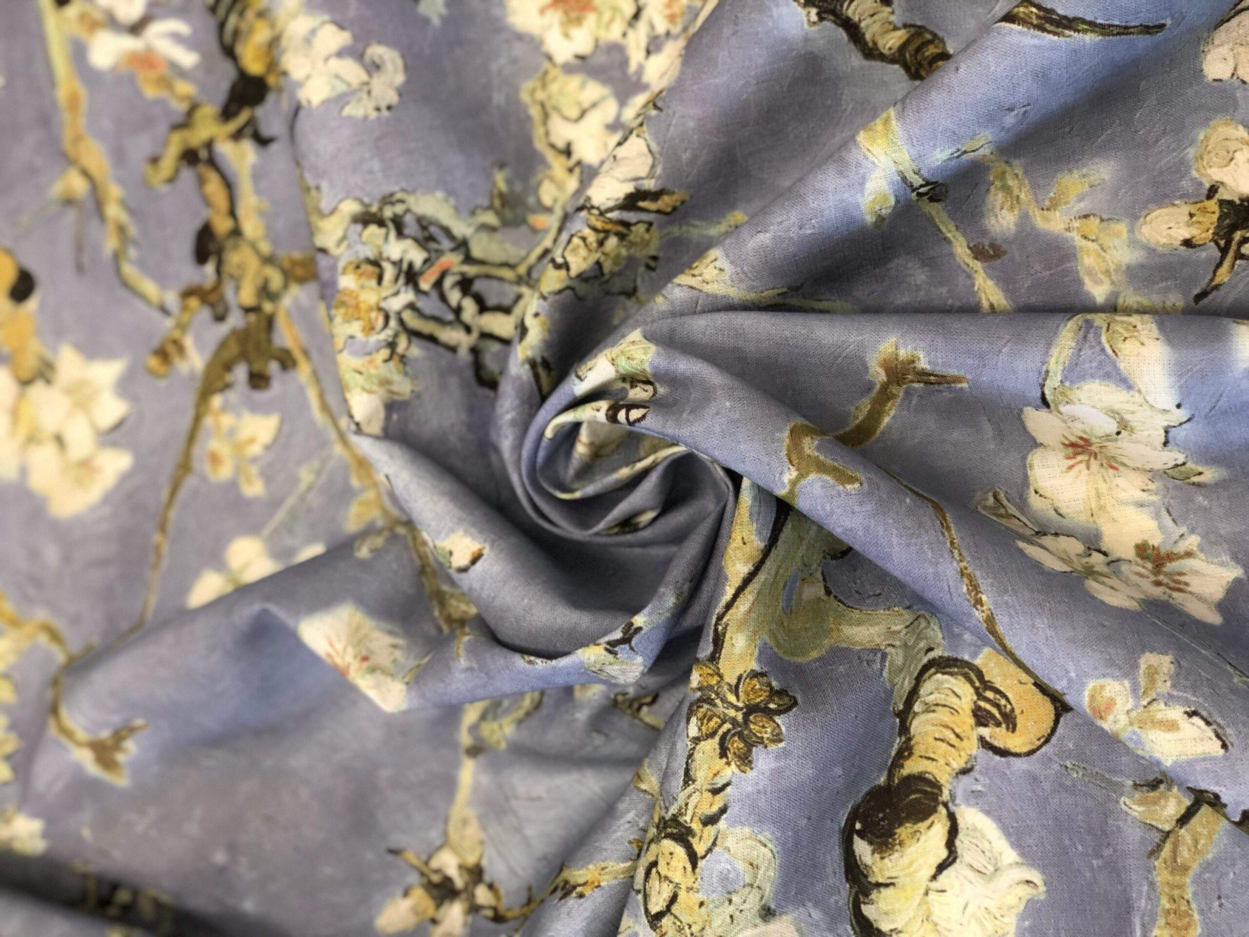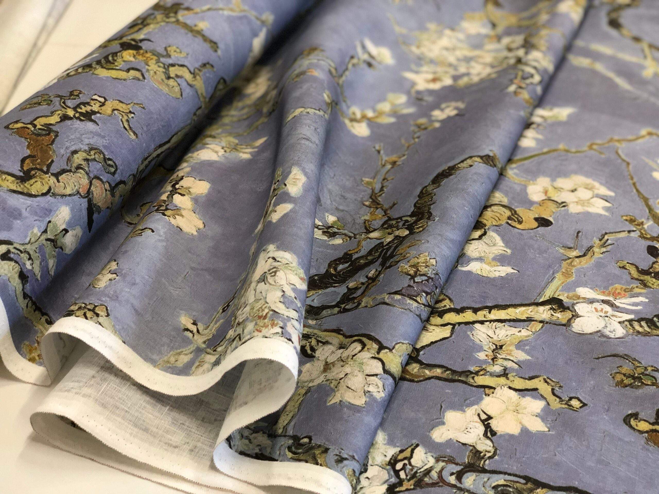 Linen fabric Vincent van Gogh “Almond Blossoms”. Lavender / light purple colour.