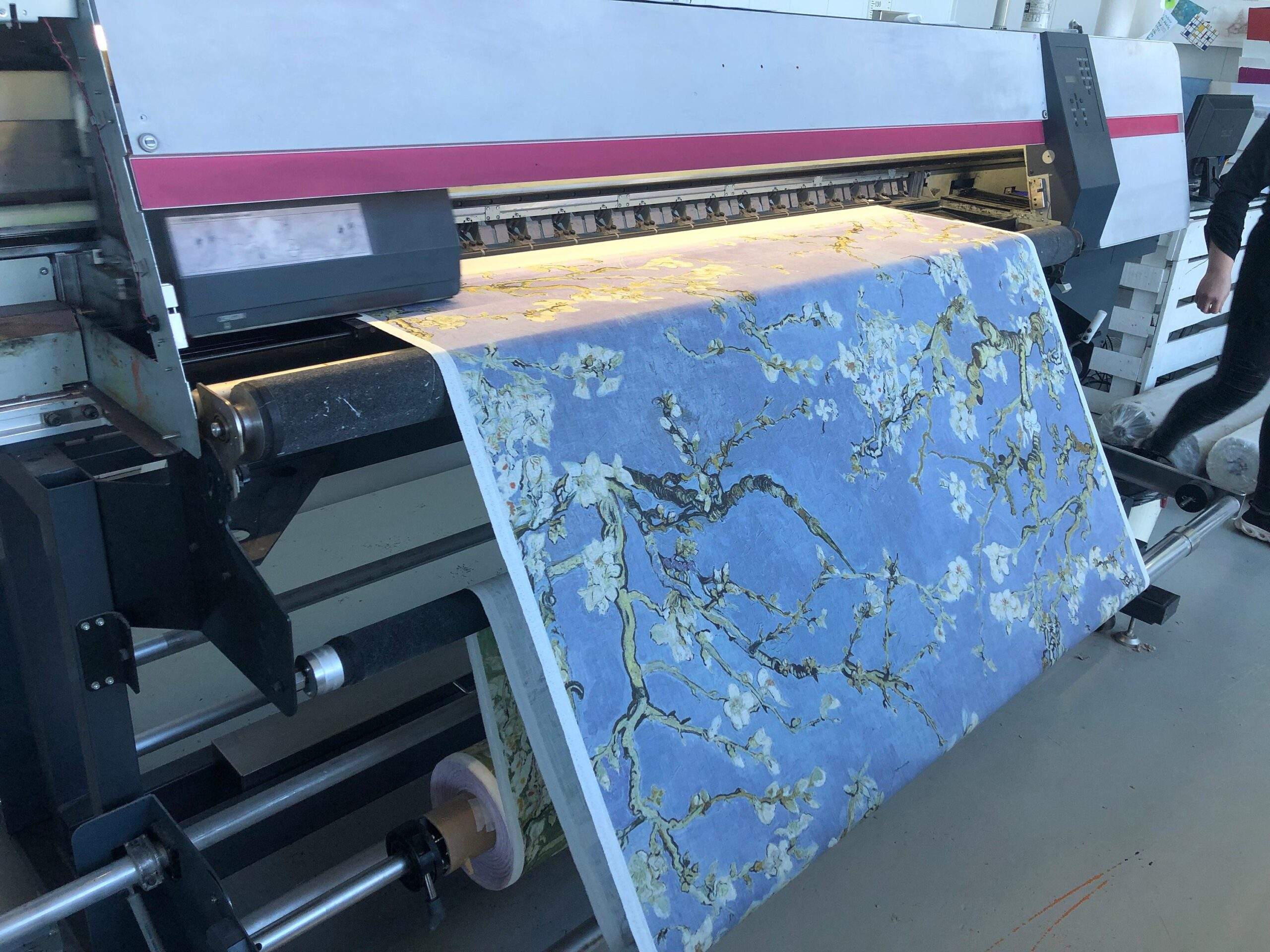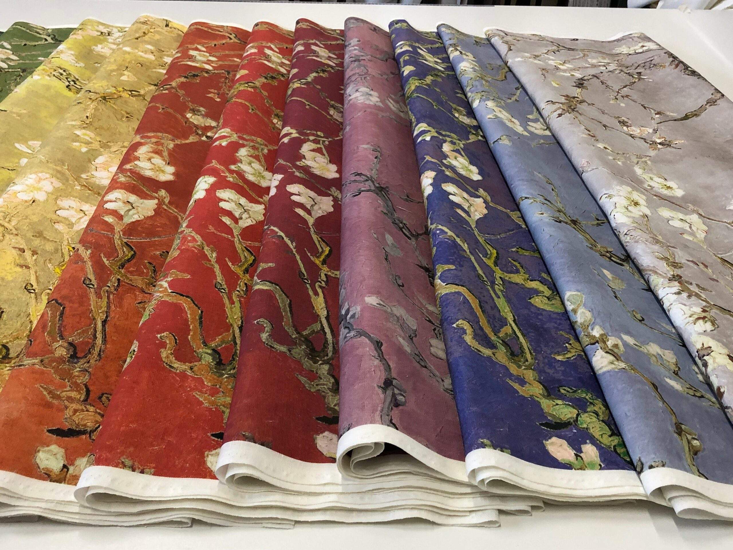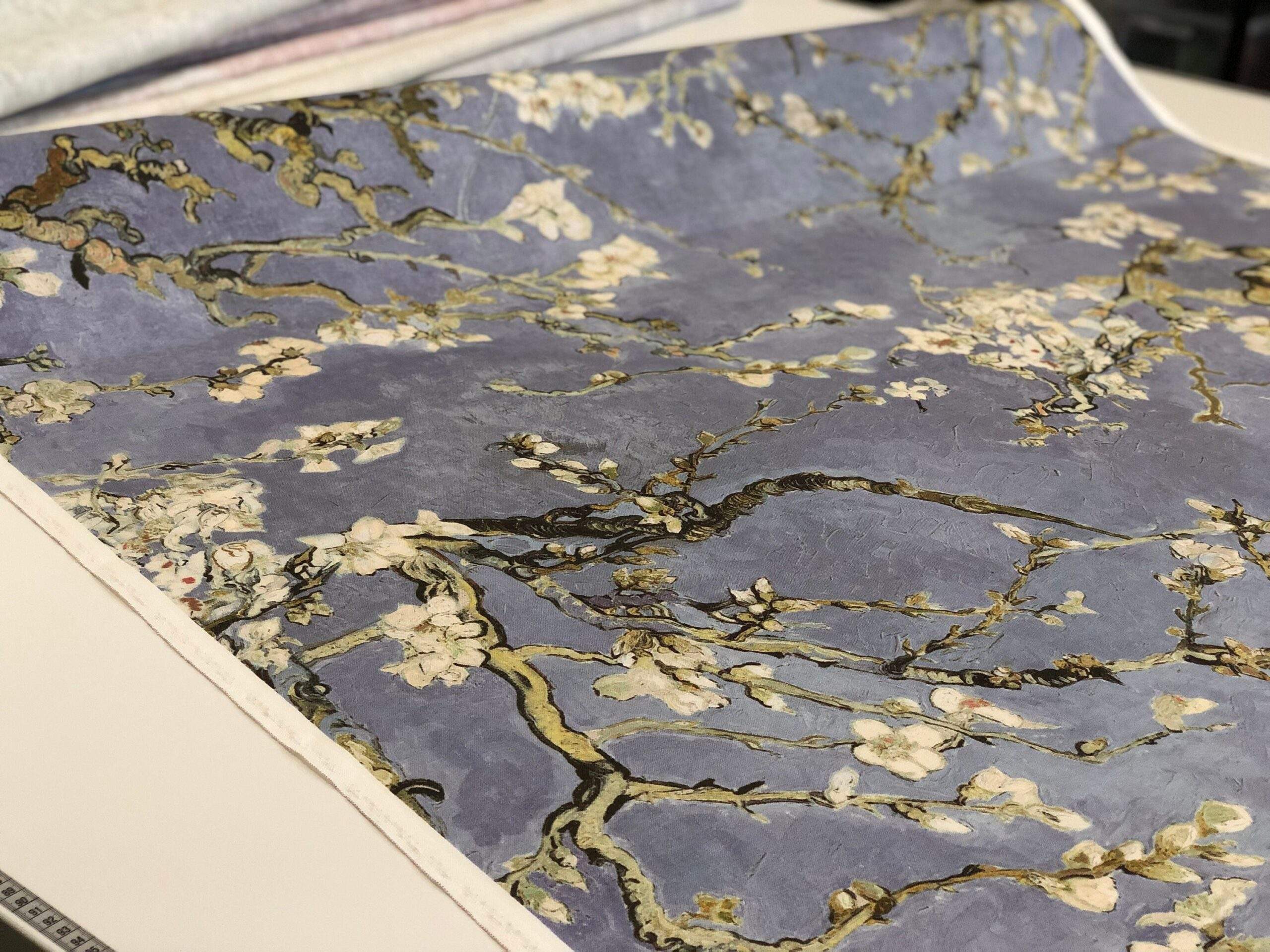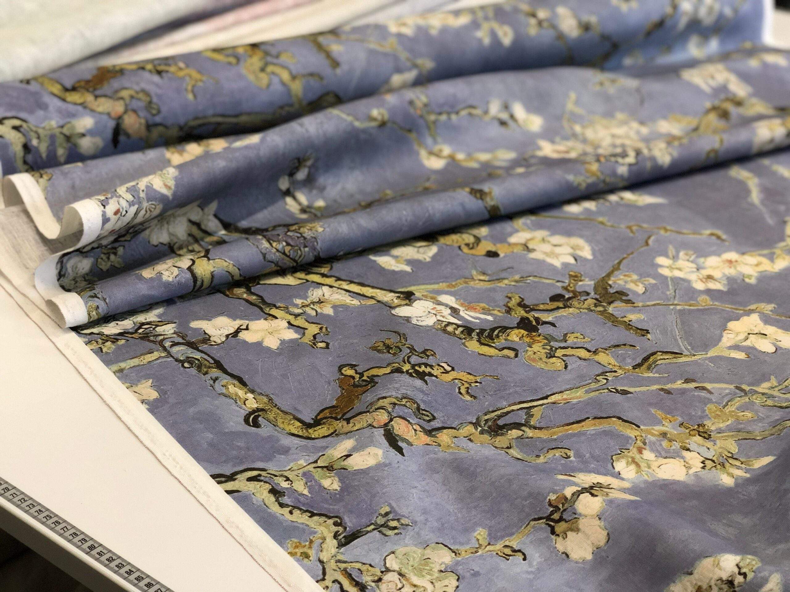 Linen fabric Vincent van Gogh “Almond Blossoms”. Lavender / light purple colour.
