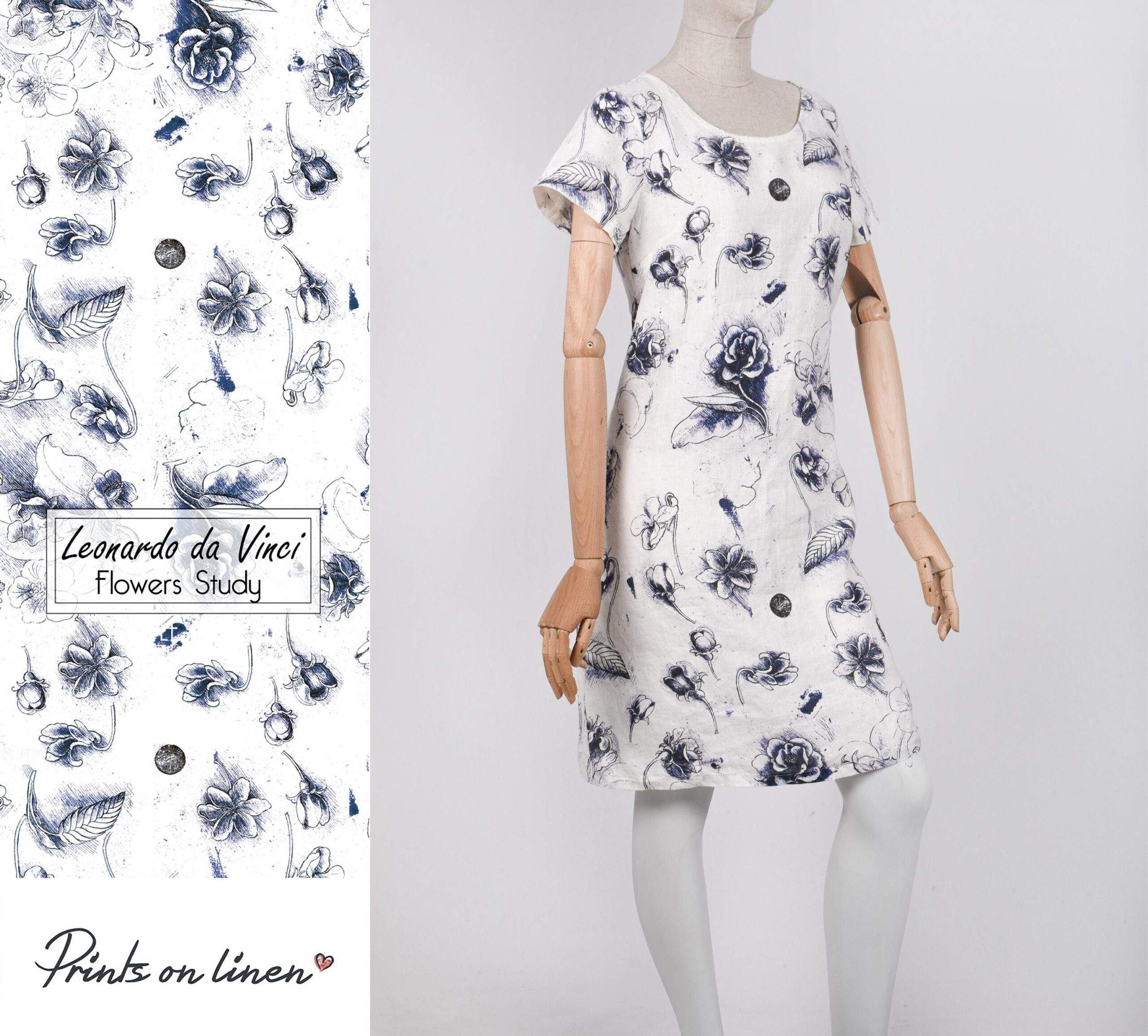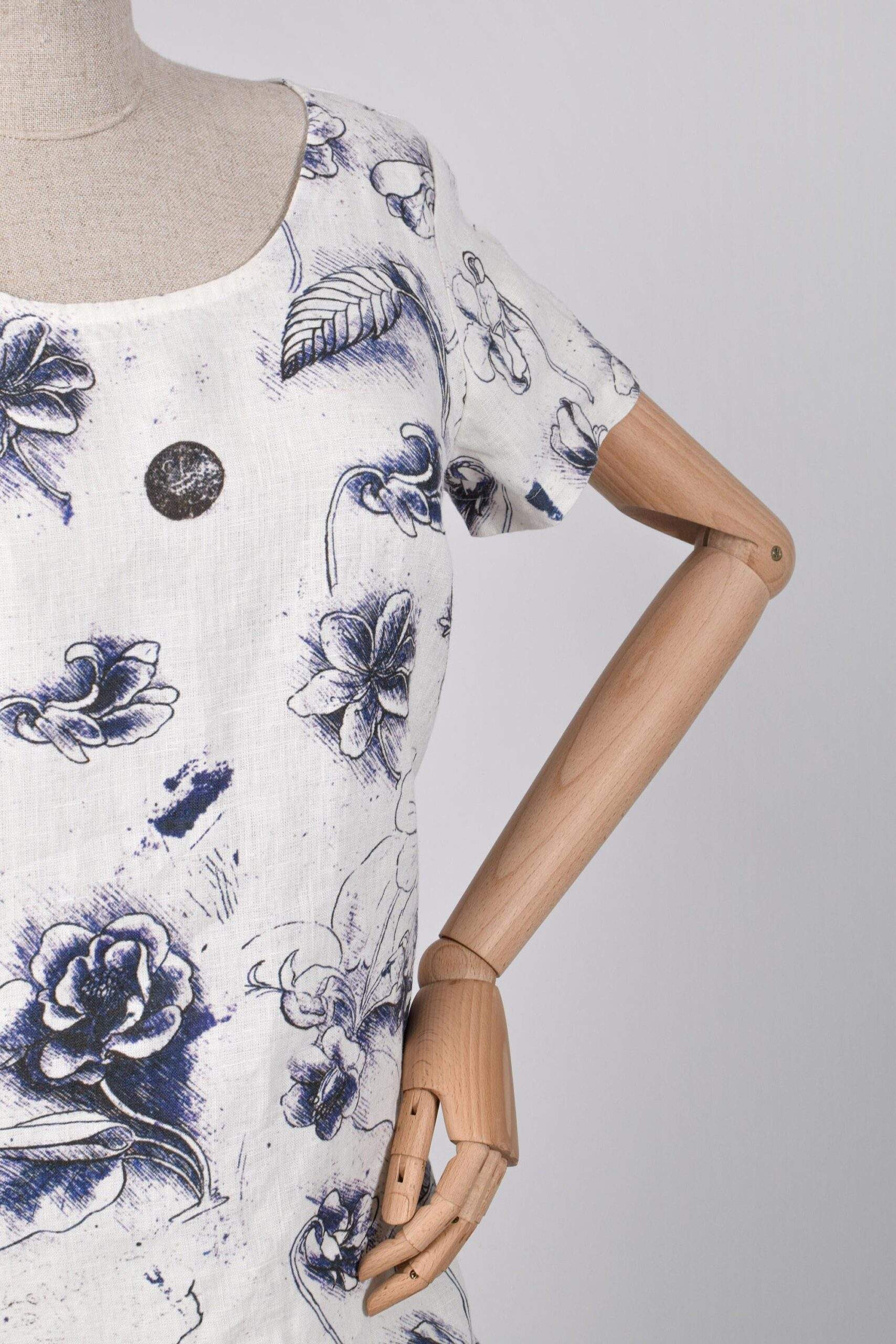 Linen women dress, Leonardo Da Vinci “Flower study”.