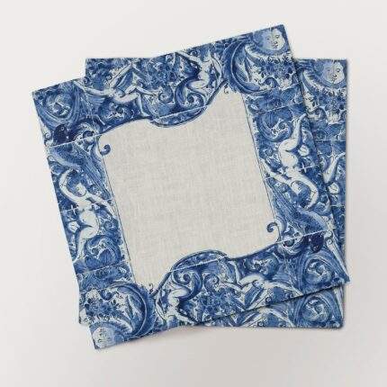 Napkins set, Blue willow print, Chinese Porcelain Art, 100% linen, blue napkins, linen napkins, hand made napkins, made in Lithuania, PR0119