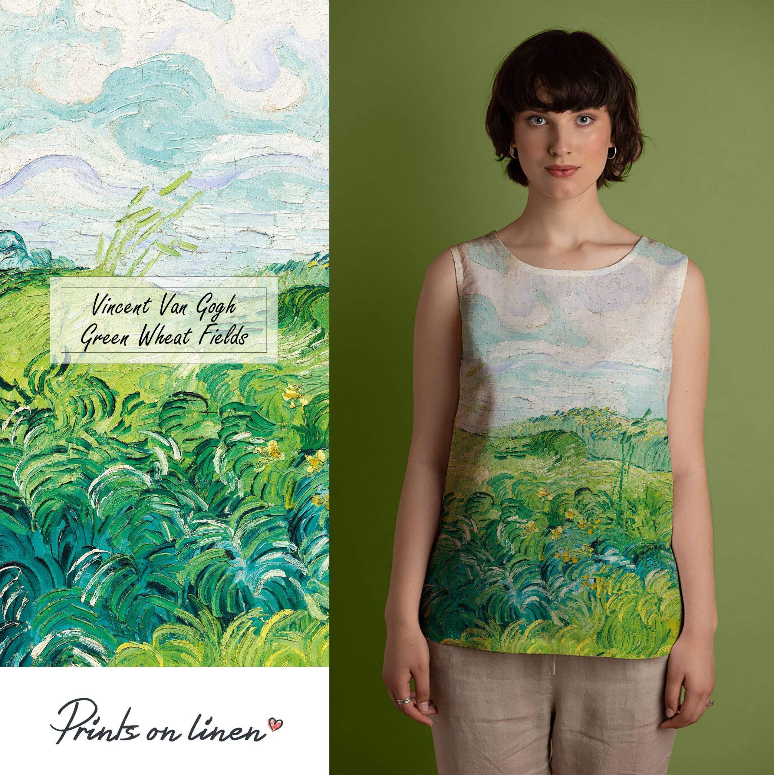 Linen top with asymmetric backsides Vincent van Gogh “Green Wheat Fields”.