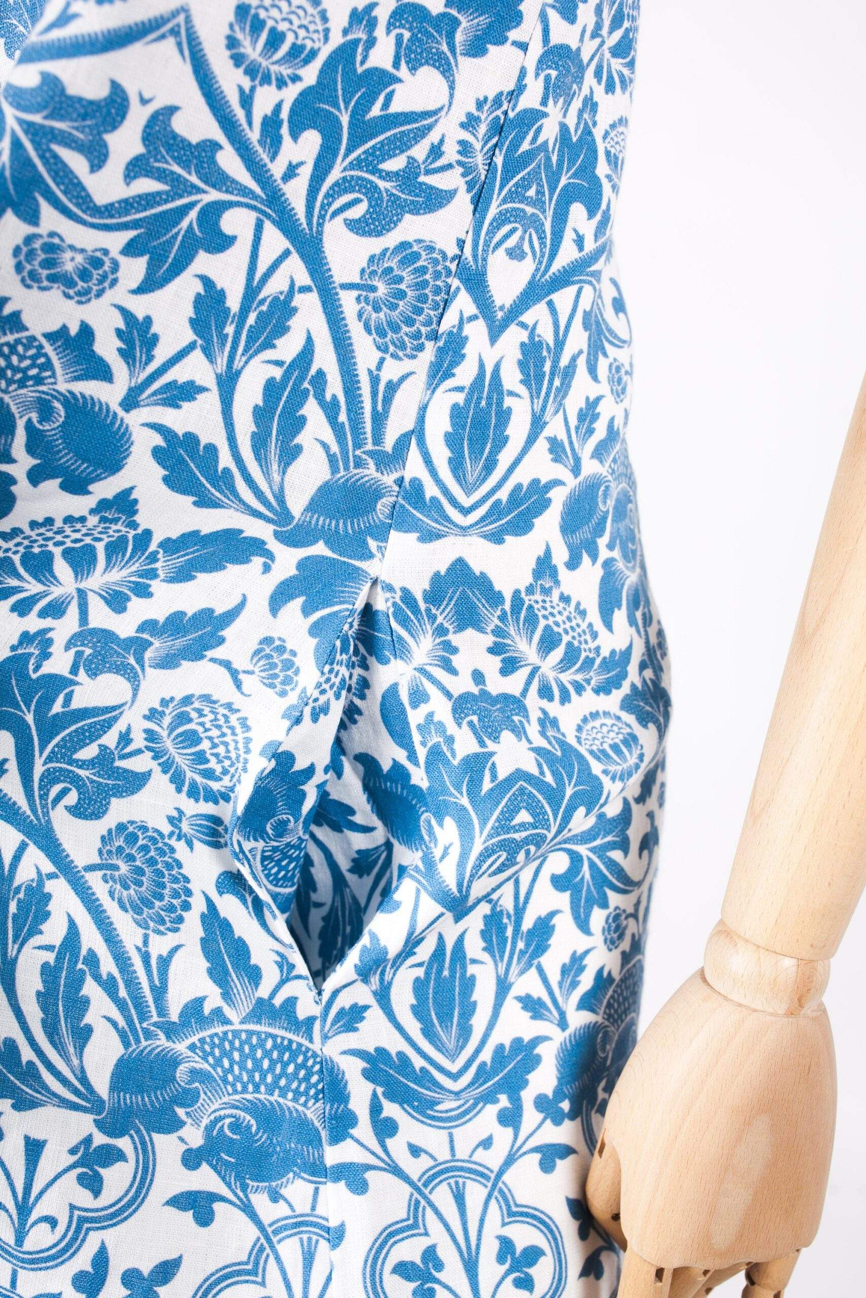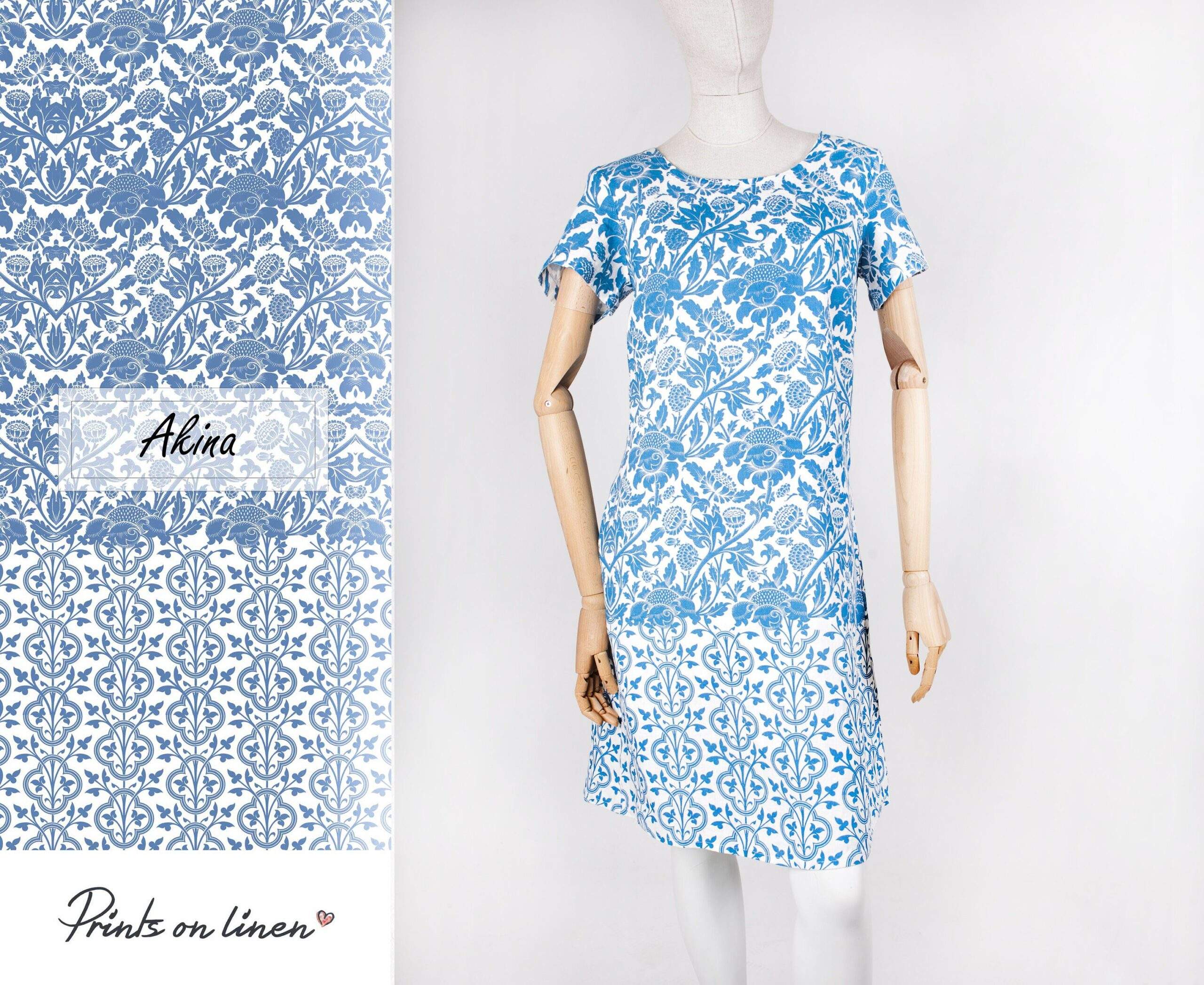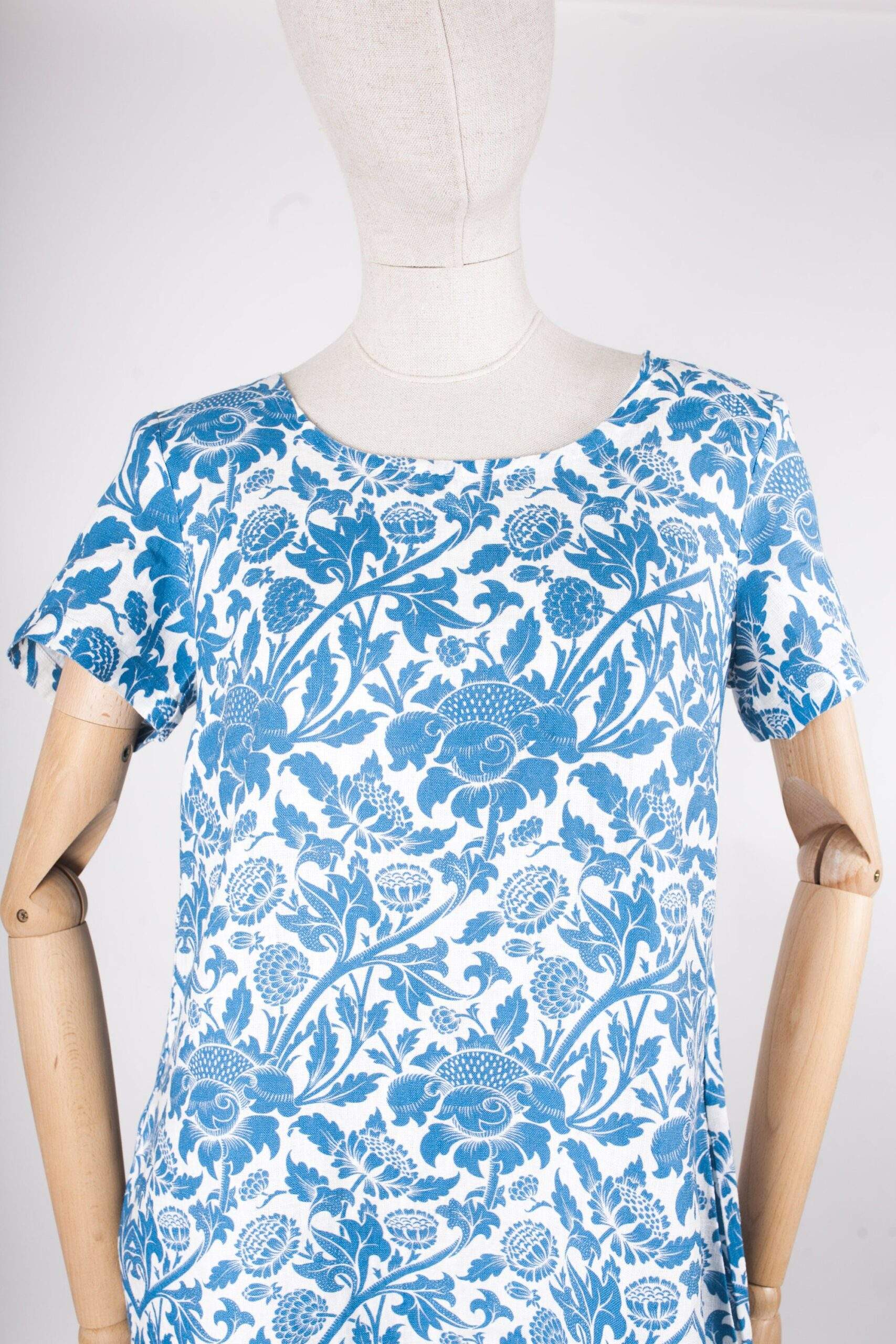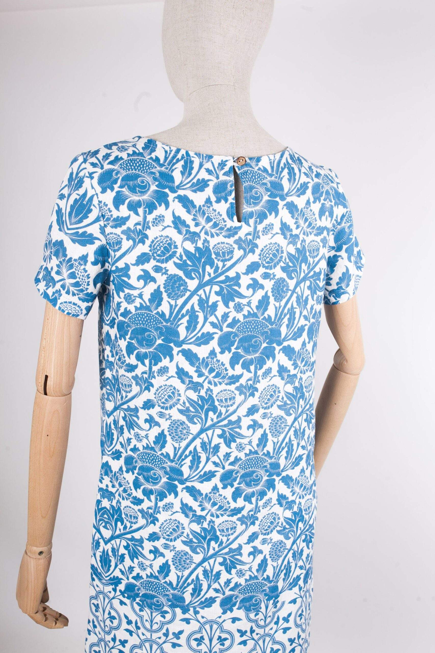 Linen dress William Morris “Akina”. Short sleeve linen women dress with side pockets. Hand made in Lithuania. Made to order.