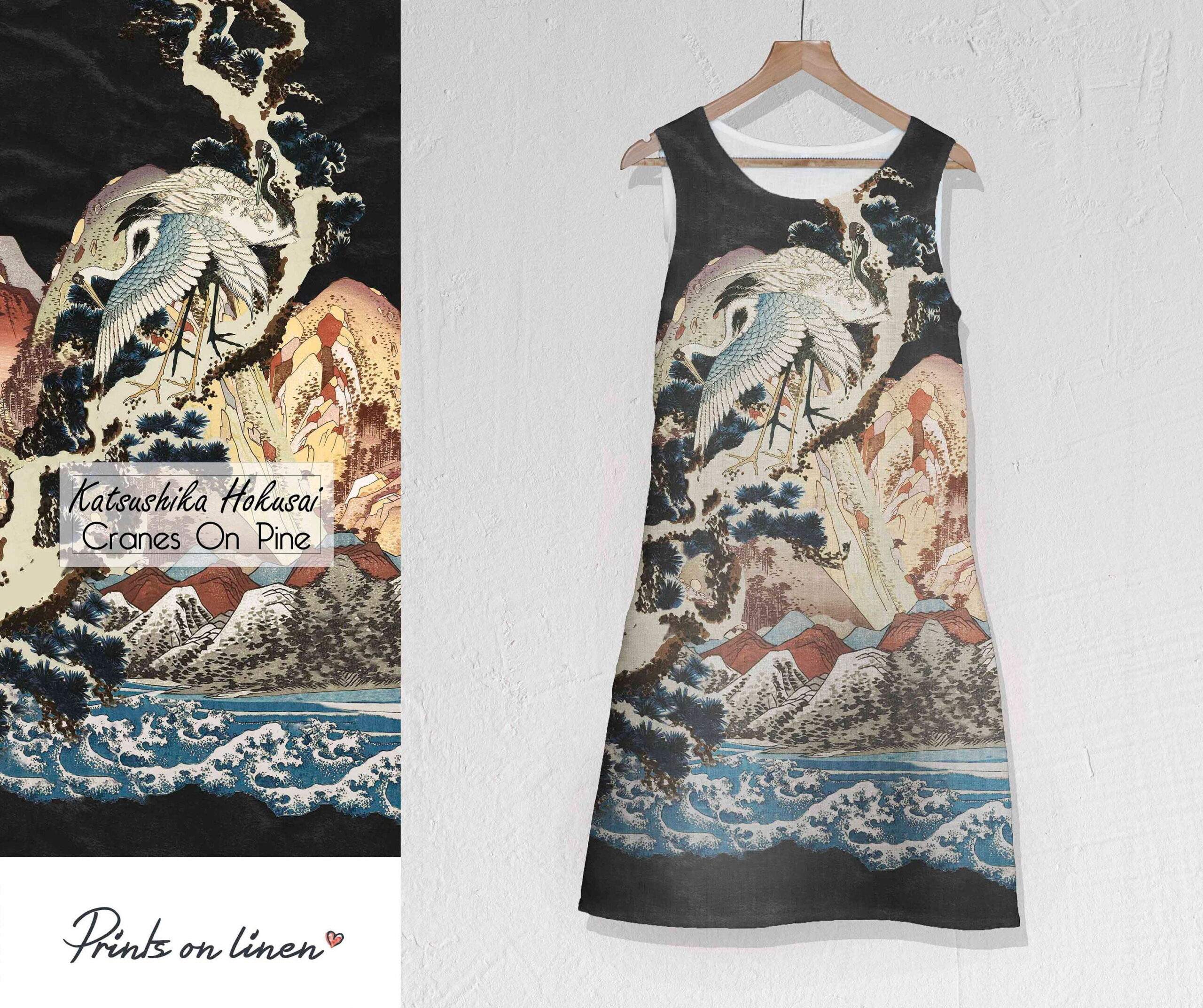 Linen dress “Cranes”. Sleeveless linen summer dress, with pockets.