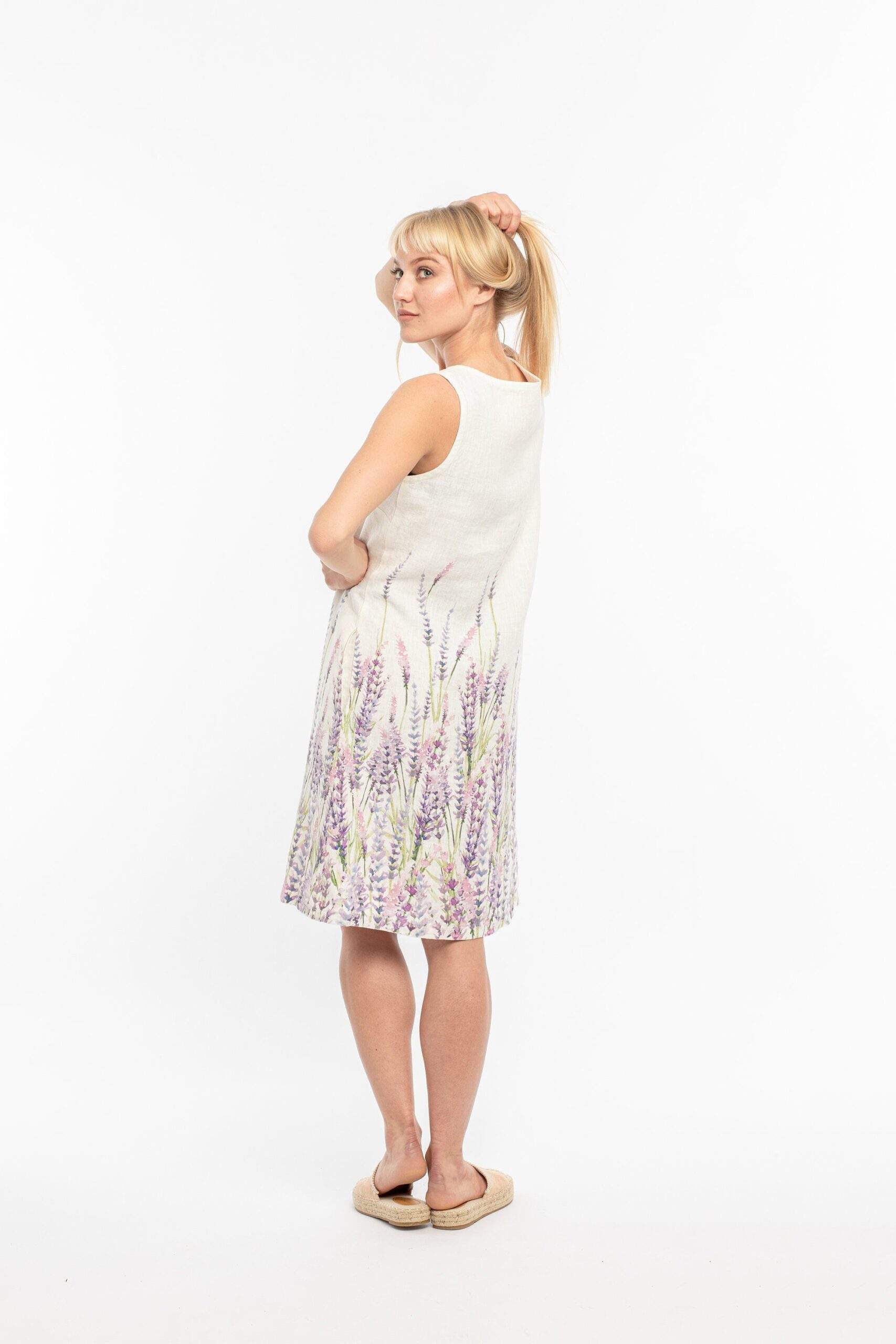 Linen woman’s dress from collection Lavenders (print is on the both dress sides). We have two designs with short sleeves or sleeveless tunic style dress.*Printed on white linen with natural dye. *This dress have two deep pockets.