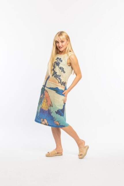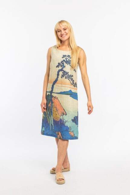 Linen dress, Hokusai, Lake Suwa, Summer dress, Katsushika Hokusai, short sleeves dress, vintage dress, wabi sabi dress, wabi sabi, PR0229