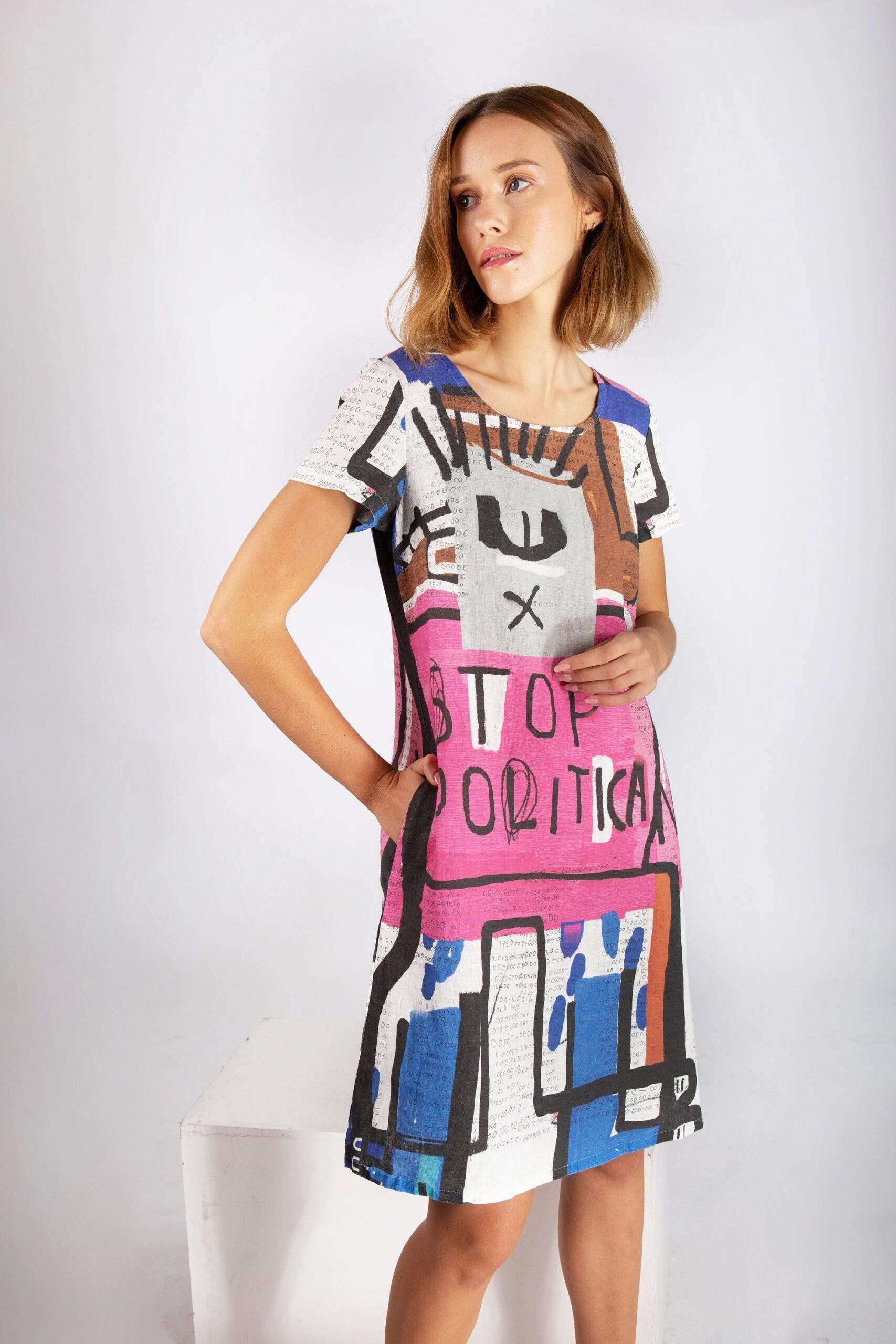 Linen dress, graffiti, street wear, urban dress, skater dress, linen women dress, 100% linen, custom size, wholesale dress, PR0224 85,00 €