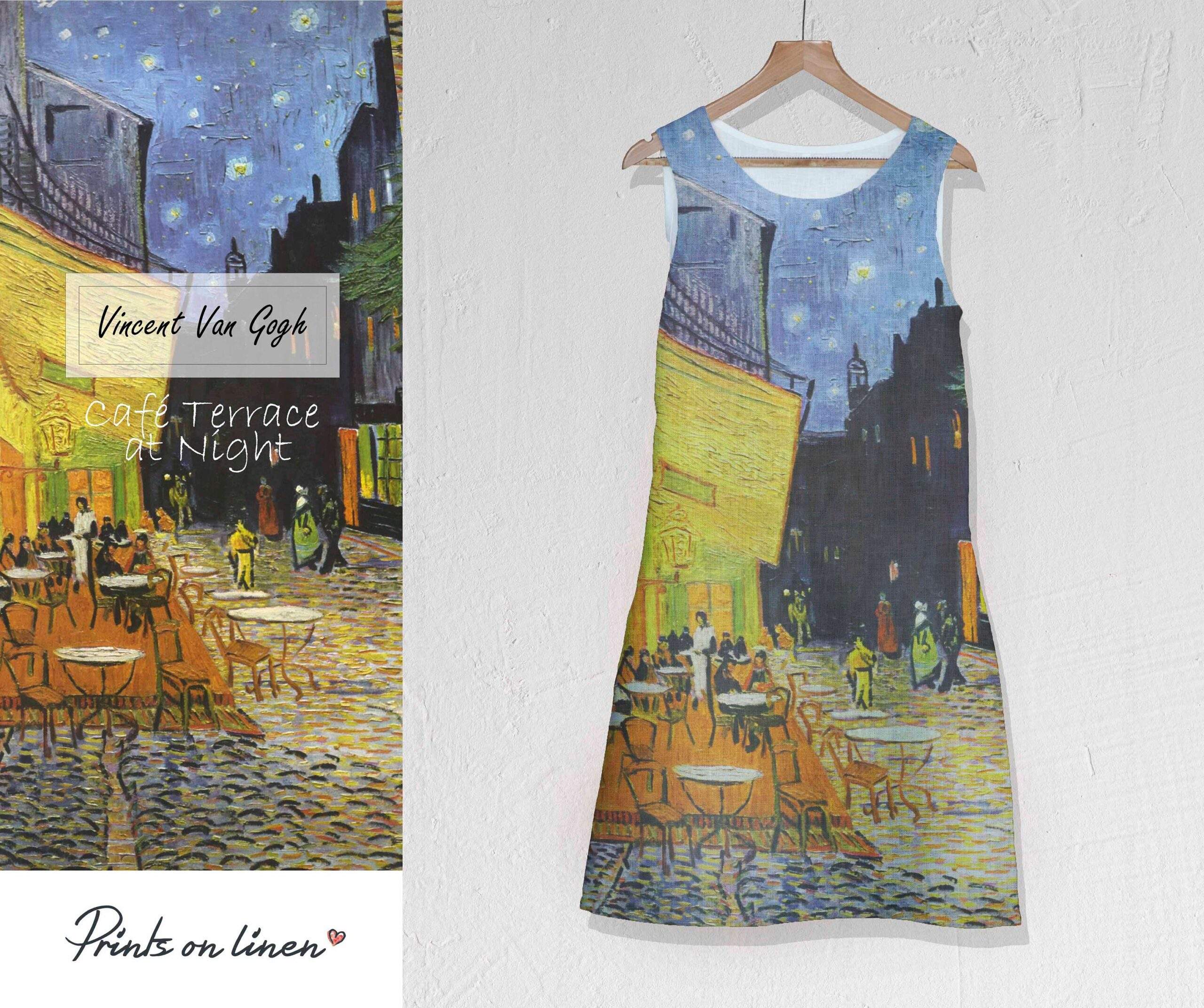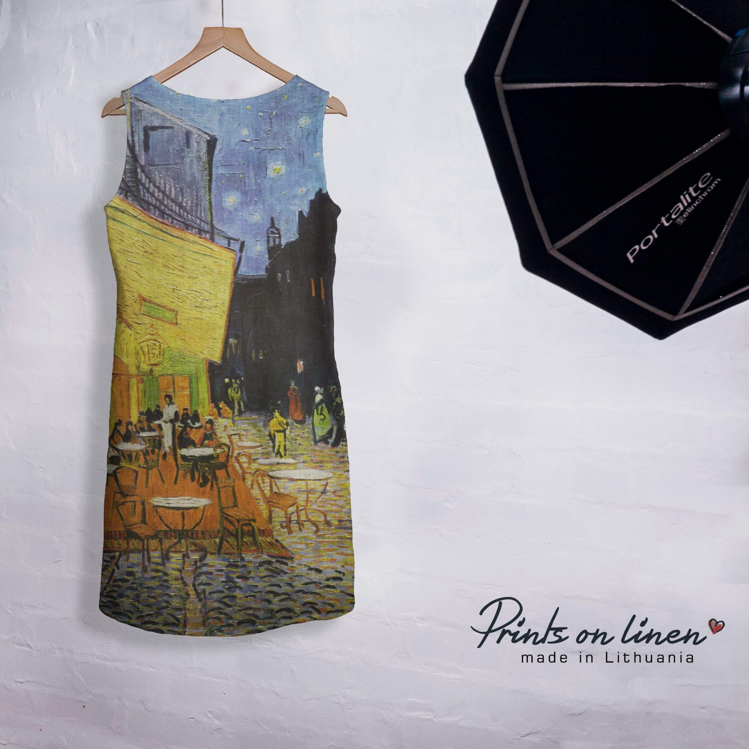 Linen dress Van Gogh “Cafe terrace at Night”. Unique idea for festival dress or party dress.