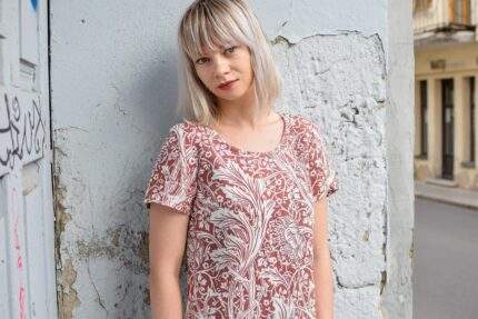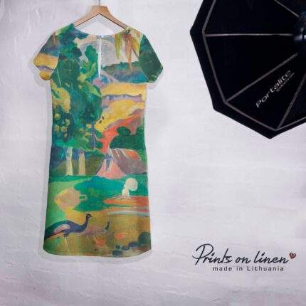 Short sleeves linen women dress Wassily Kandinsky artwork “Color study”