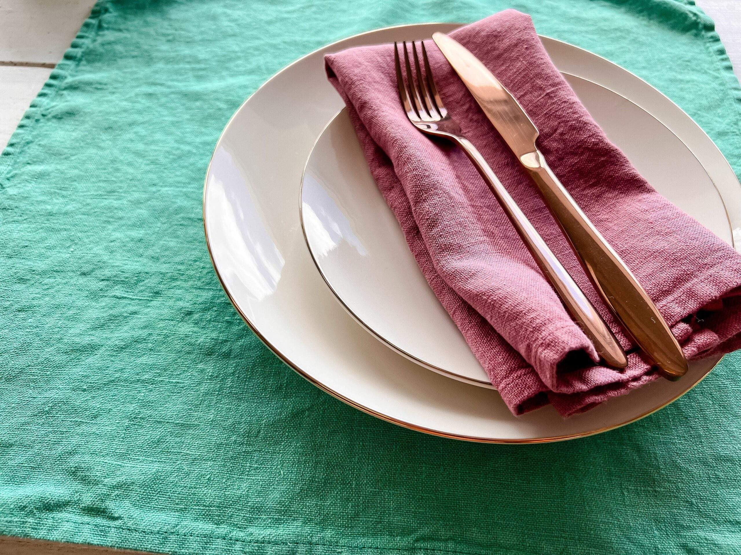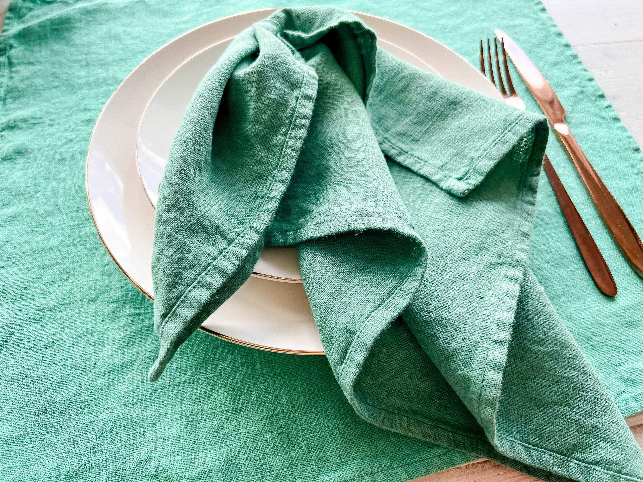 Napkins set made of 100 % linen fabric. Three colours available: Mint, Rose and Santorini blue.