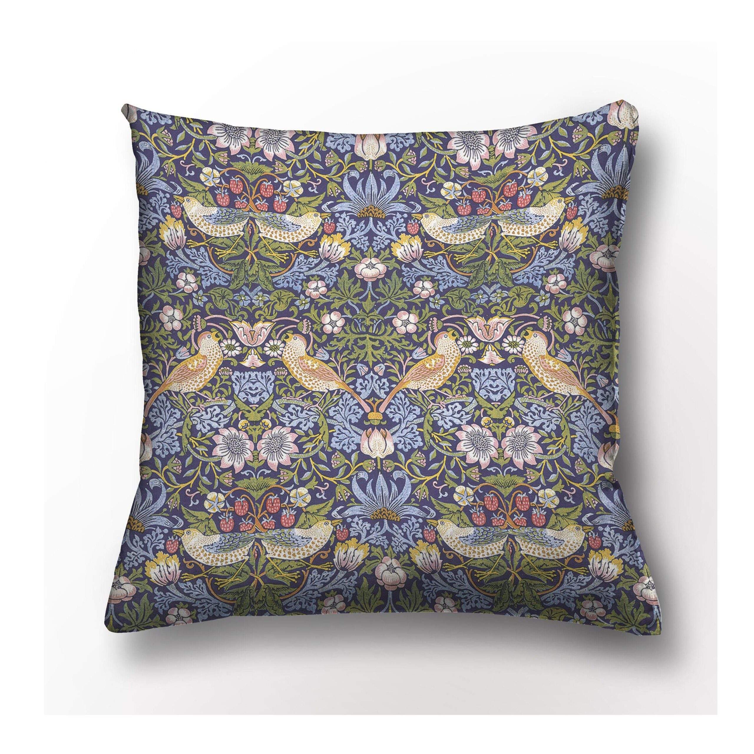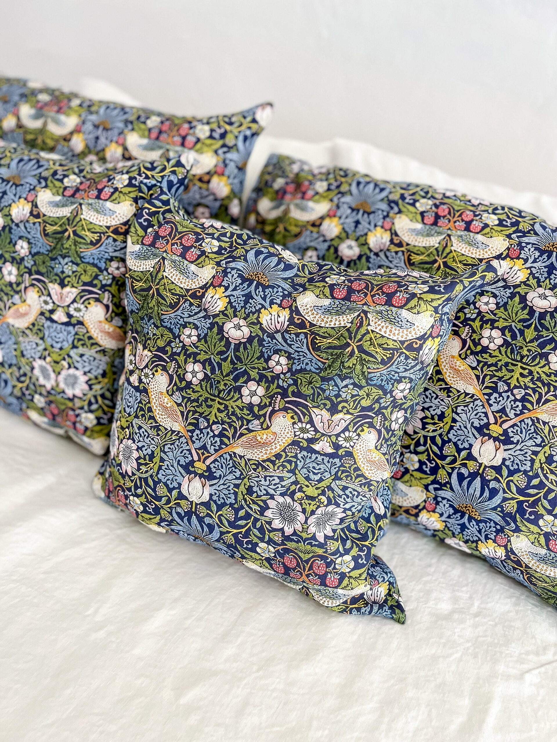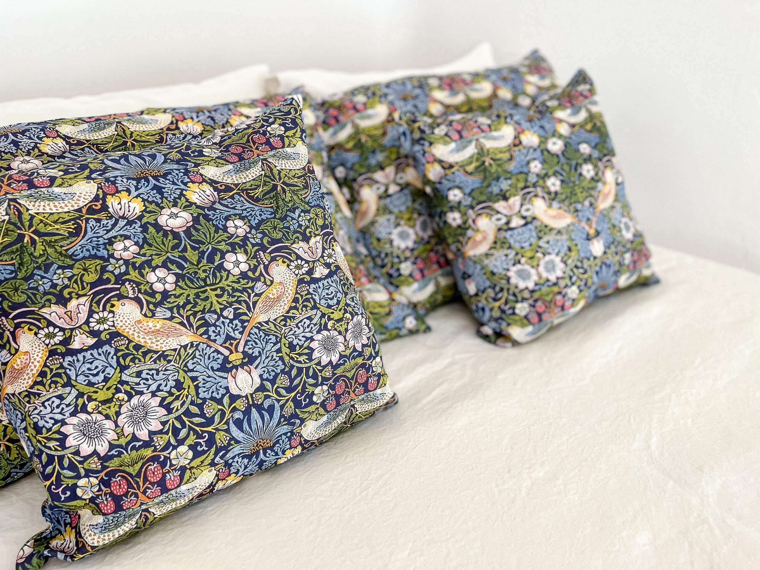 Linen pillow cover “Strawberry Thief” by William Morris.