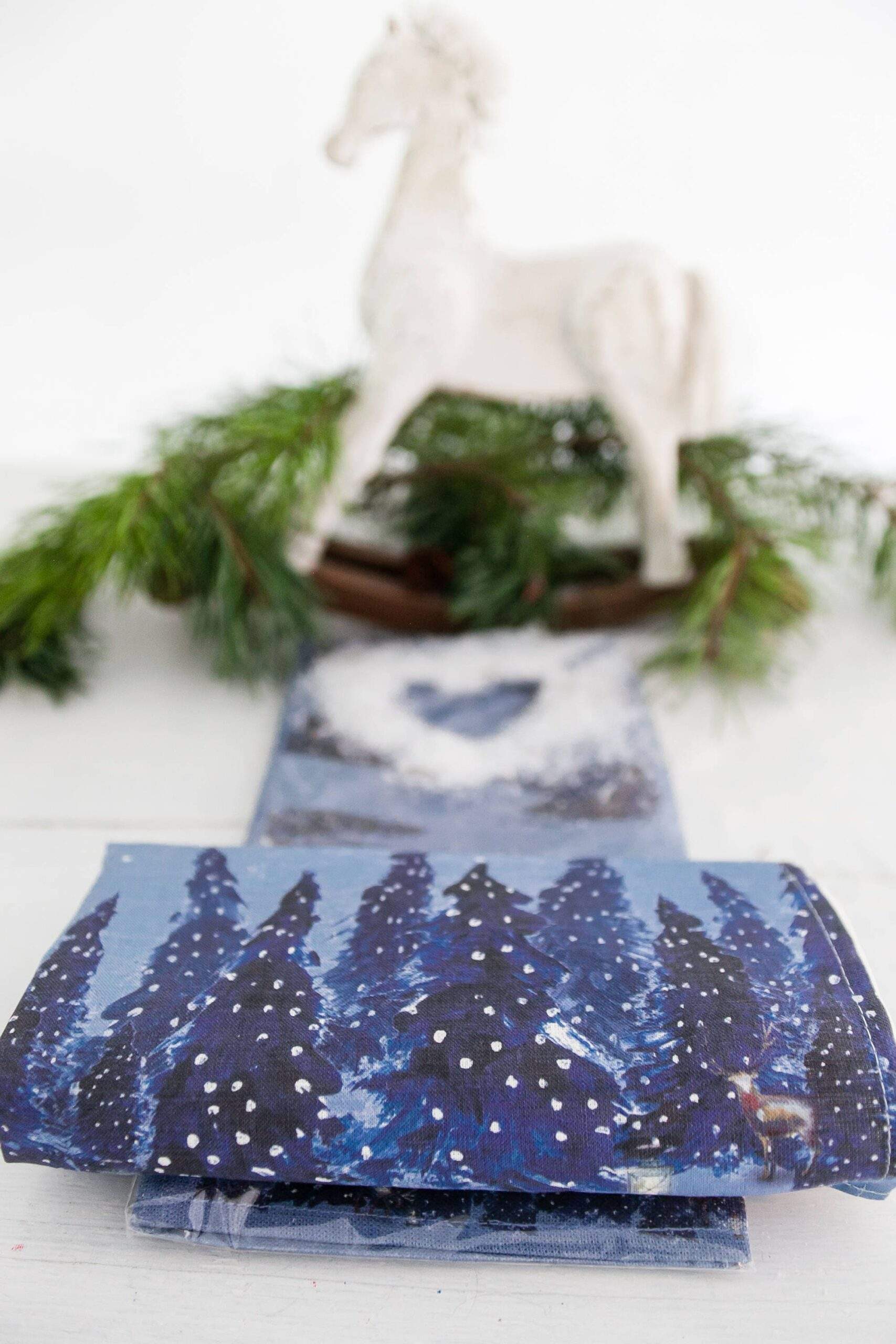 Placemats set (four or six units in one set) from “Winter’s night” collection, printed on natural white linen fabric.
