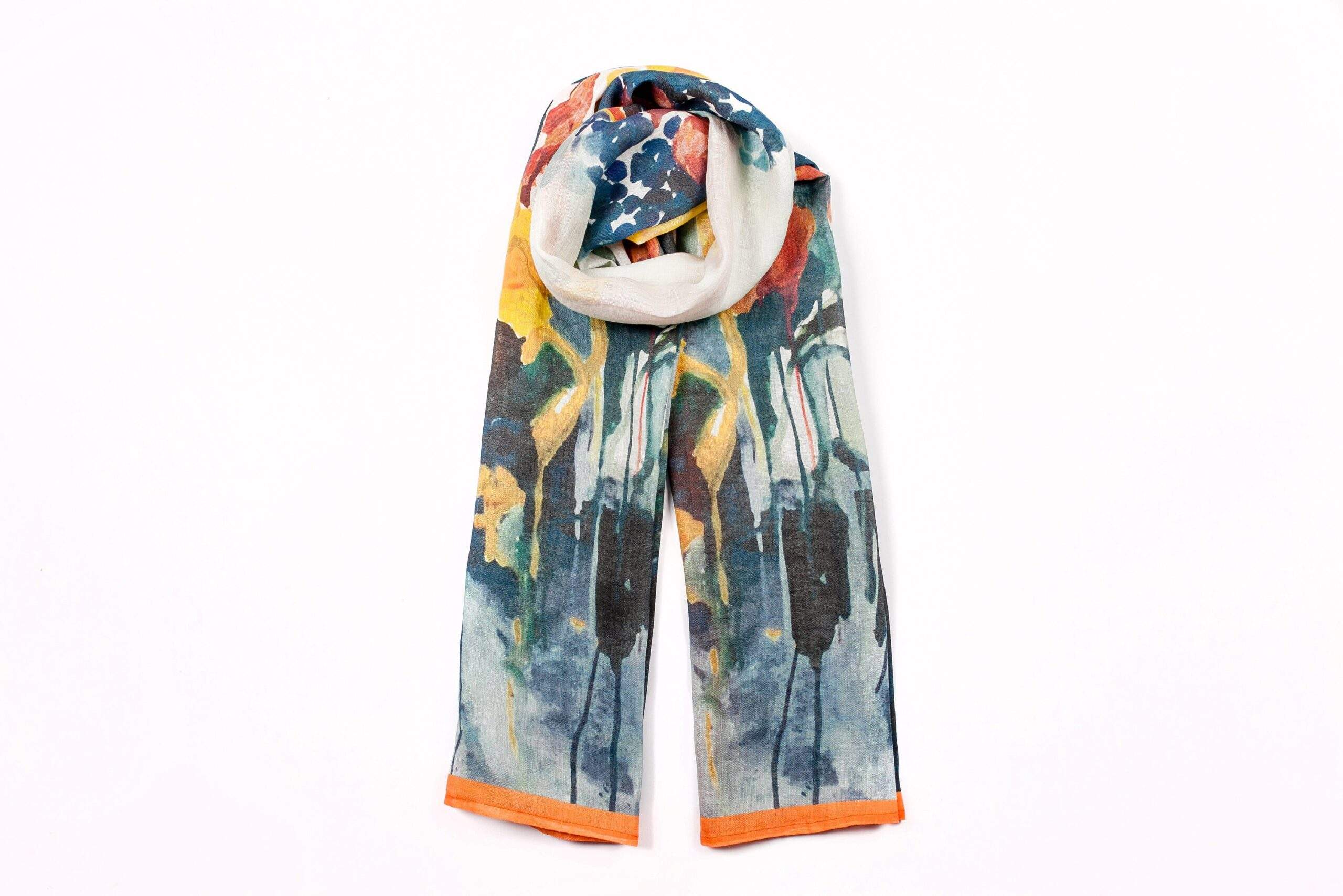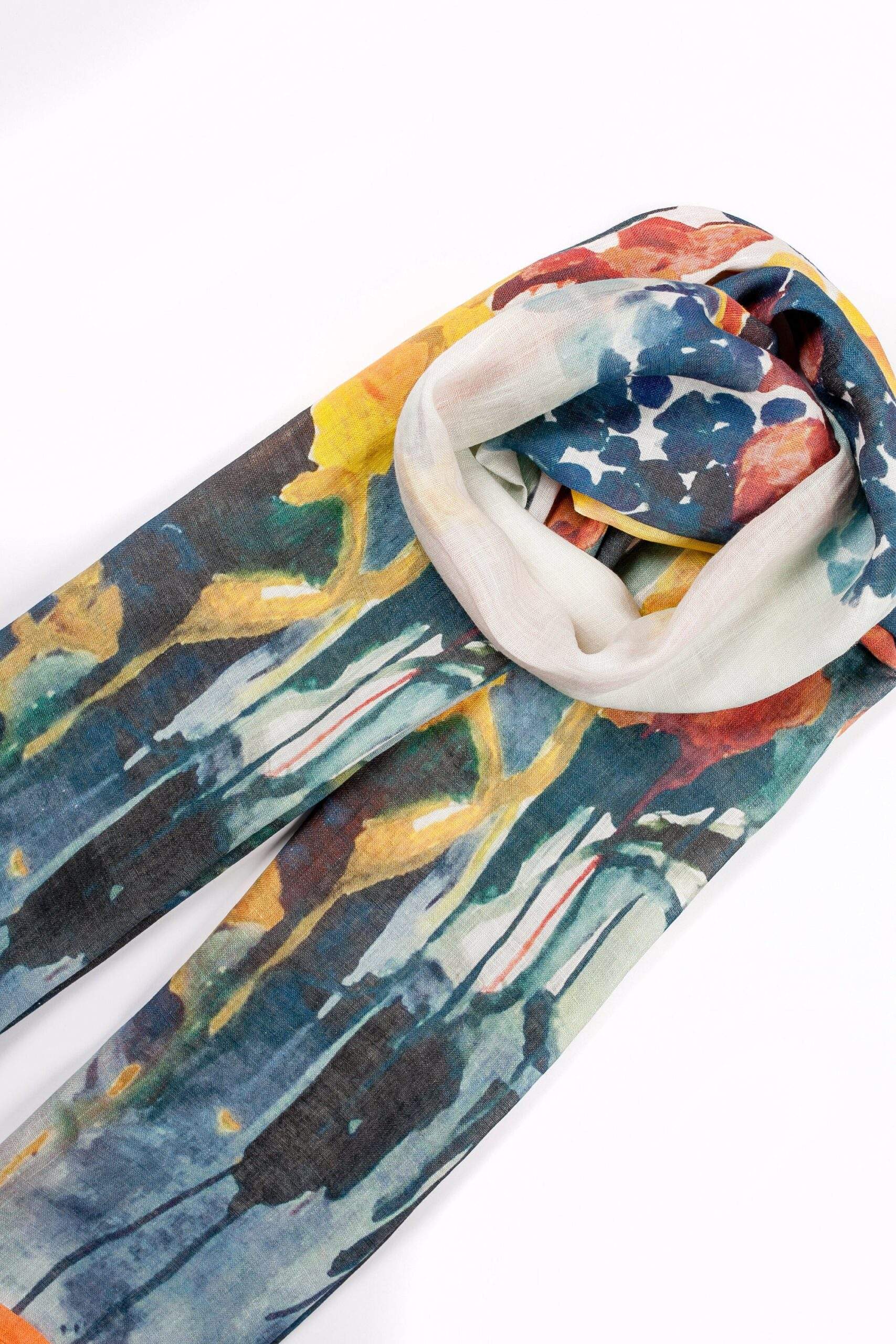 Linen scarf “Fusing Irises”, artist – Živilė Aleknavičiūtė.