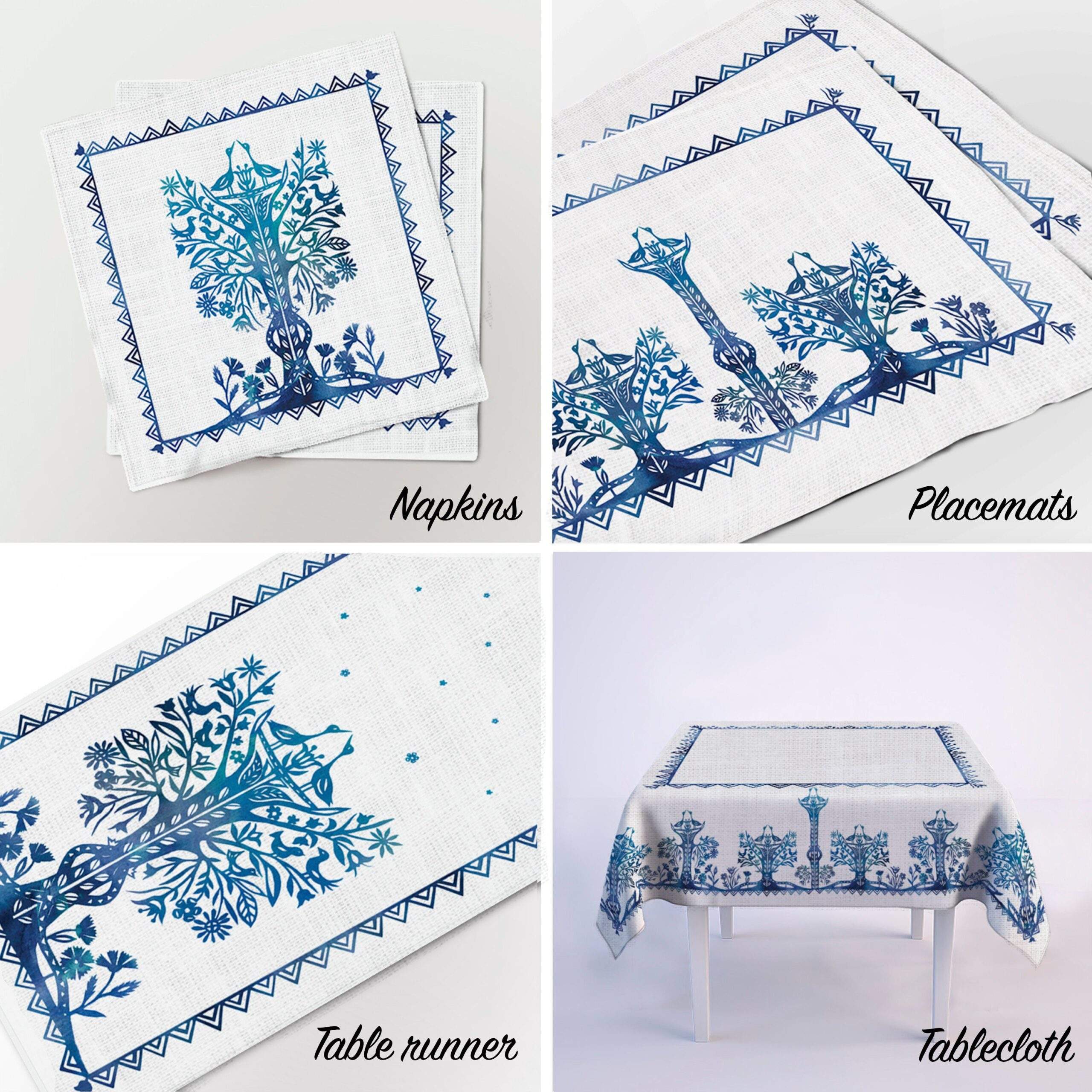 100% natural linen tablecloth from collection “Ethnic paper cuts”. This tablecloth can be order with matching pattern linen table runners, placemats or napkins sets.