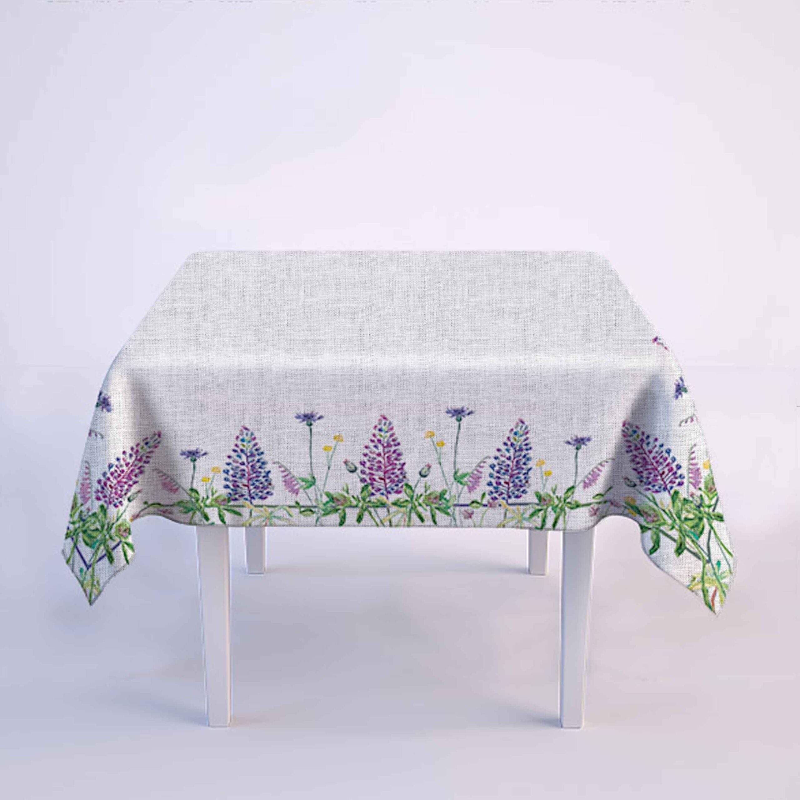 Linen tablecloth, farmhouse decor, lupines, rectangle tablecloth, PR0873