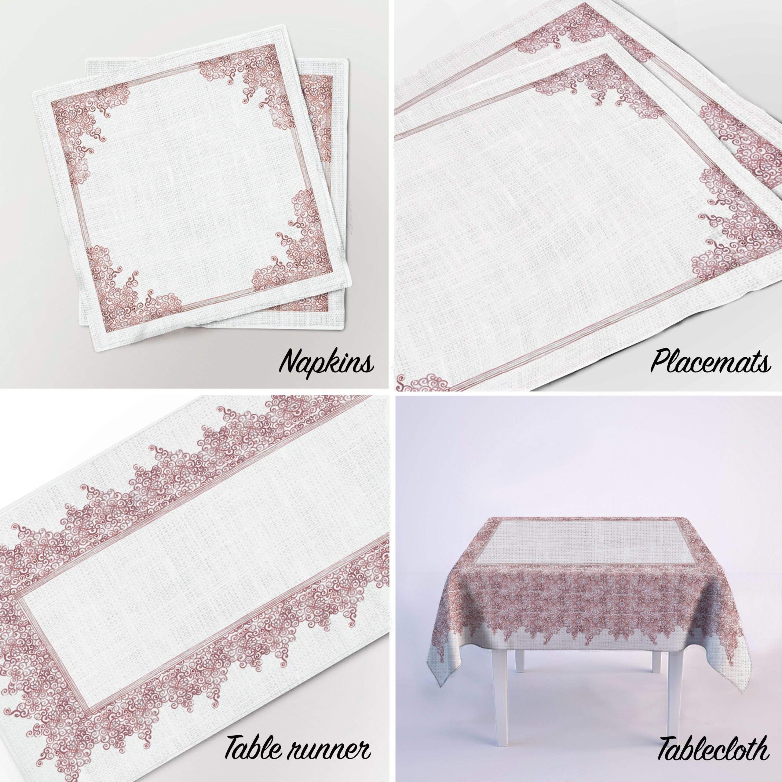 This tablecloth can be order with matching pattern linen table runners, placemats or napkins sets.
