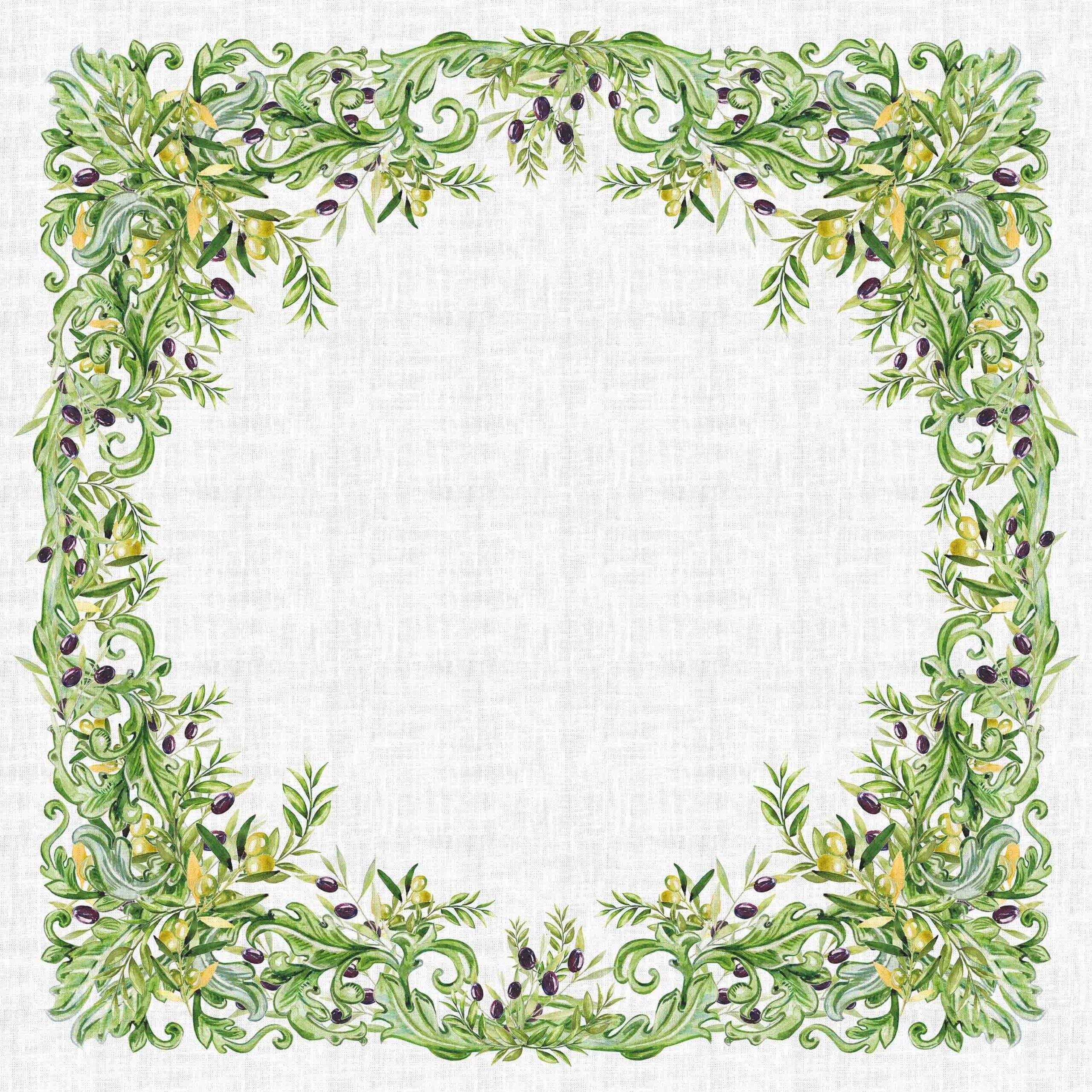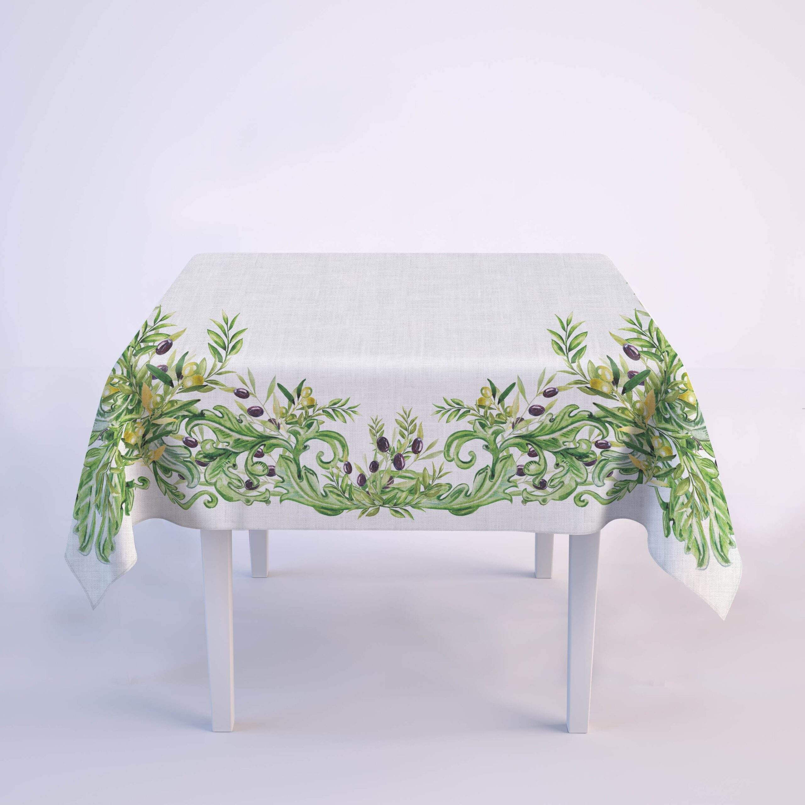 Linen tablecloth, olives pattern from collection “Kalamata”.