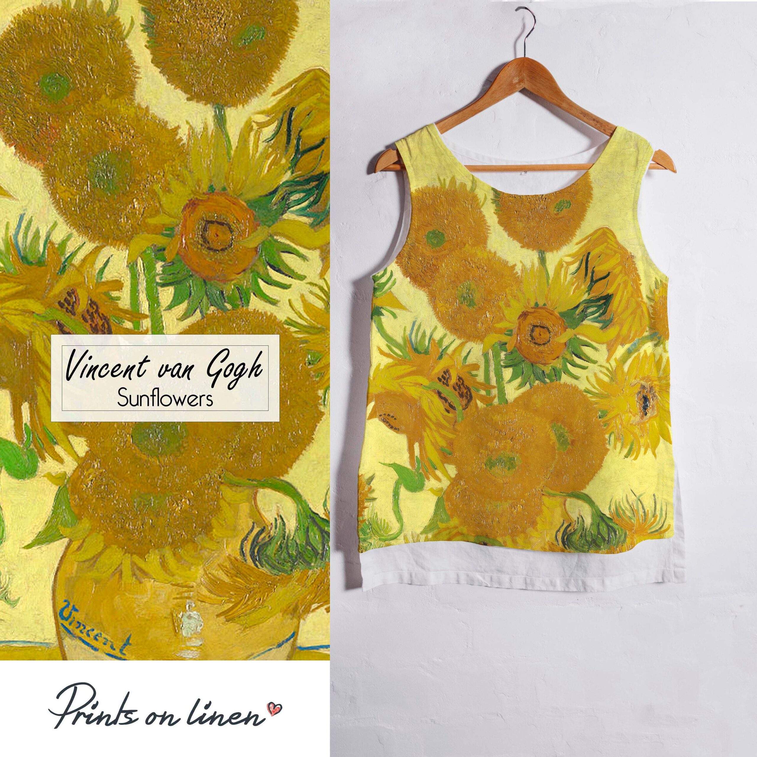 Linen top, Vincent van Gogh, Sunflowers, women blouse, linen shirt, tank top, 100% linen, PR0984