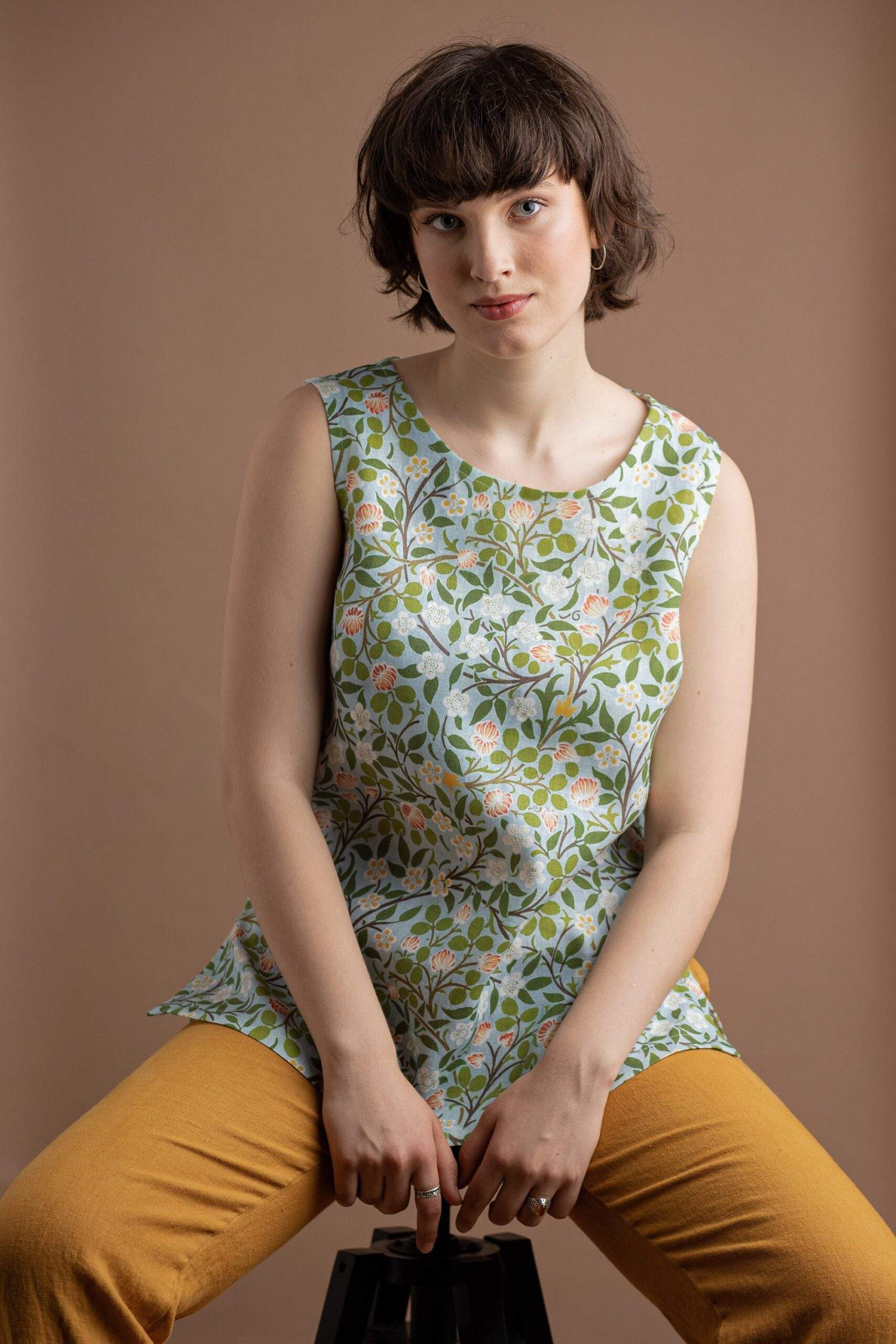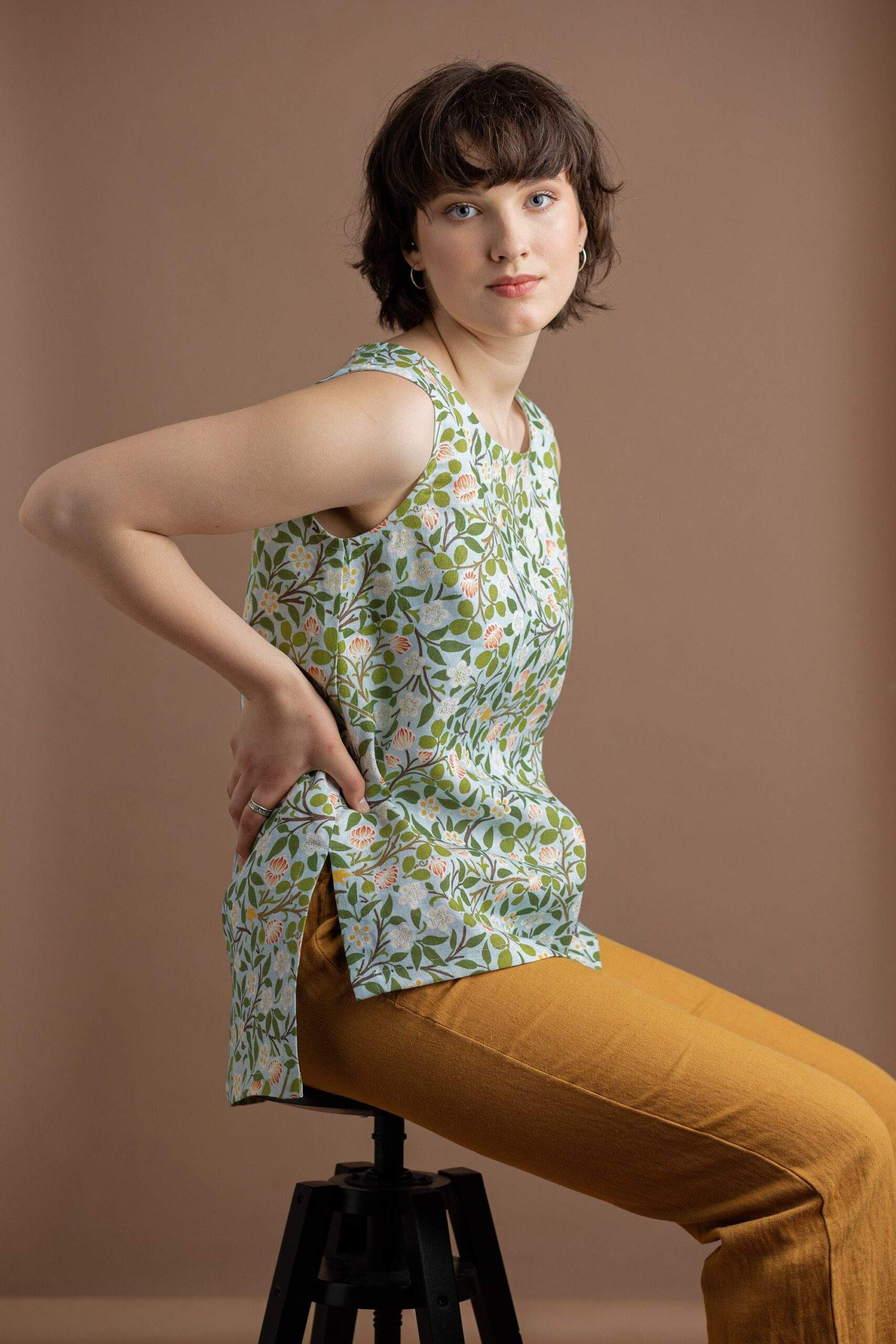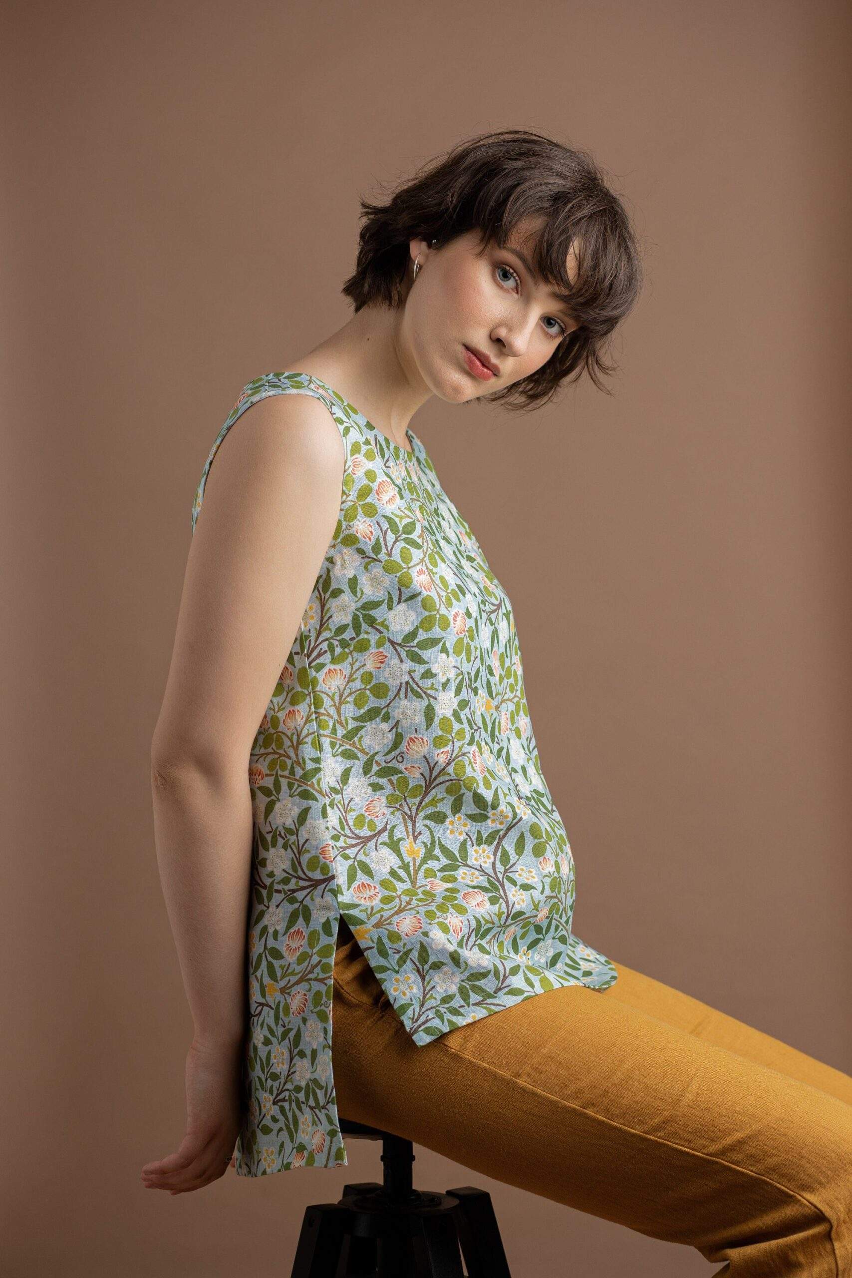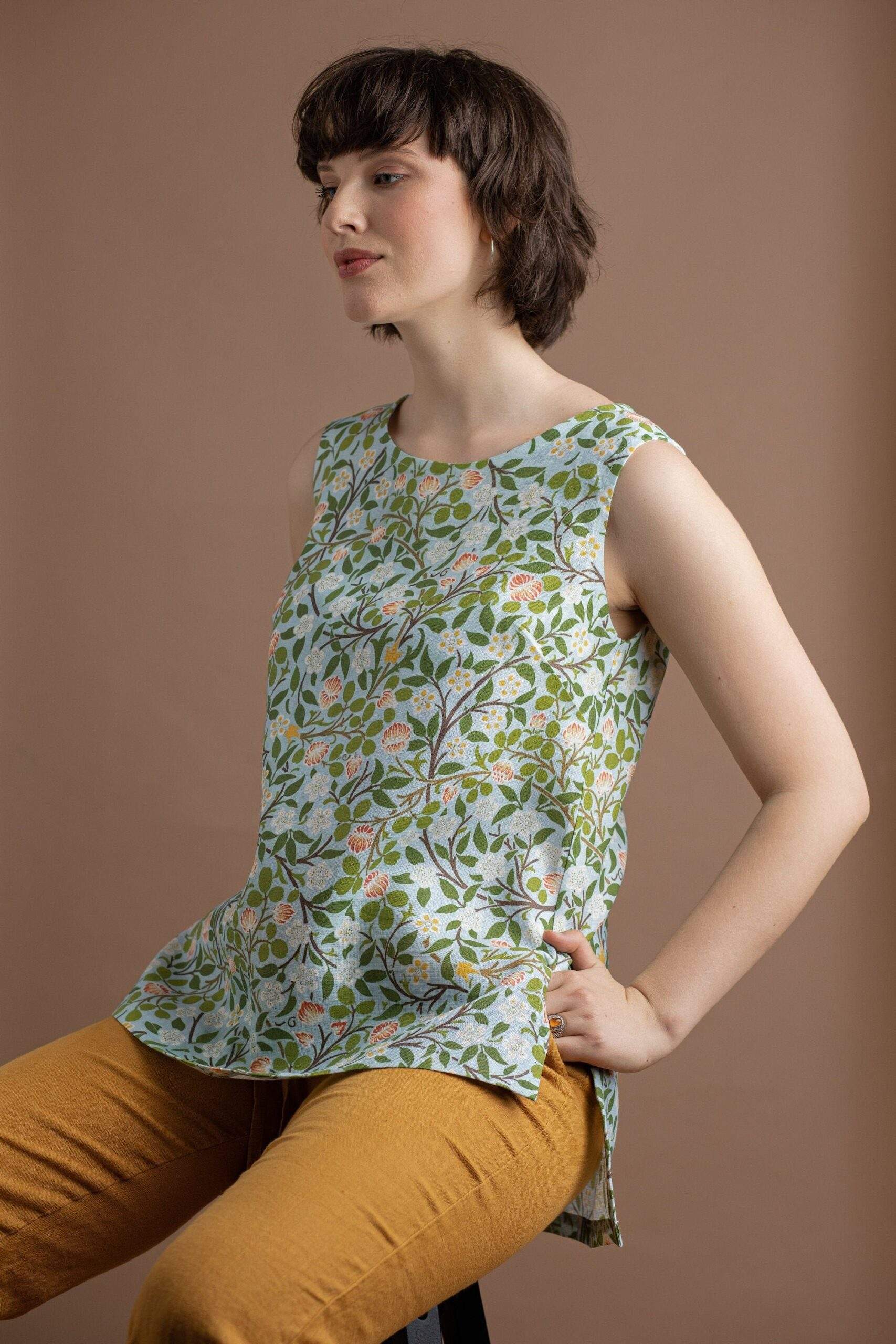 Linen top, William Morris, Clover 1955, women blouse, linen shirt, tank top, 100% linen, blouse, PR1062