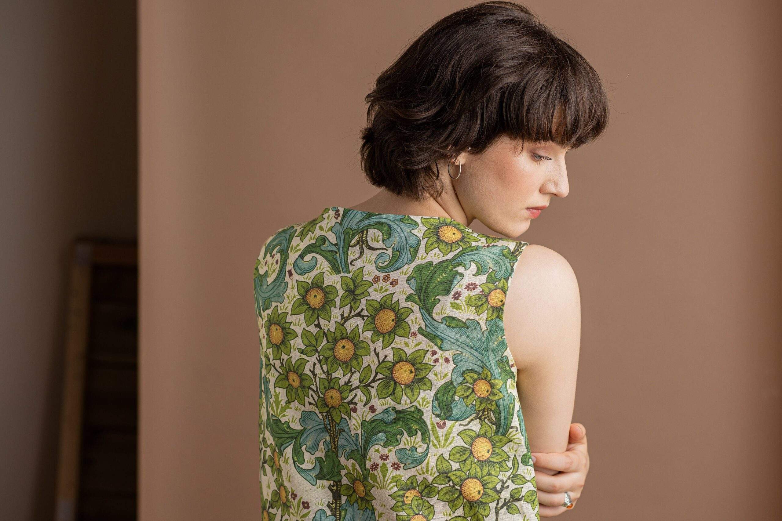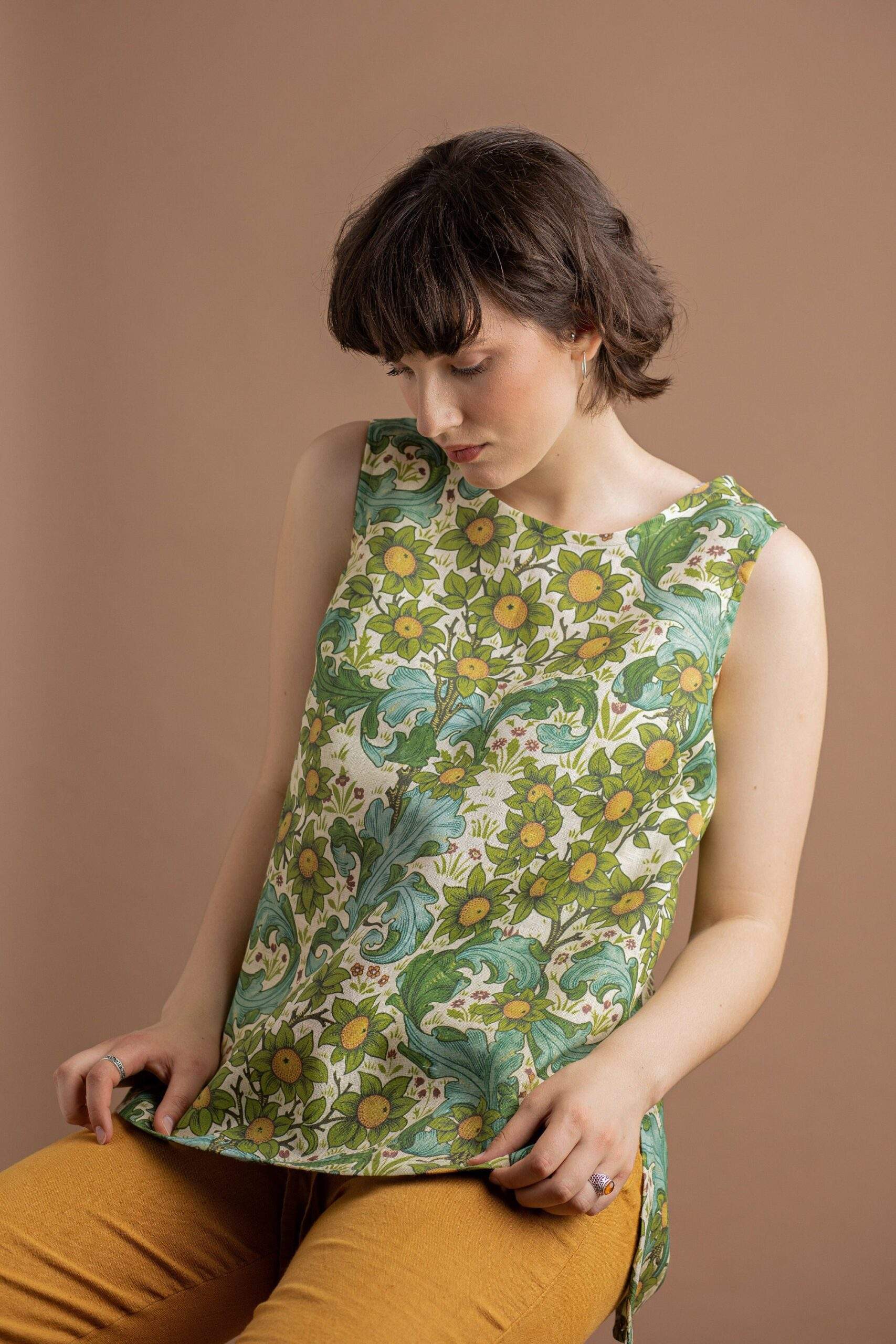 Linen top, William Morris, Orchard, women blouse, linen shirt, tank top, 100% linen, blouse, PR0406