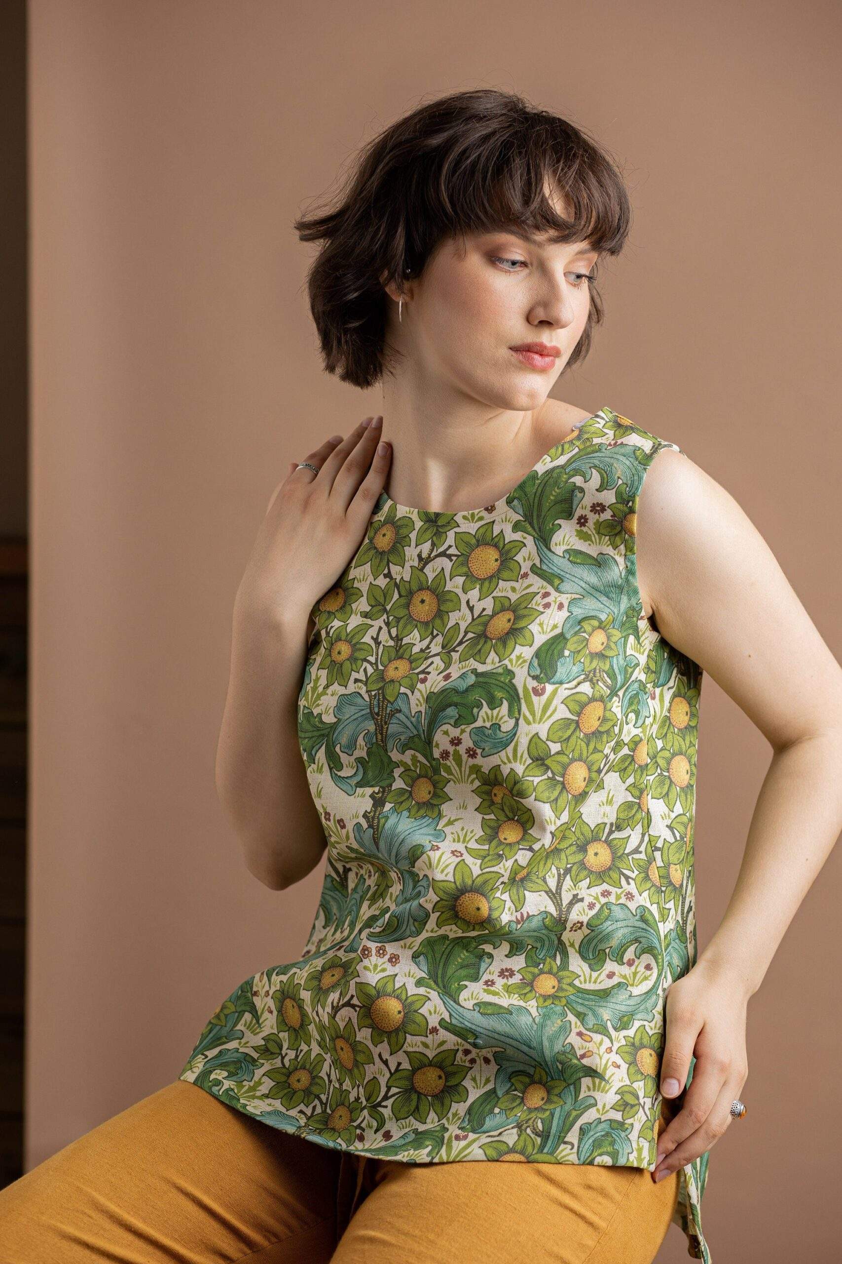 Linen top, William Morris, Garden, women blouse, linen shirt, tank top, 100% linen, sleeveless shirt, custom size shirt, holiday shirt, PR0502