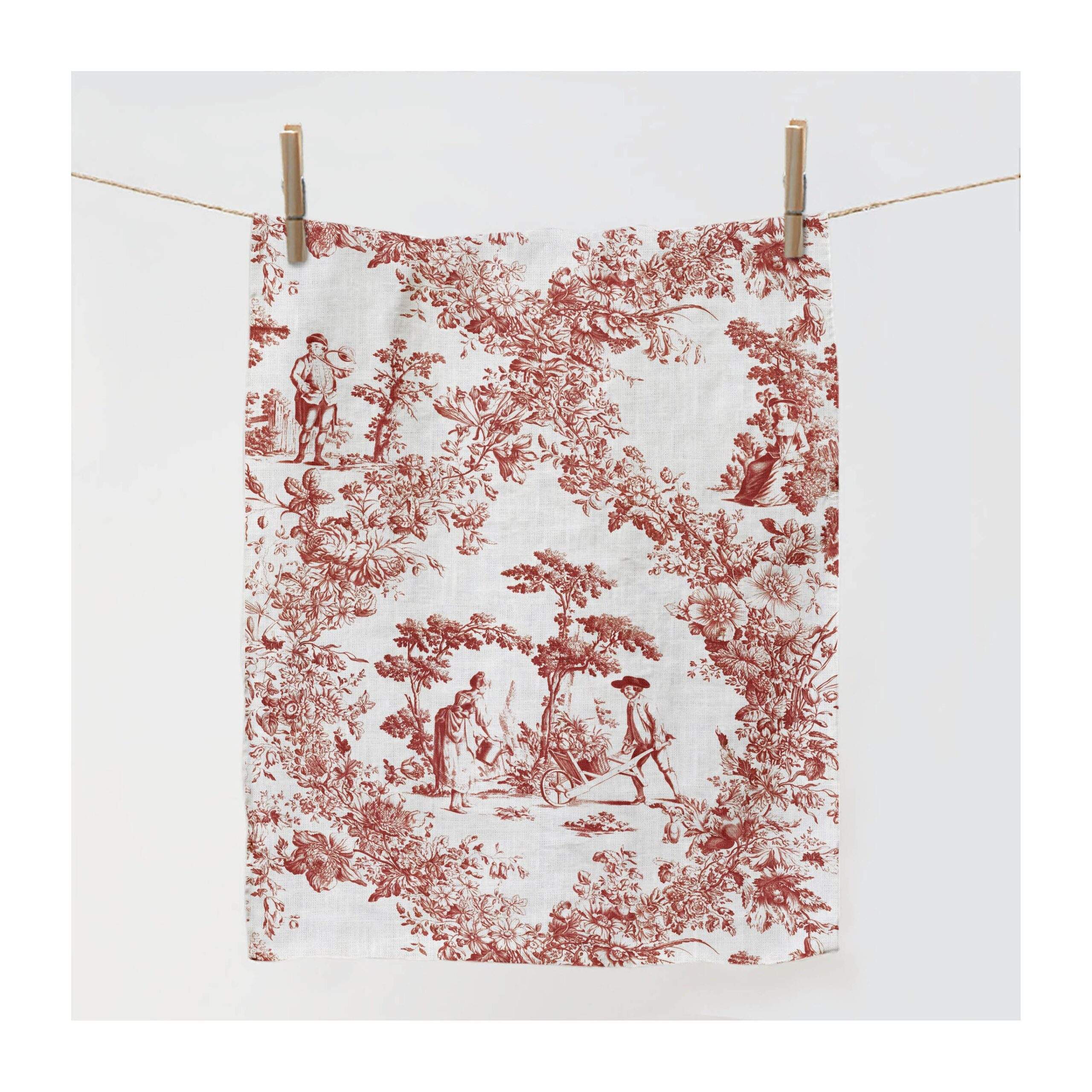Linen towel Bromley Hall 1775. Toile de Jouy collection. Linen kitchen towel with hook. Hand made in Lithuania. Unique kitchen decor, housewarming gift, farmhouse decor.