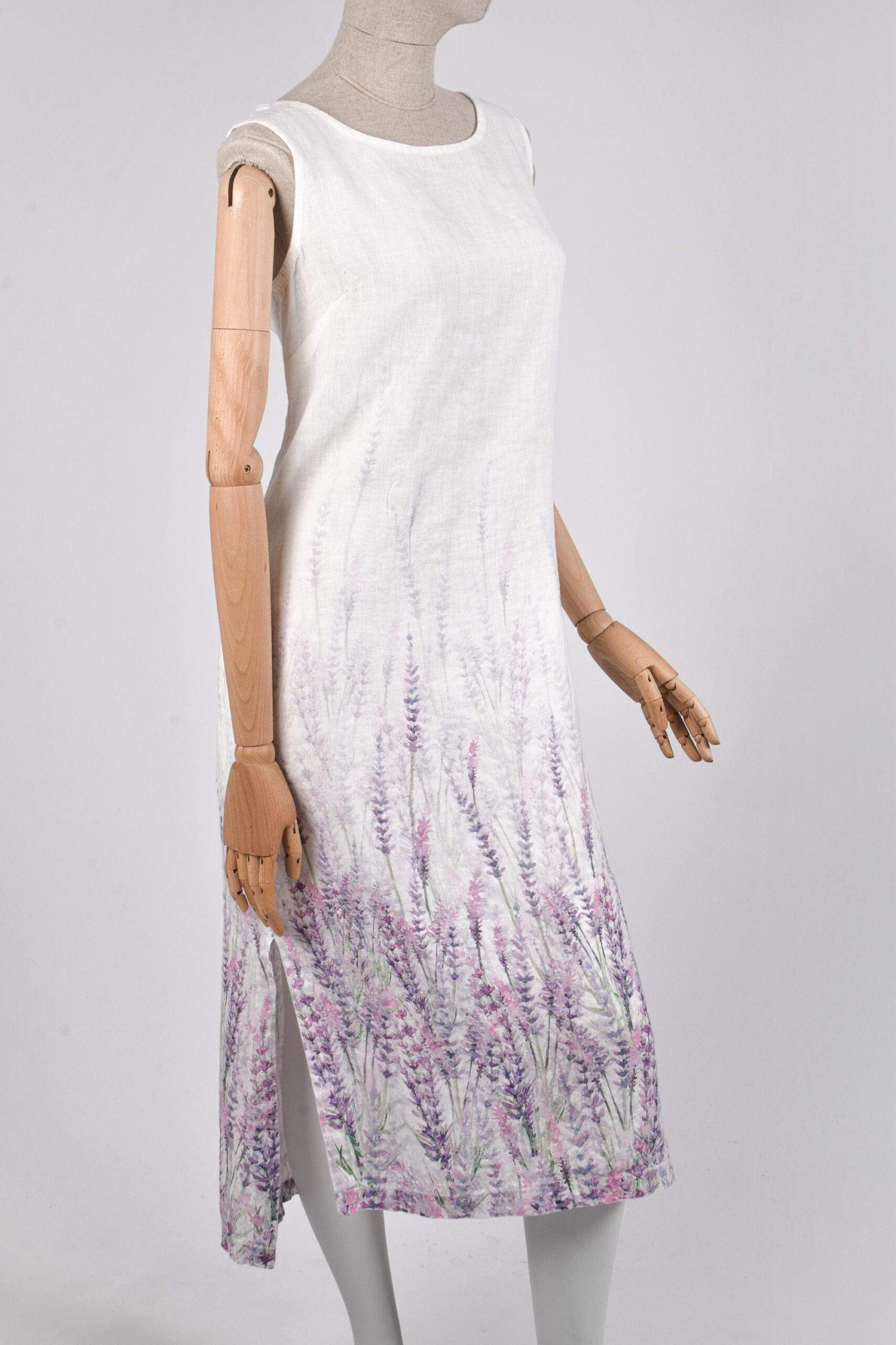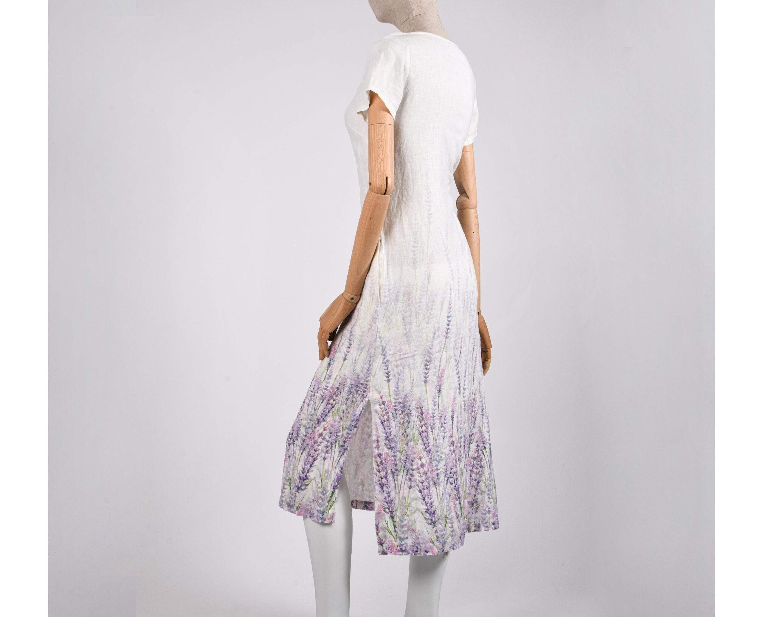 Long linen women dress Lavender. Dress with side splits and asymmetric backside. Linen dress with pockets.