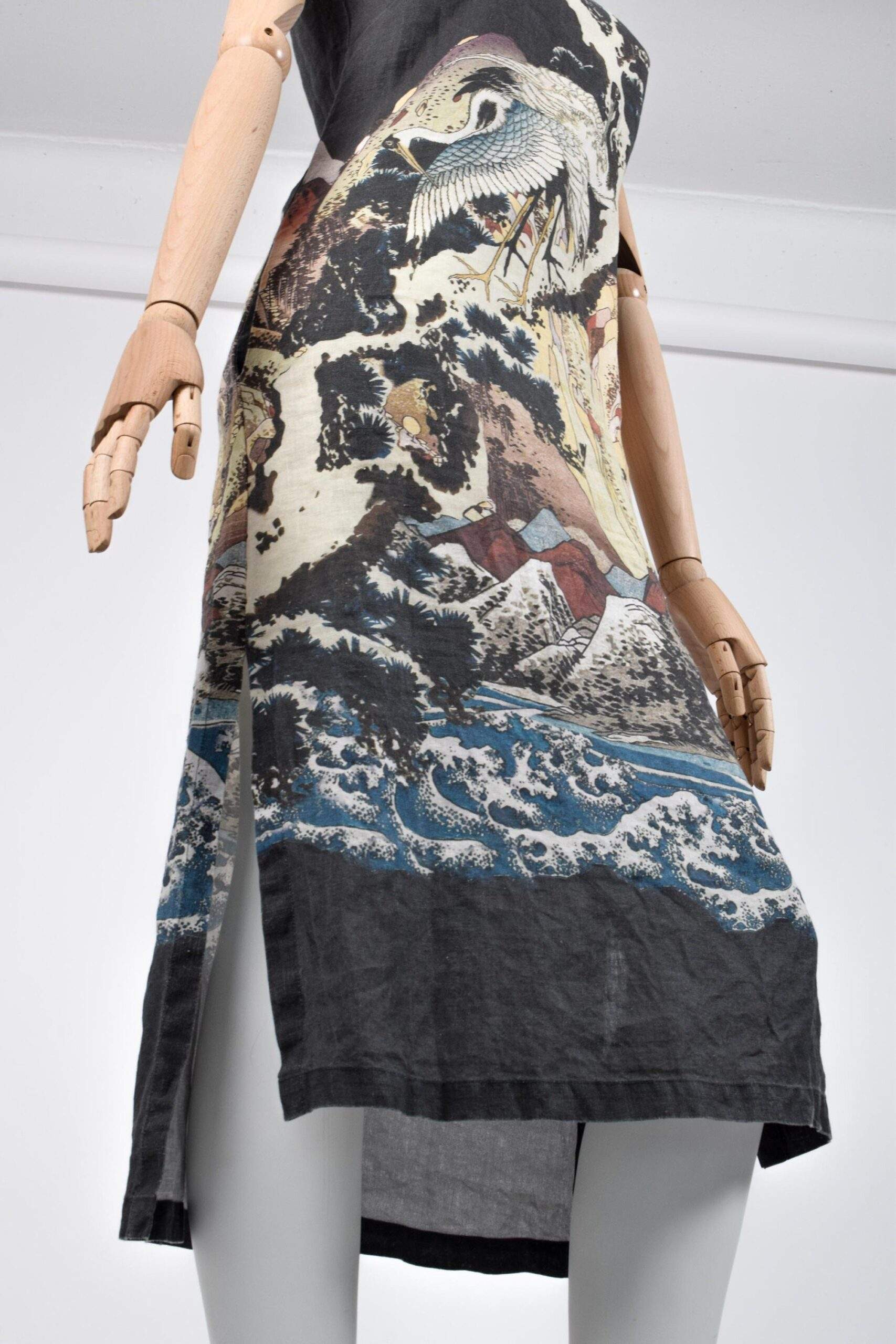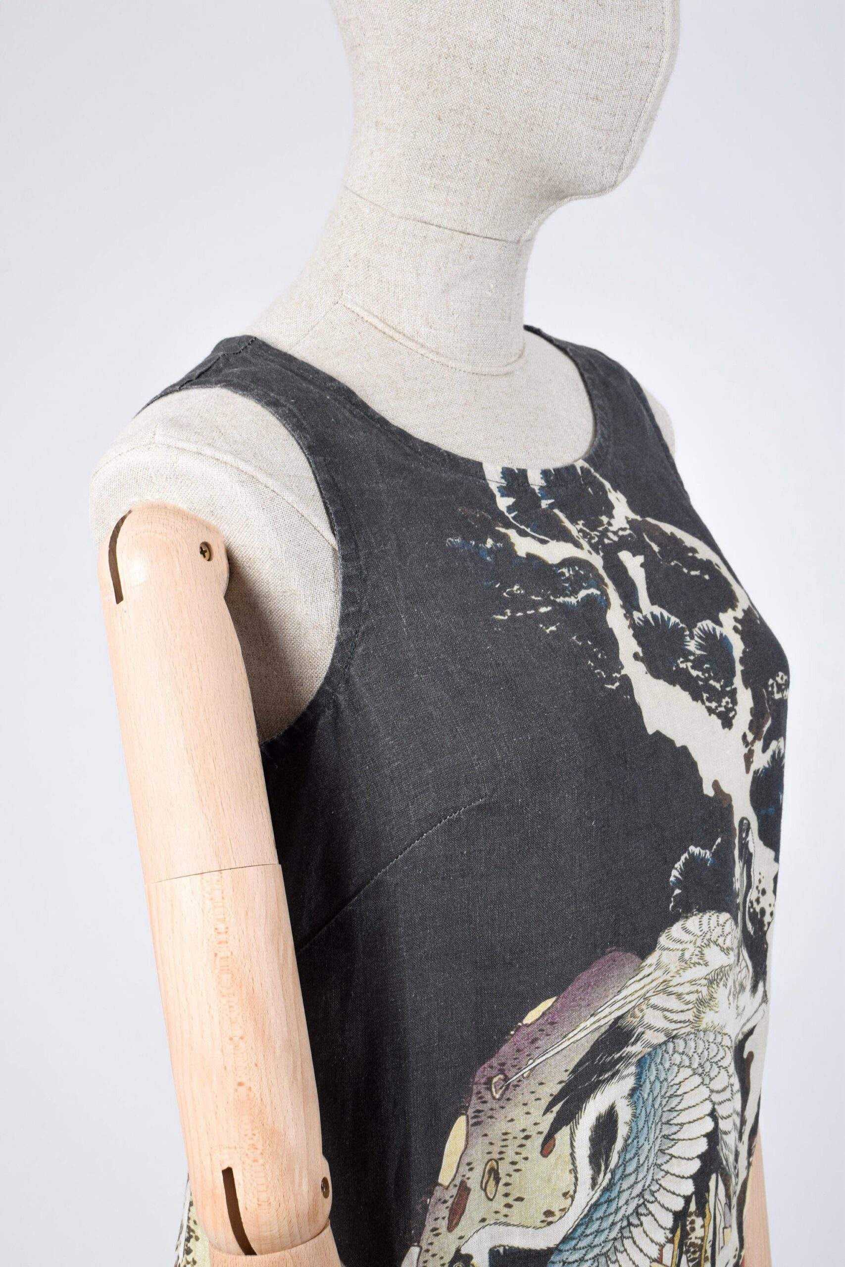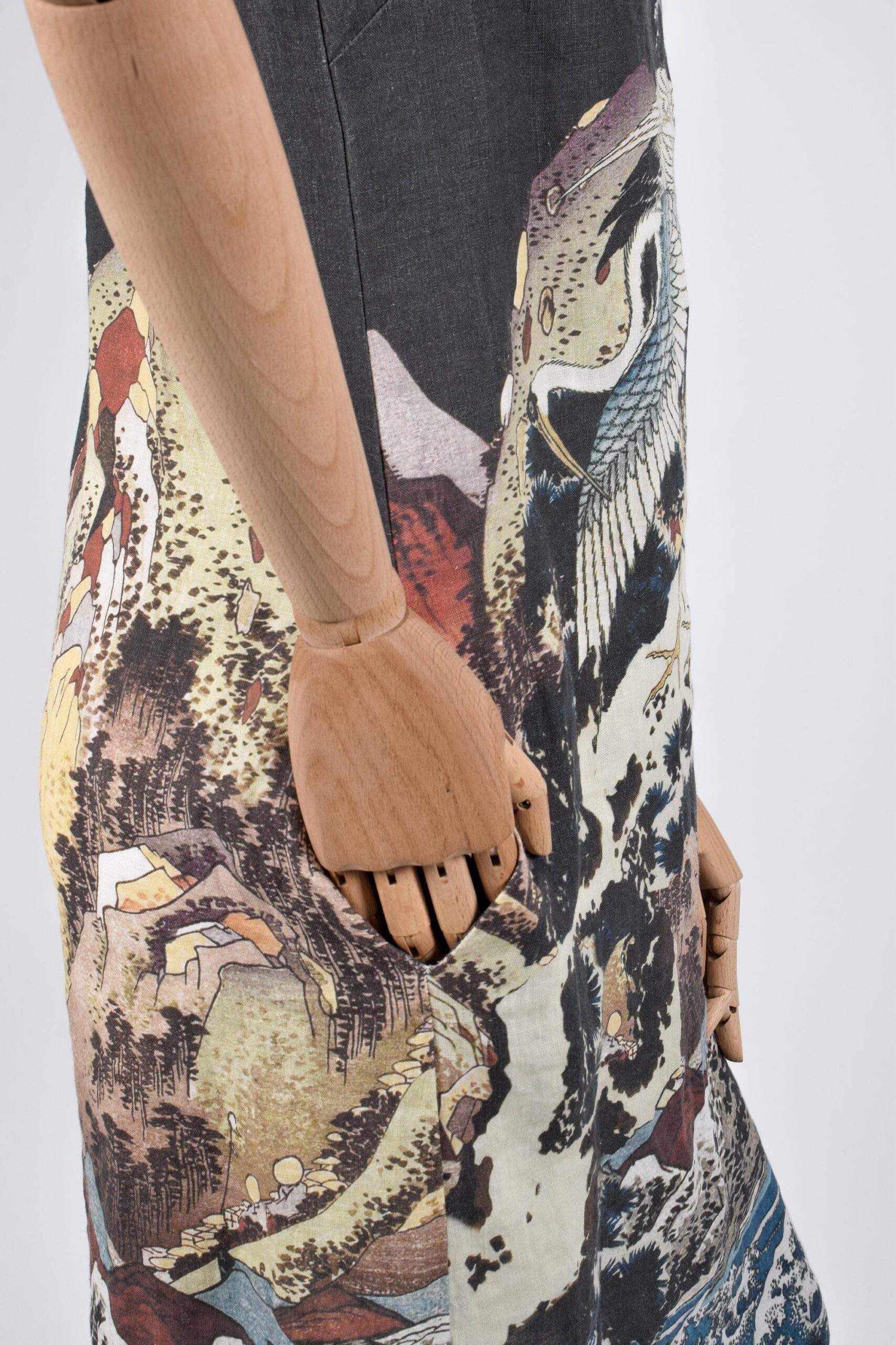 Maxi linen women dress “Cranes” inspired by Katsushika Hokusai artworks: