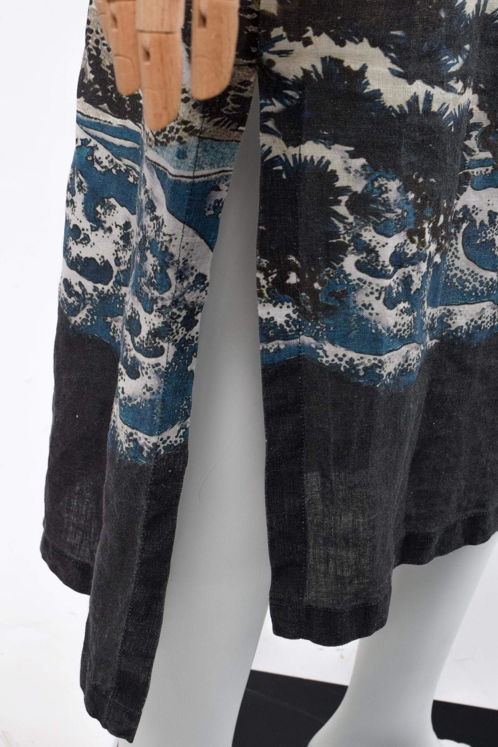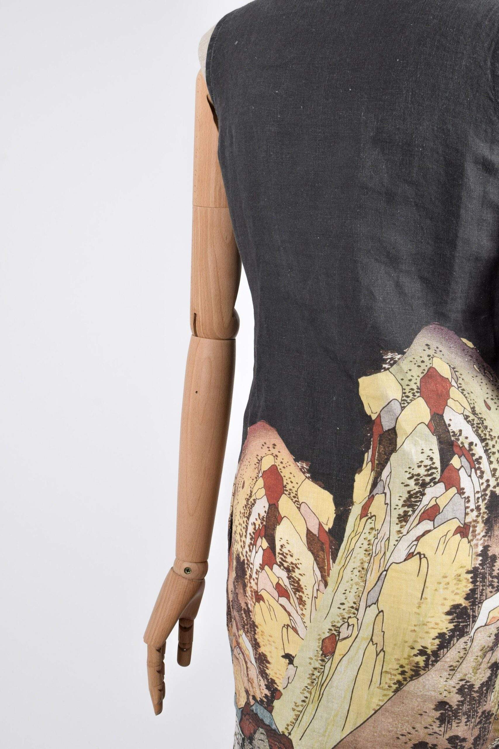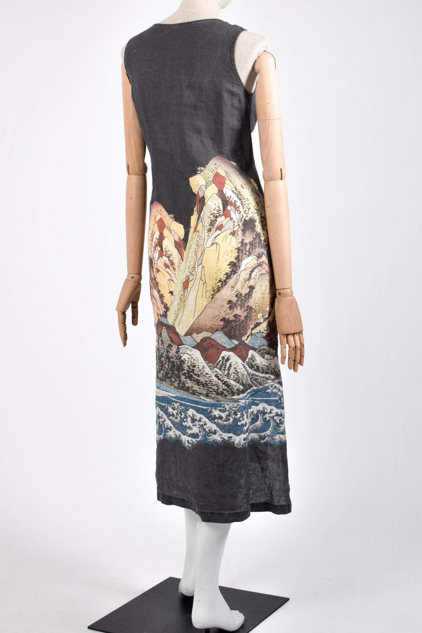 Maxi linen women dress “Cranes” inspired by Katsushika Hokusai artworks: