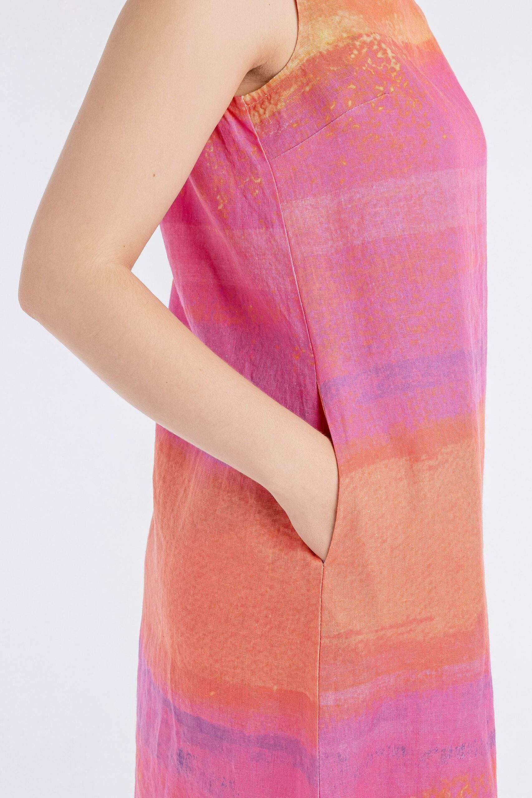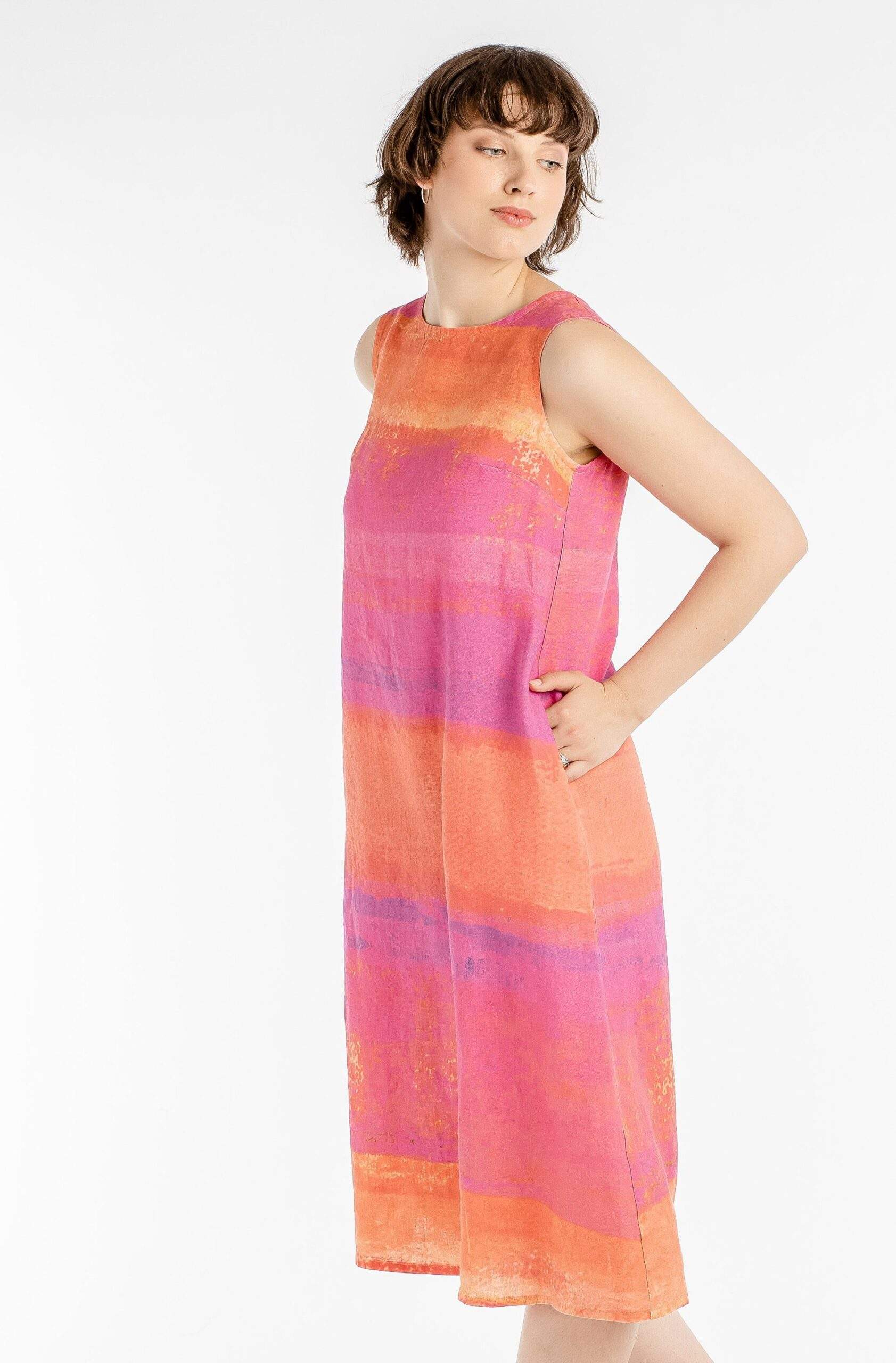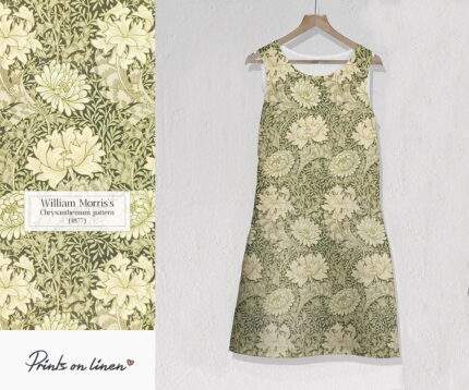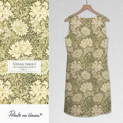 Mid Calf dress William Morris “Sidewall Arcadia”. Pattern are on both dress sides, sleeveless dress with pockets.