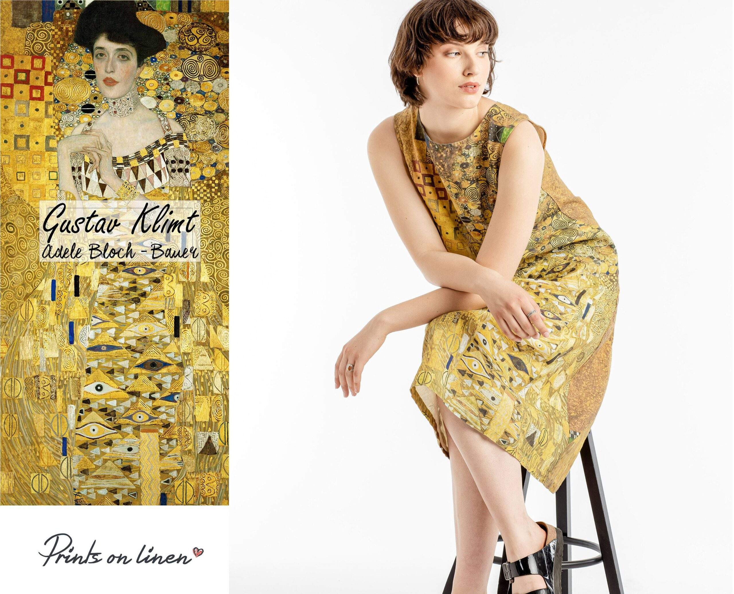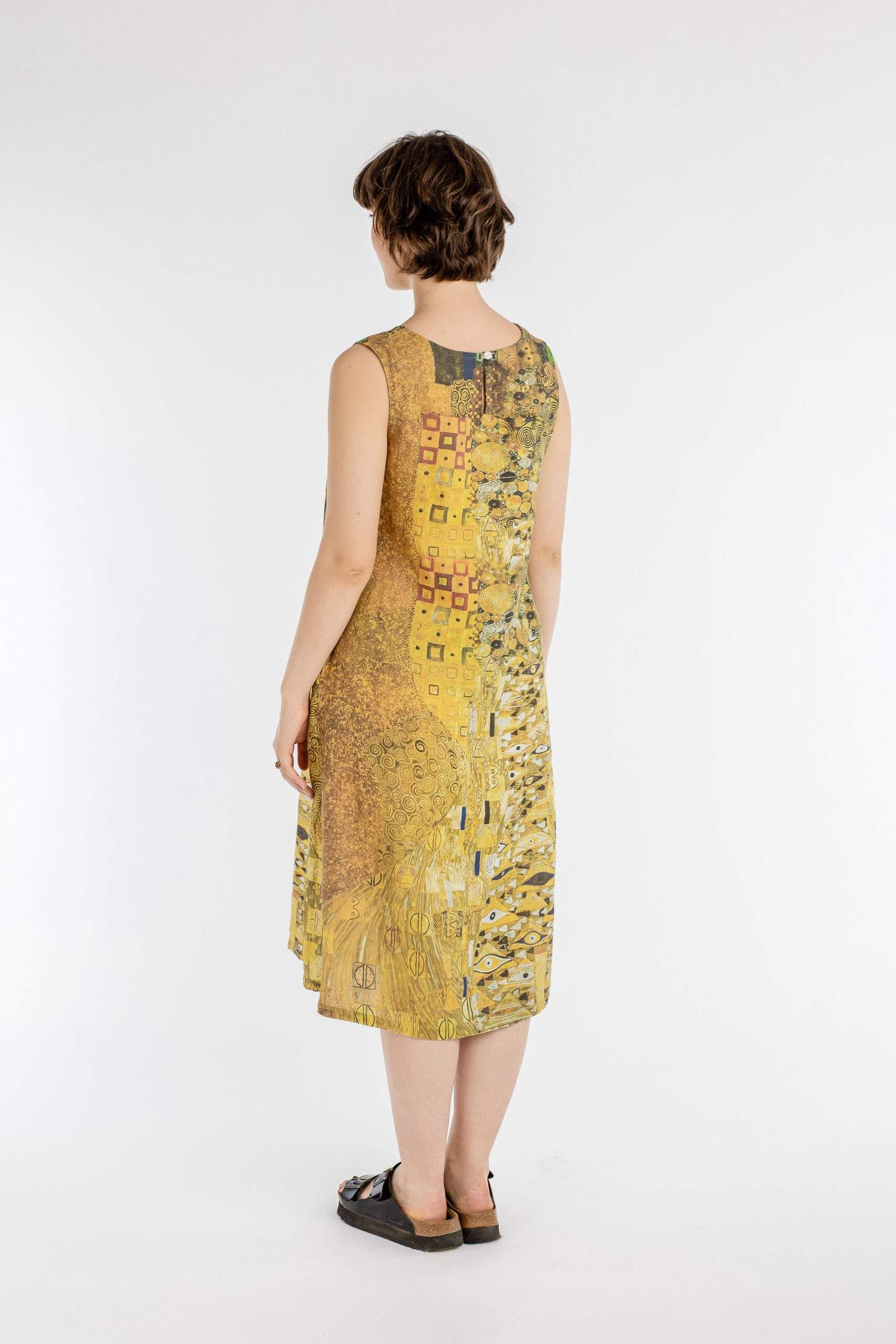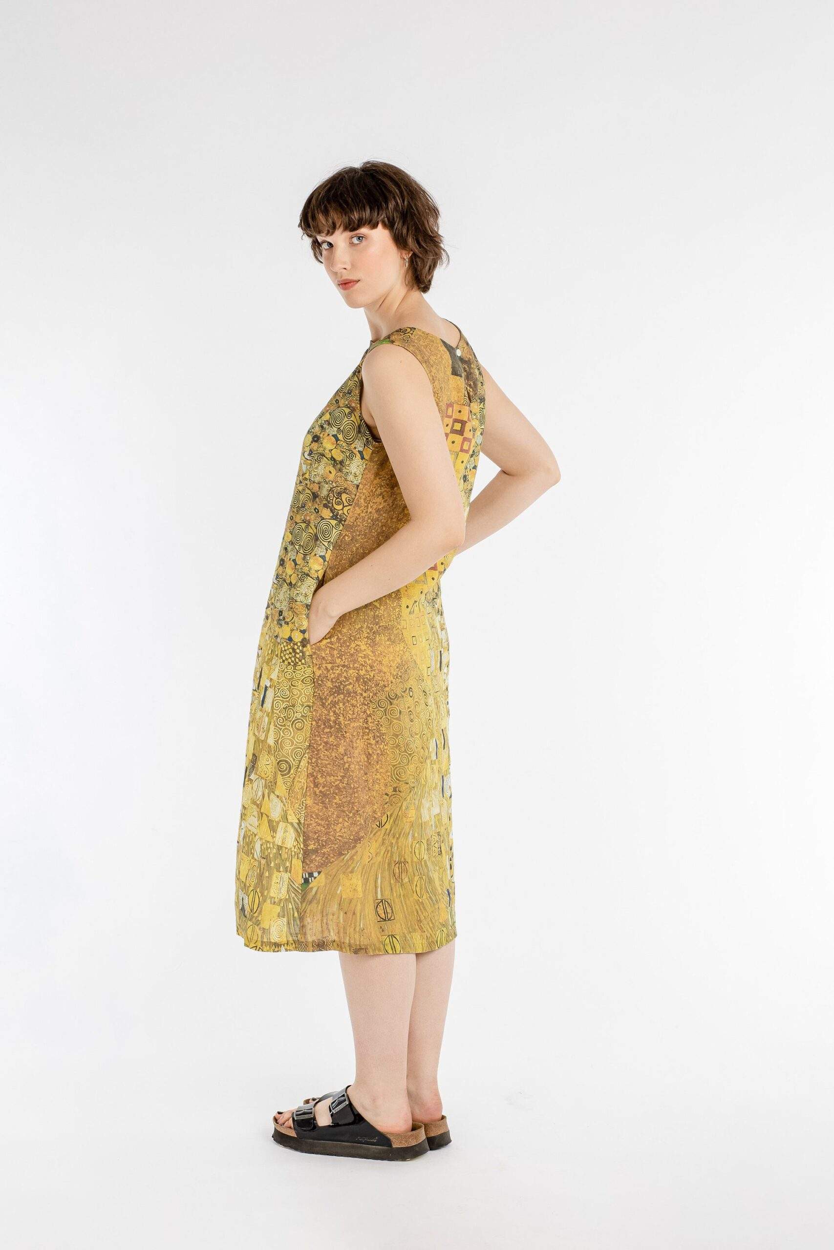 Mid Calf dress Gustav Klimt “Portrait of Adele Bloch-Bauer I”. Pattern are on both dress sides, with pockets.