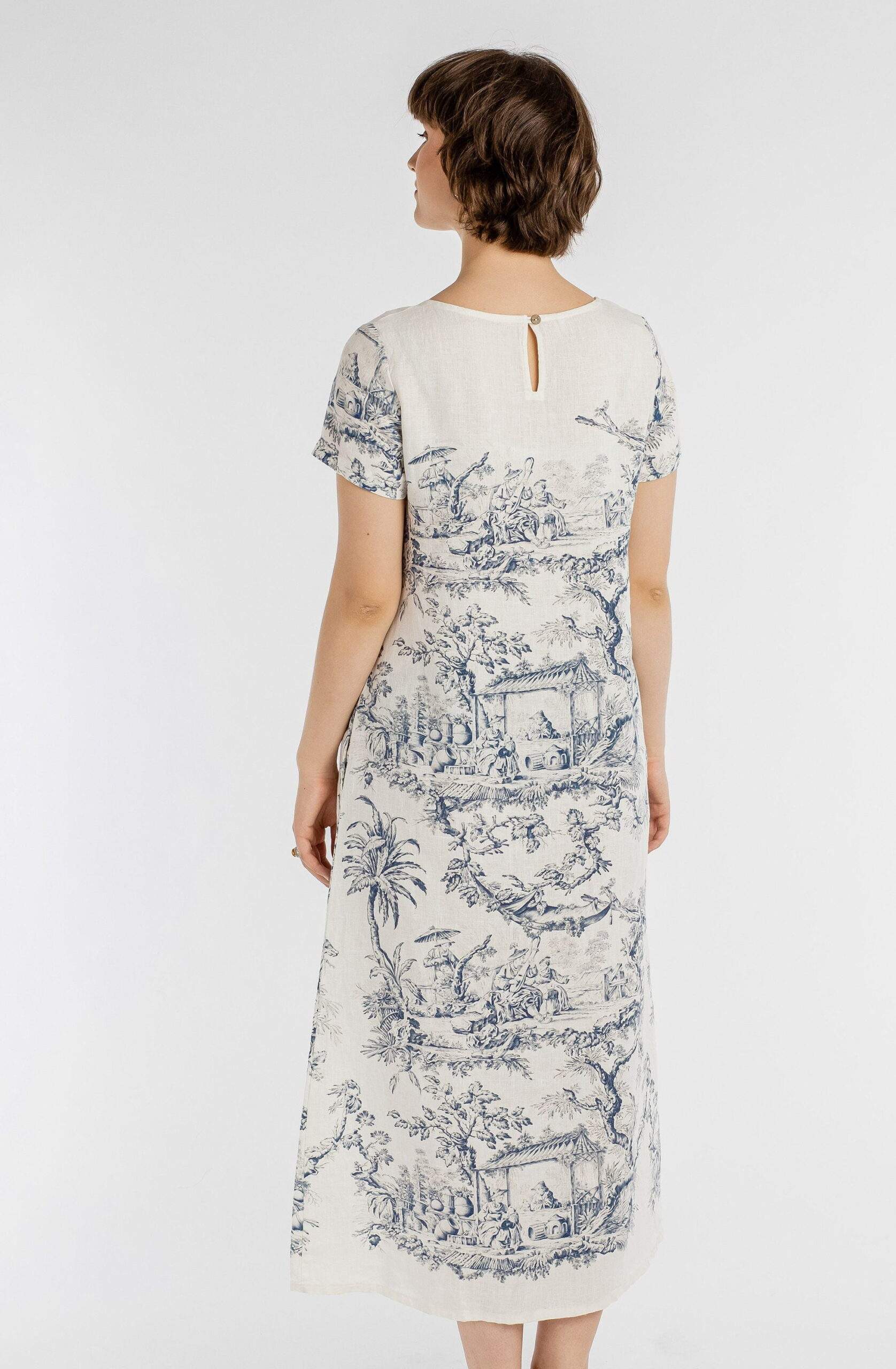 Mid Calf dress, Toile de Jouy, Short sleeves dress, 100% linen, linen dress, linen women dress, loose fit dress, PR0232