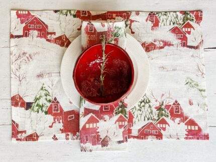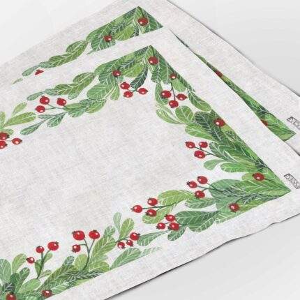 Napkins set “Hide and Seed”. We have matching linen placemats, table runner, dish towel and tablecloth.
