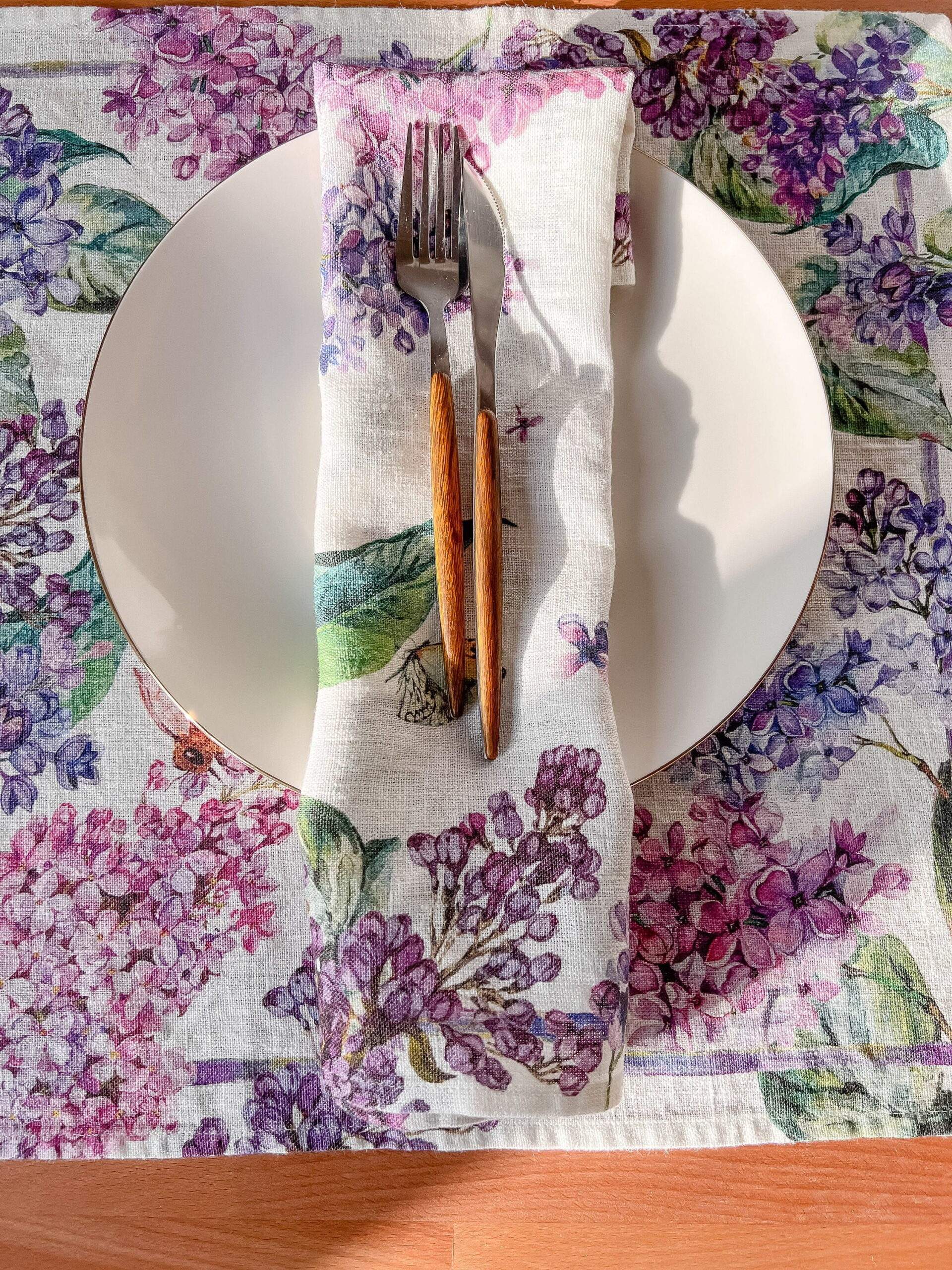 Napkins set “Lilac”. We have matching linen placemats, table runners and tablecloths.