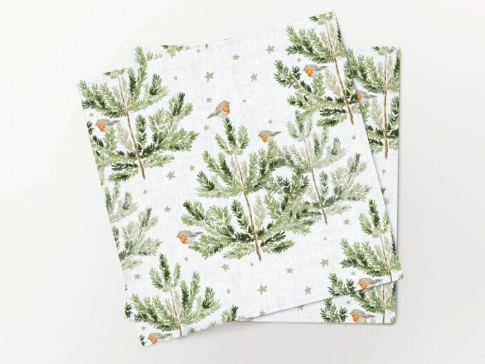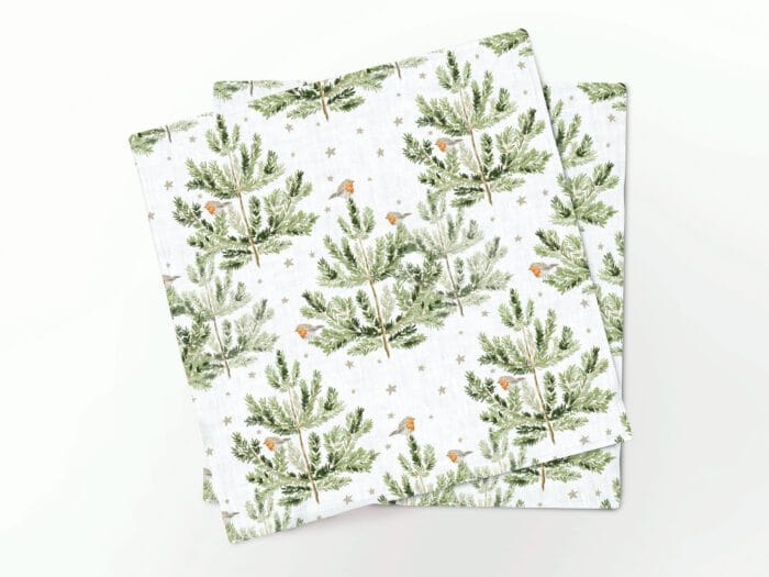 Napkins set Robin Birds On Pine Trees.