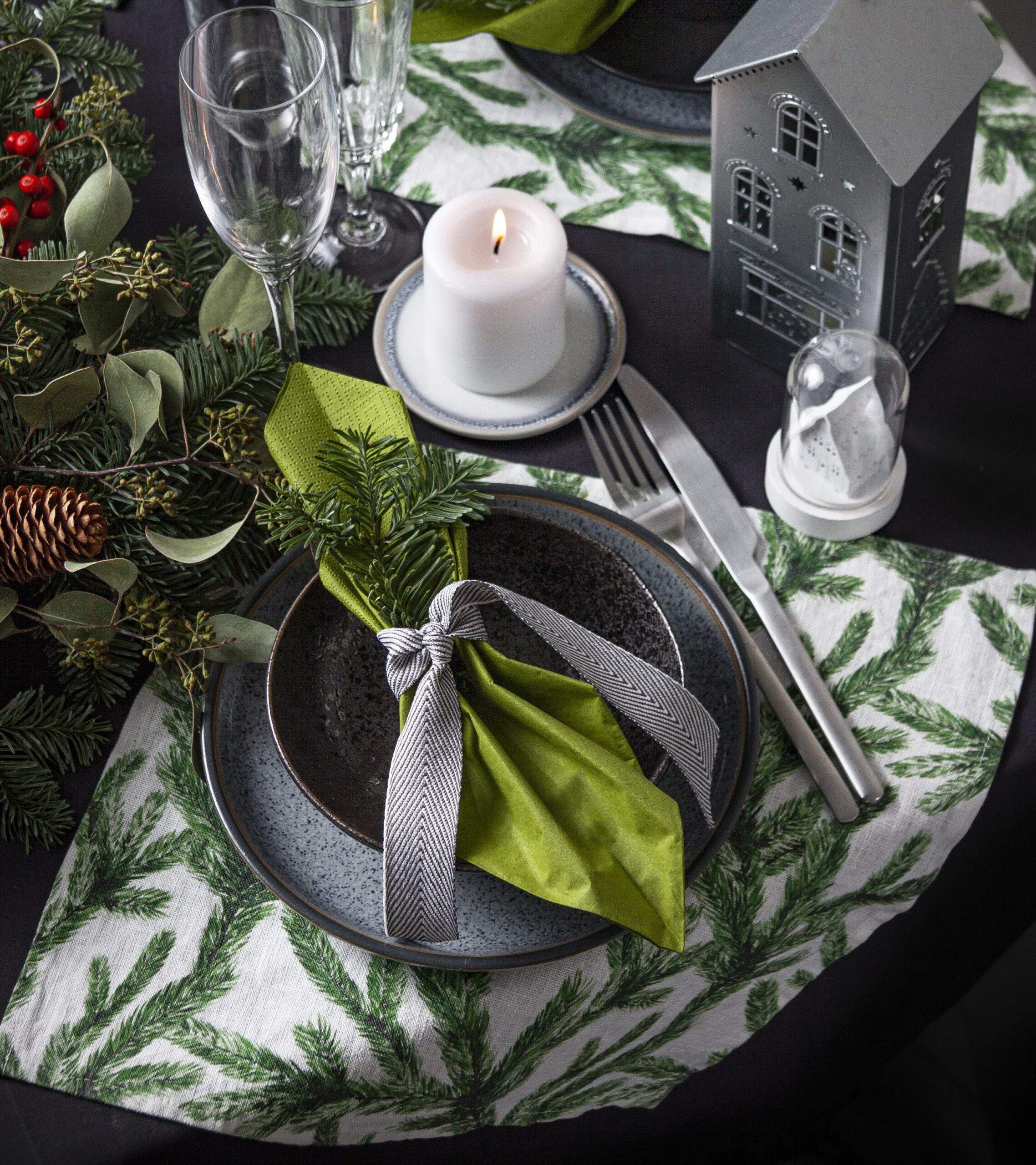Linen napkins set “Spruce branches”. Hand made in Lithuania. Styles: Blue or Green.